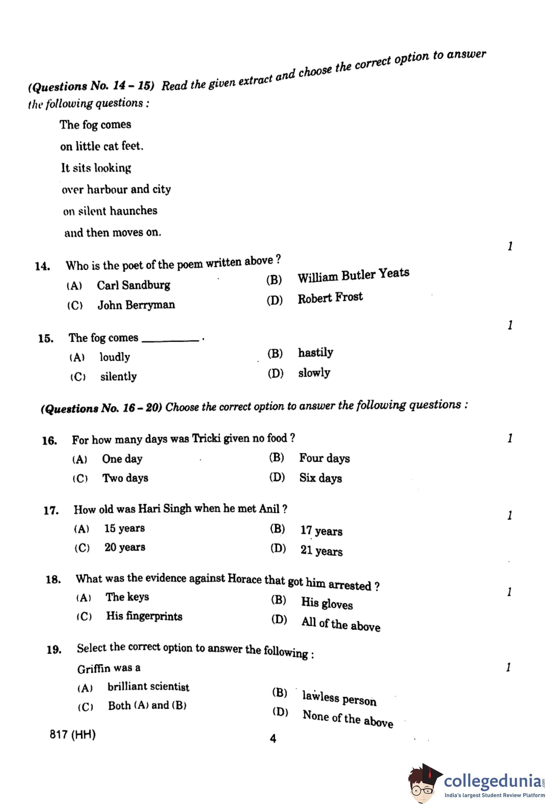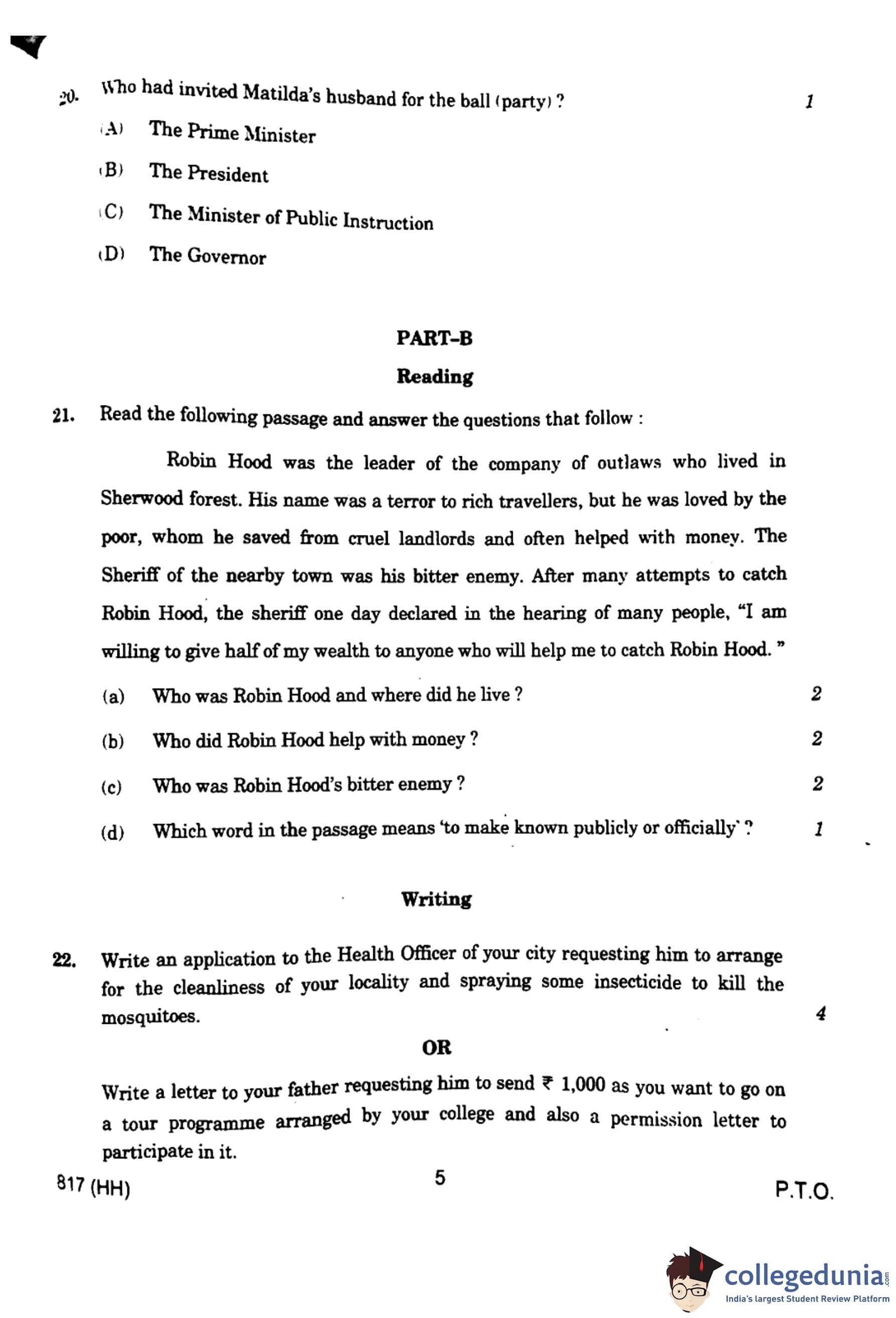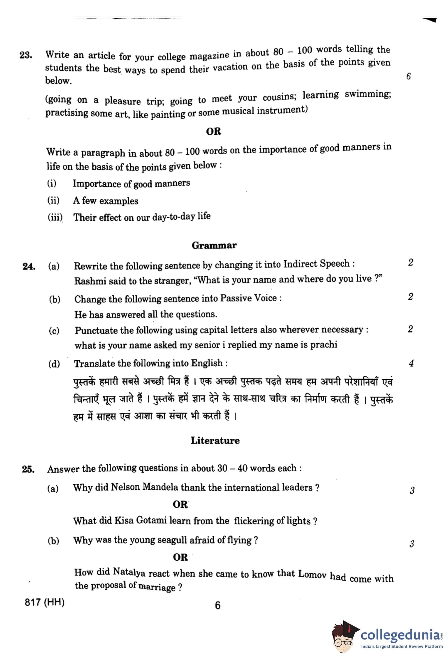 UP Board Class 10 English Question Paper 2024 (Code 817 HH) with Solutions