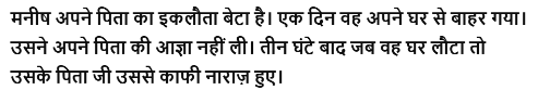 Manish is his father’s only son. One day, he went out of his house without his father’s permission. When he returned home three hours later, his father was very angry with him.