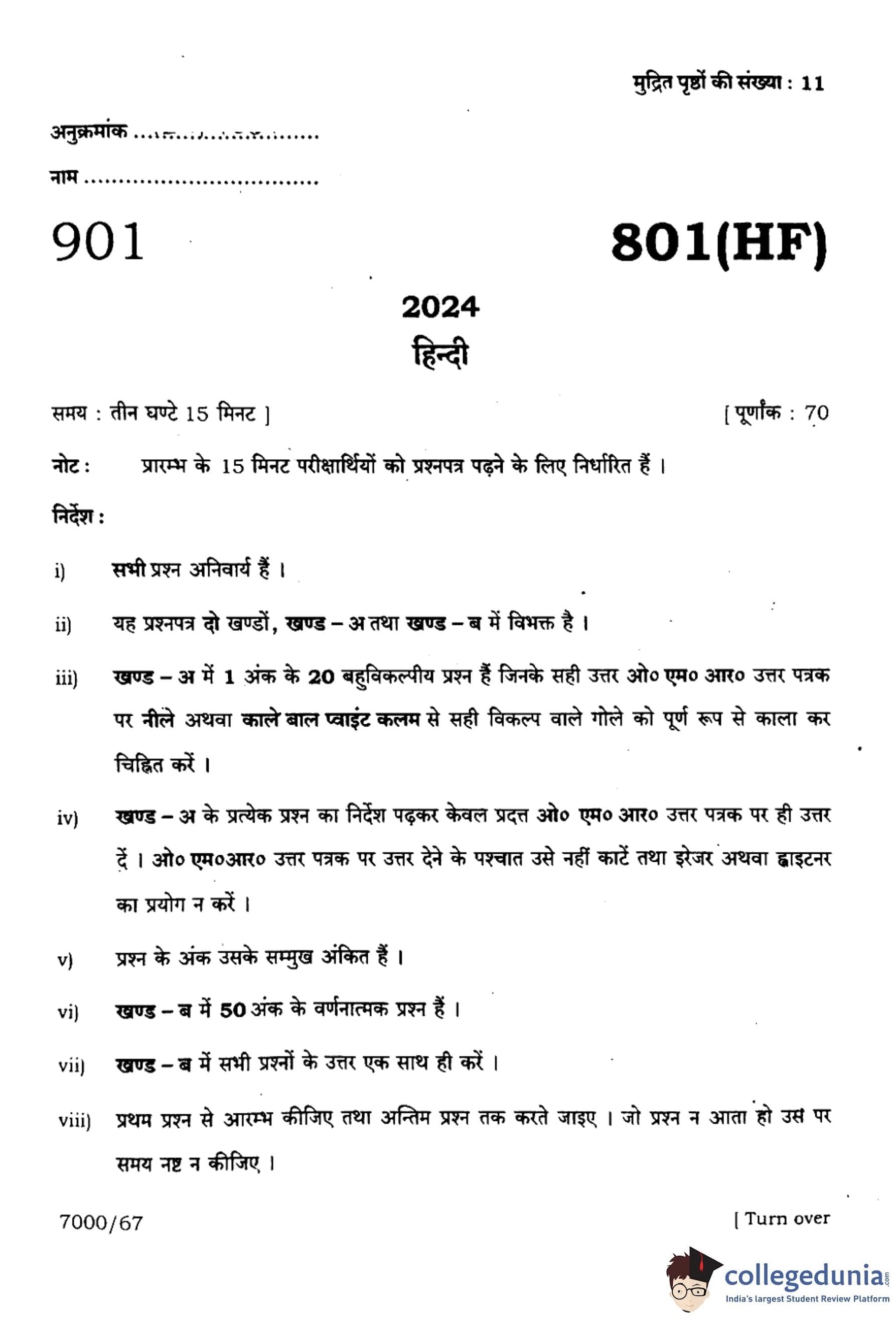 UP Board Class 10 Hindi Question Paper 2024 (Code 801 HF) with Solutions