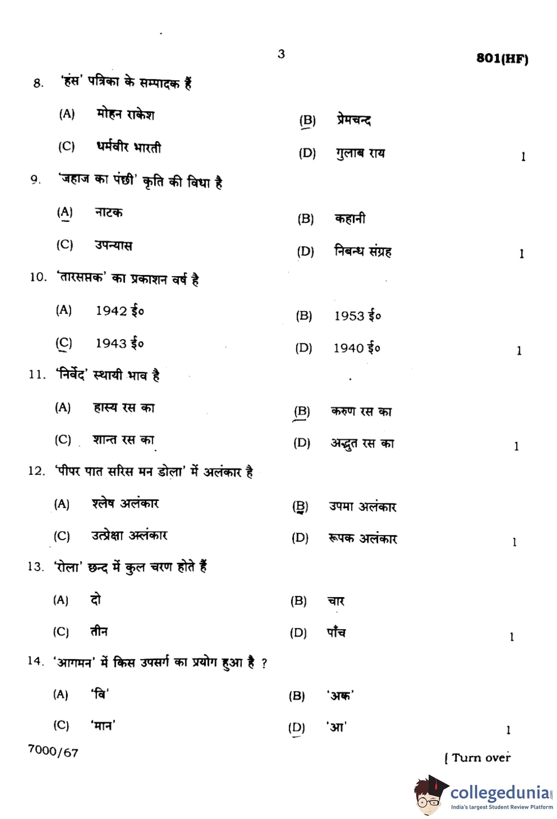 अतः, इस पंक्ति में उपमा अलंकार है। सही उत्तर (B) है।
