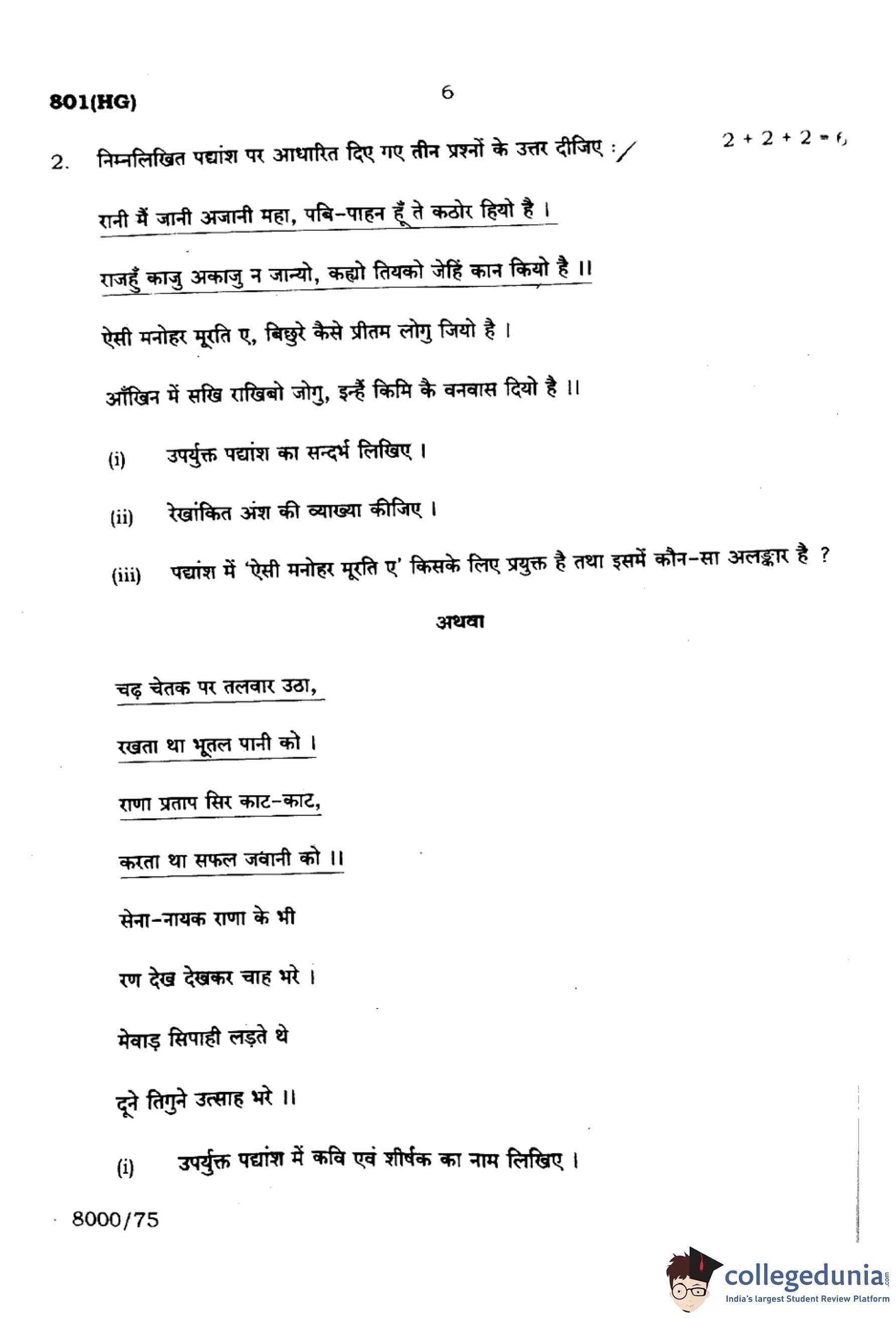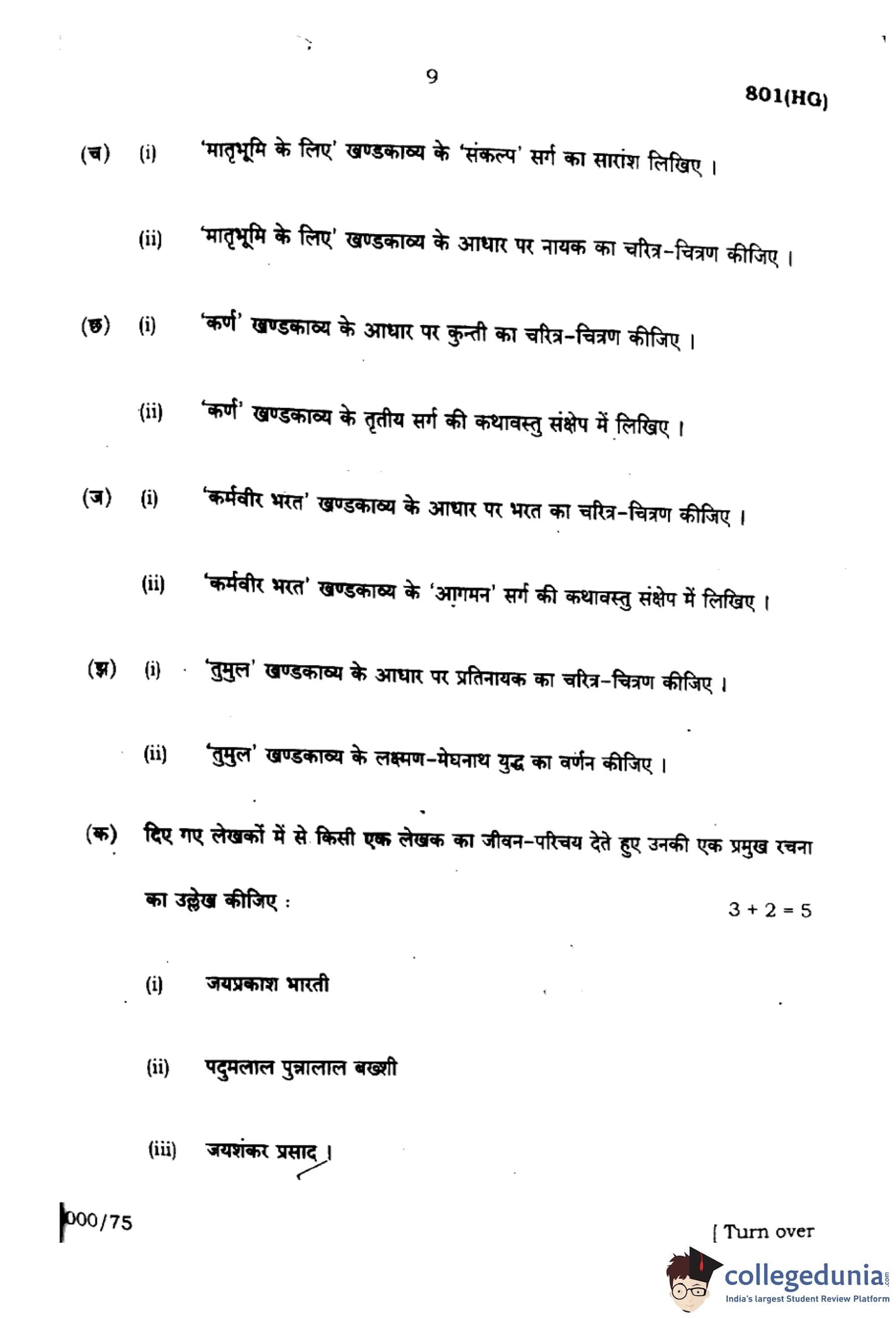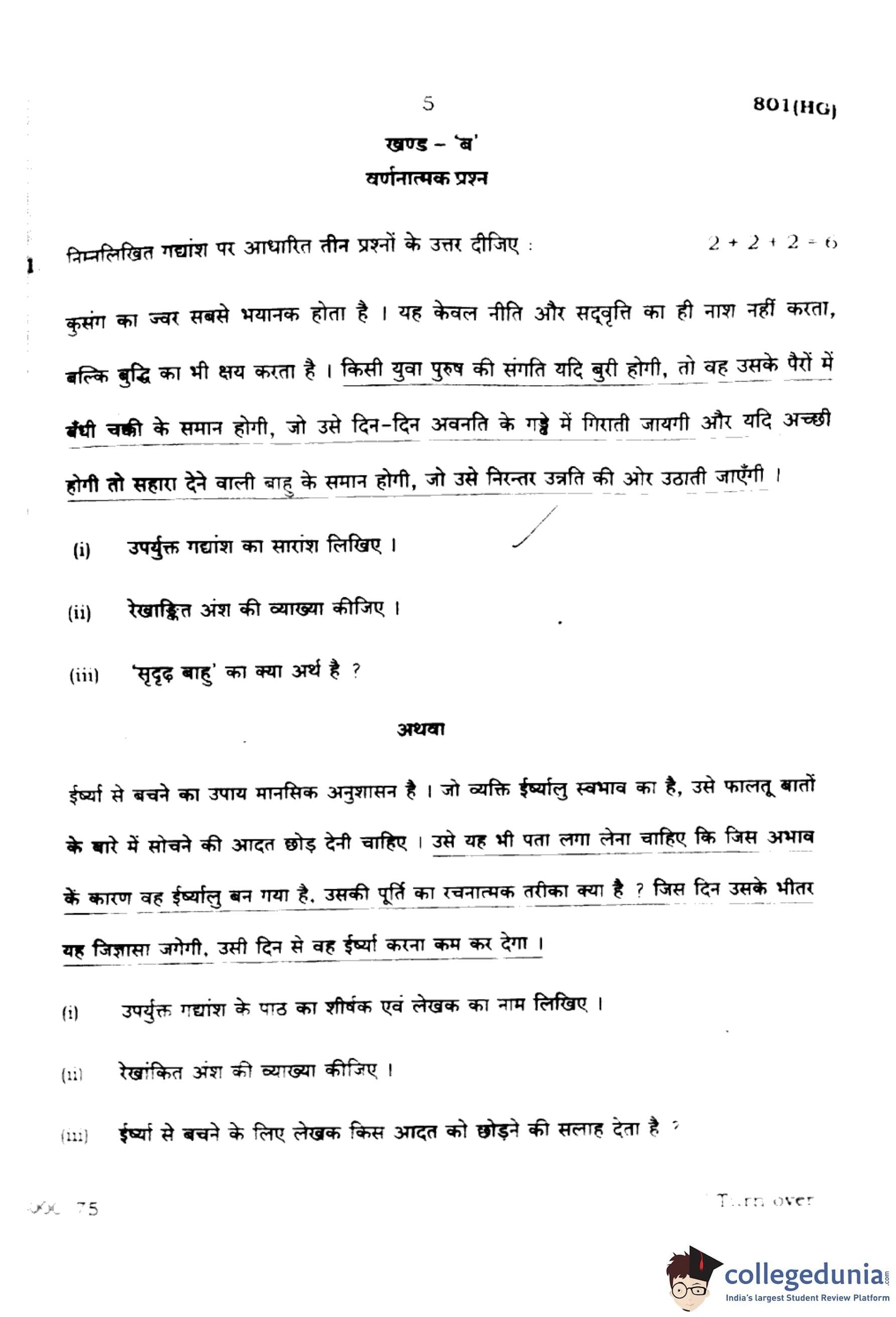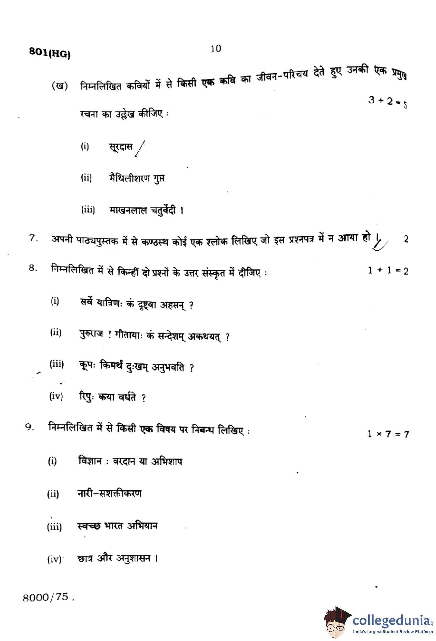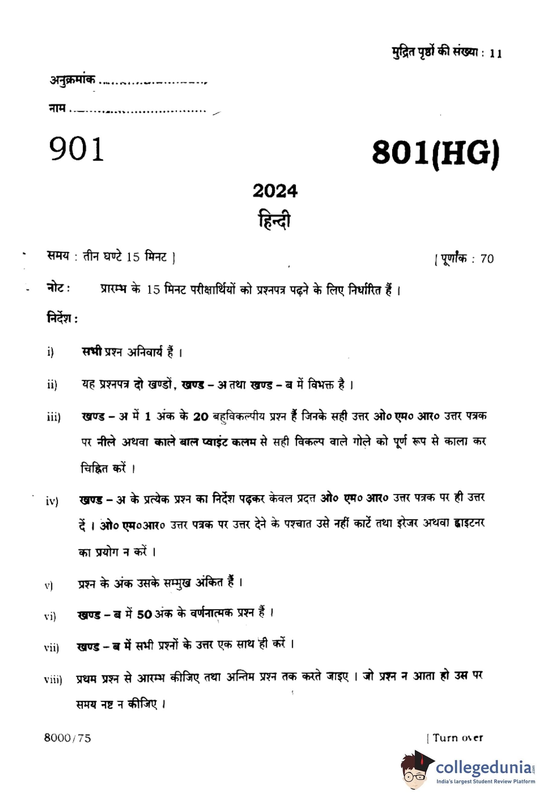 UP Board Class 10 Hindi Question Paper 2024 (Code 801 HG) with Solutions