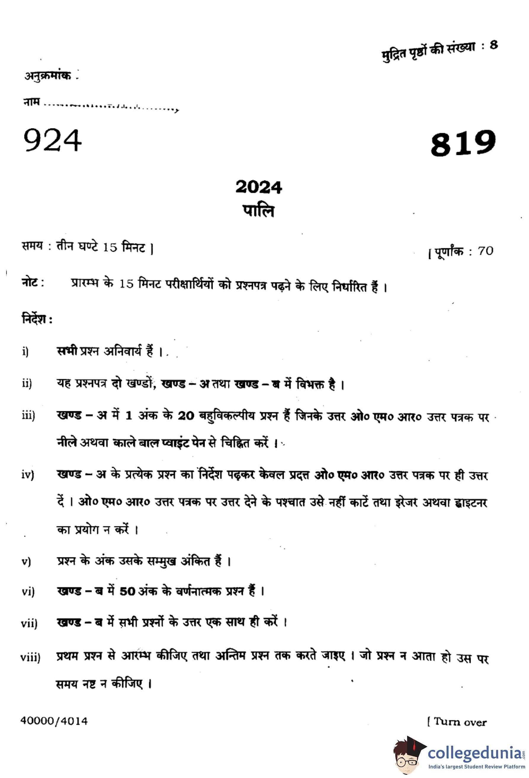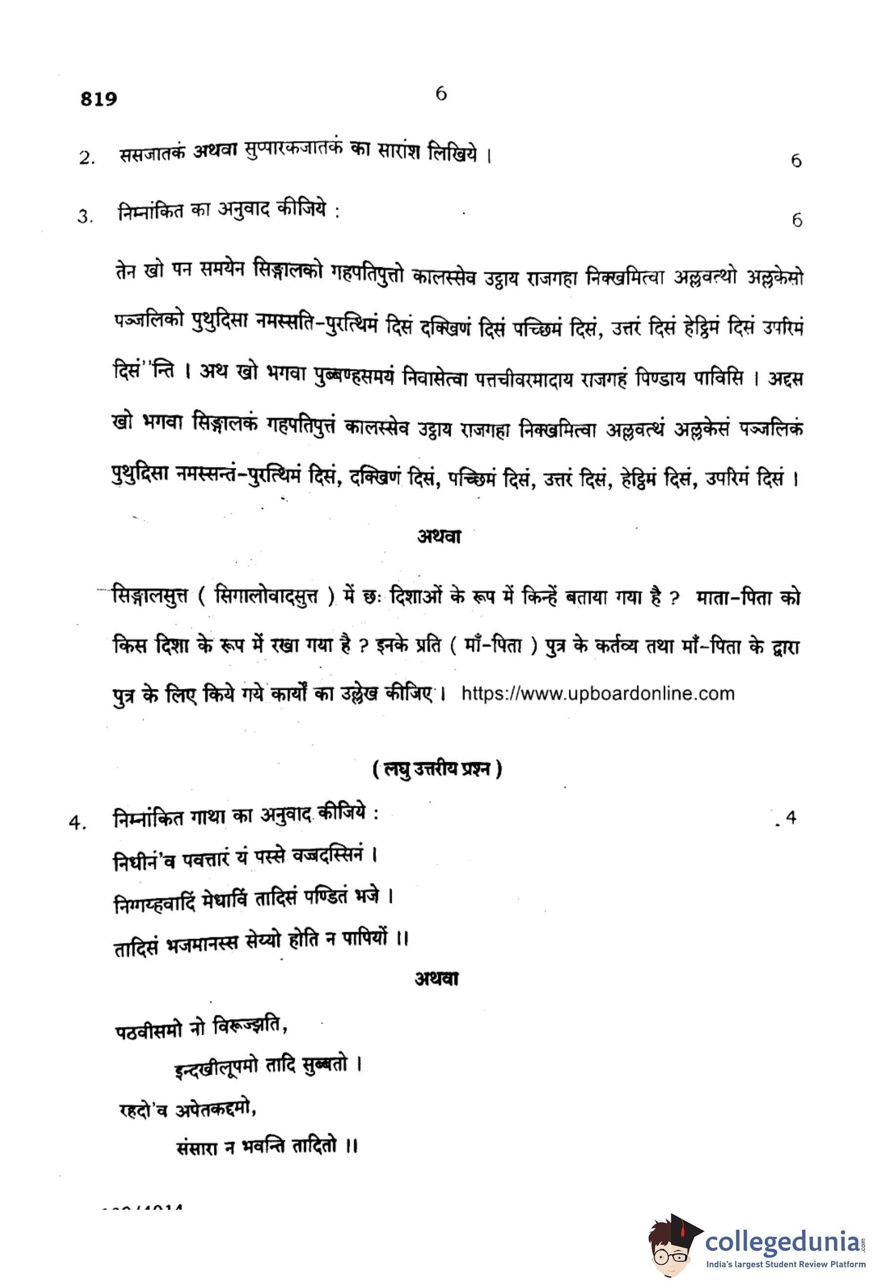 | UP Board Class 10 Pali Question Paper 2024 PDF | UP Board Class 10 Pali Solutions 2024 PDF |