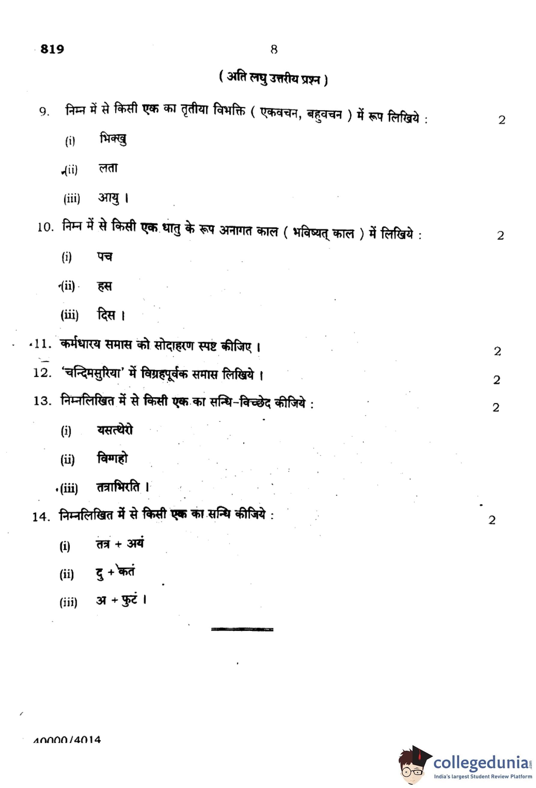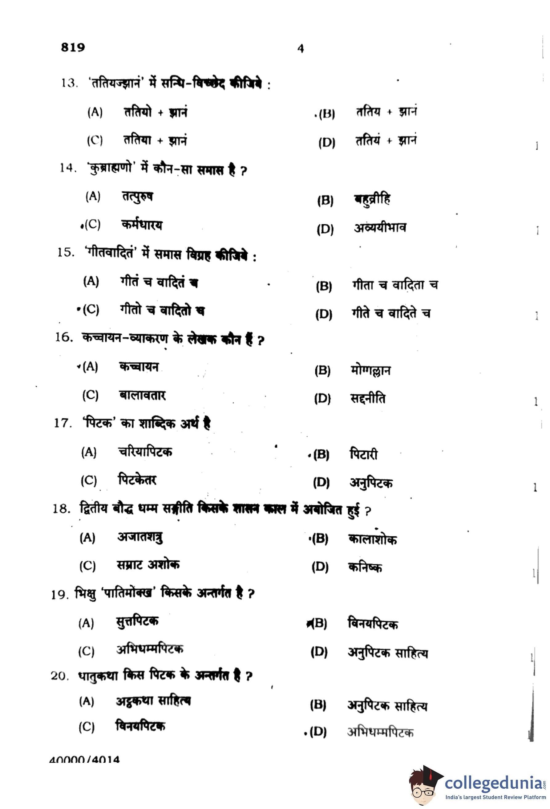 UP Board Class 10 Pali Question Paper 2024 with Solutions