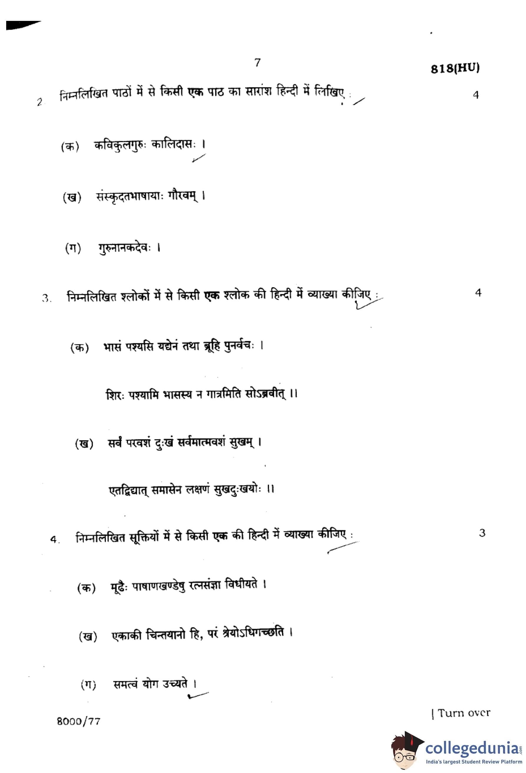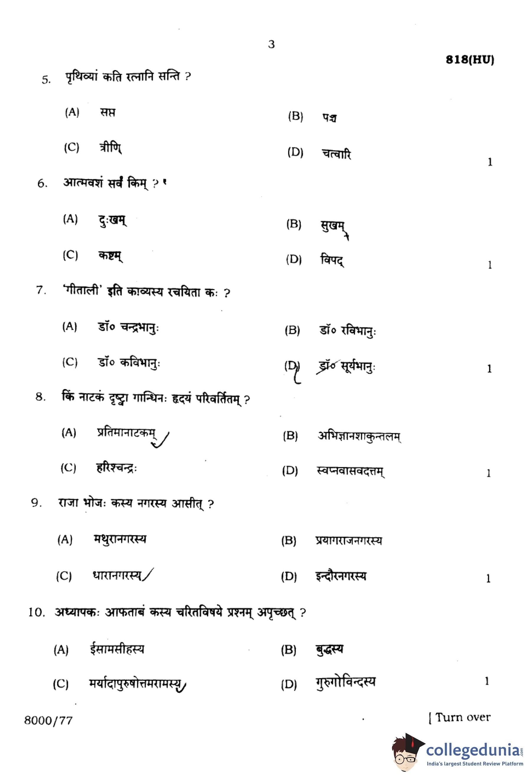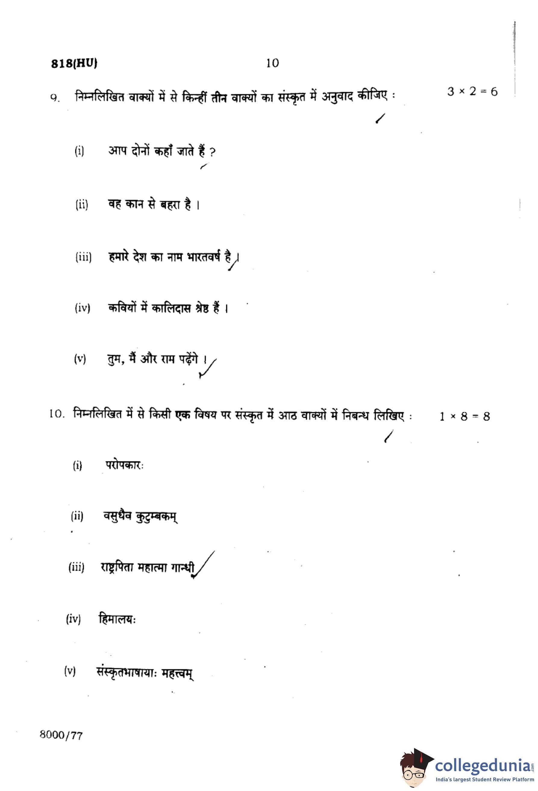 UP Board Class 10 Sanskrit Question Paper 2024 (Code 818 HU) with Solutions