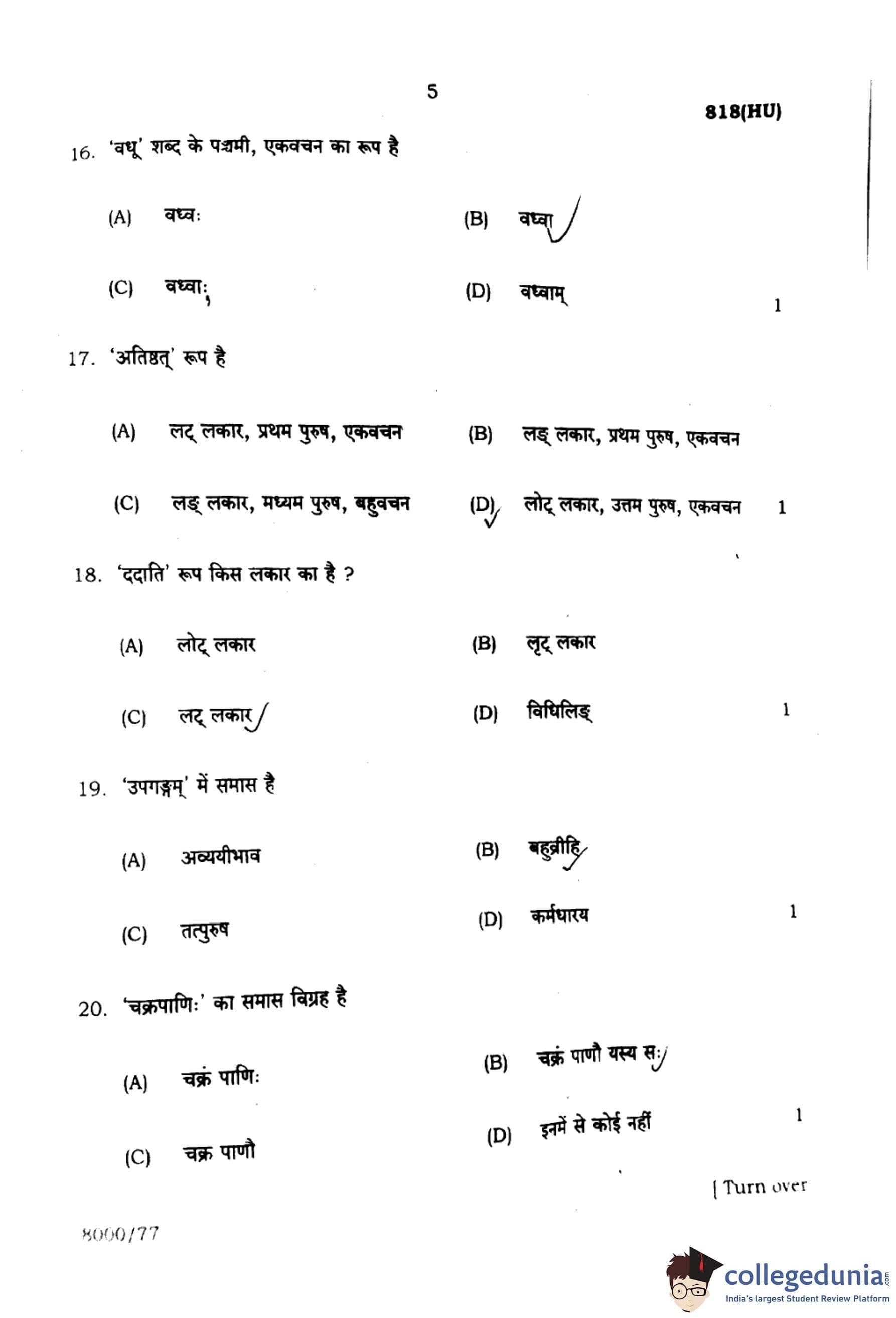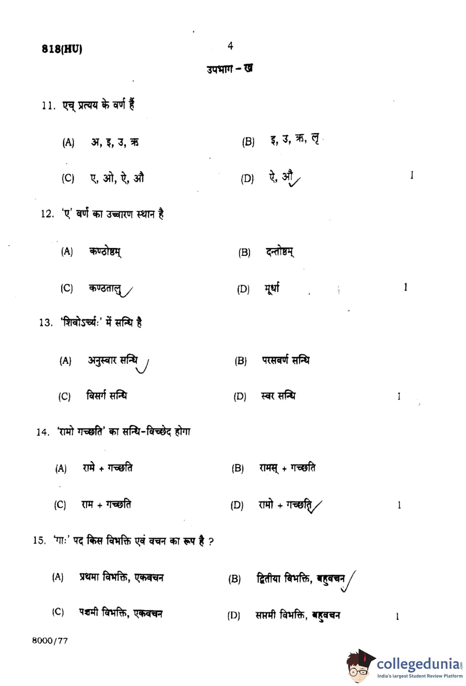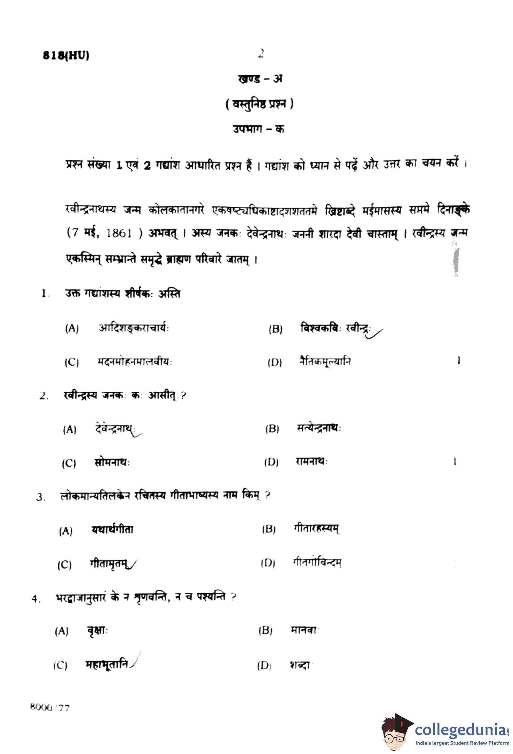 UP Board Class 10 Sanskrit Question Paper 2024 (Code 818 HU) with Solutions