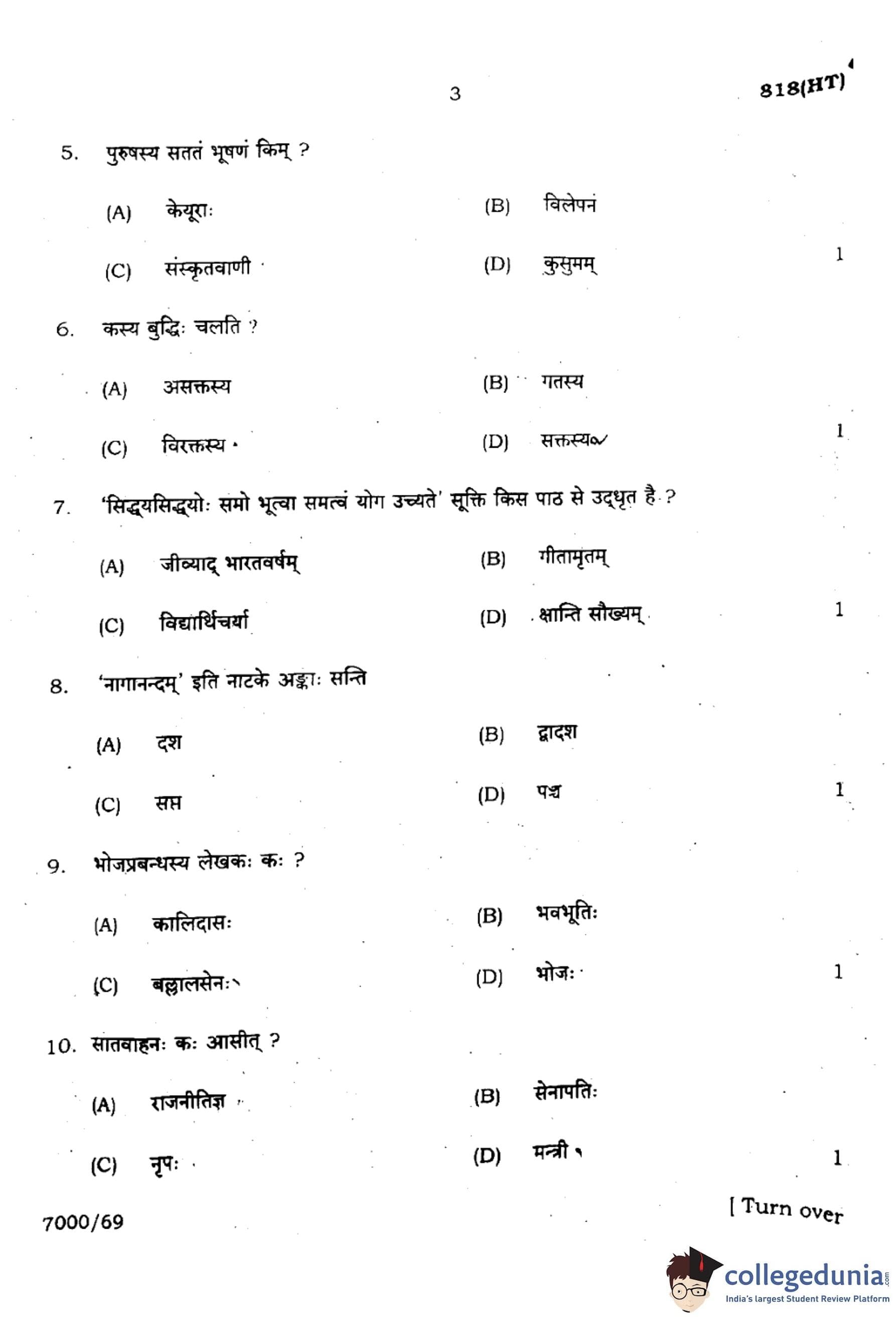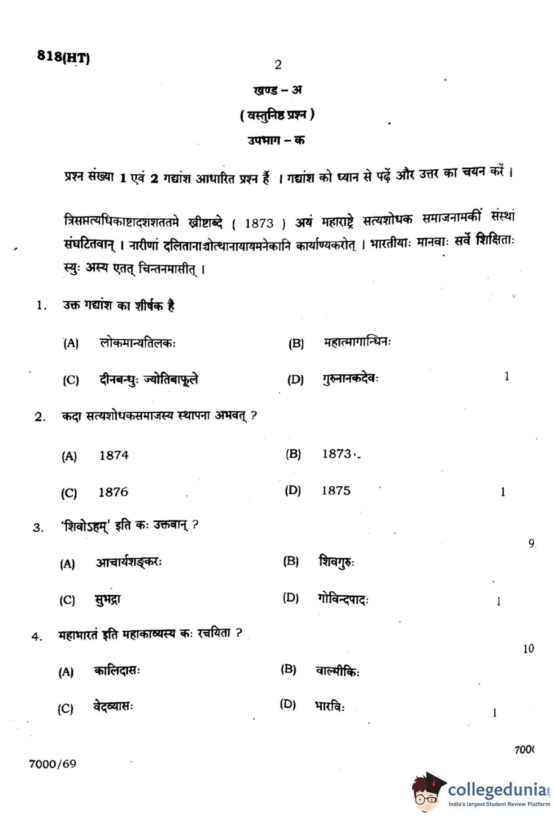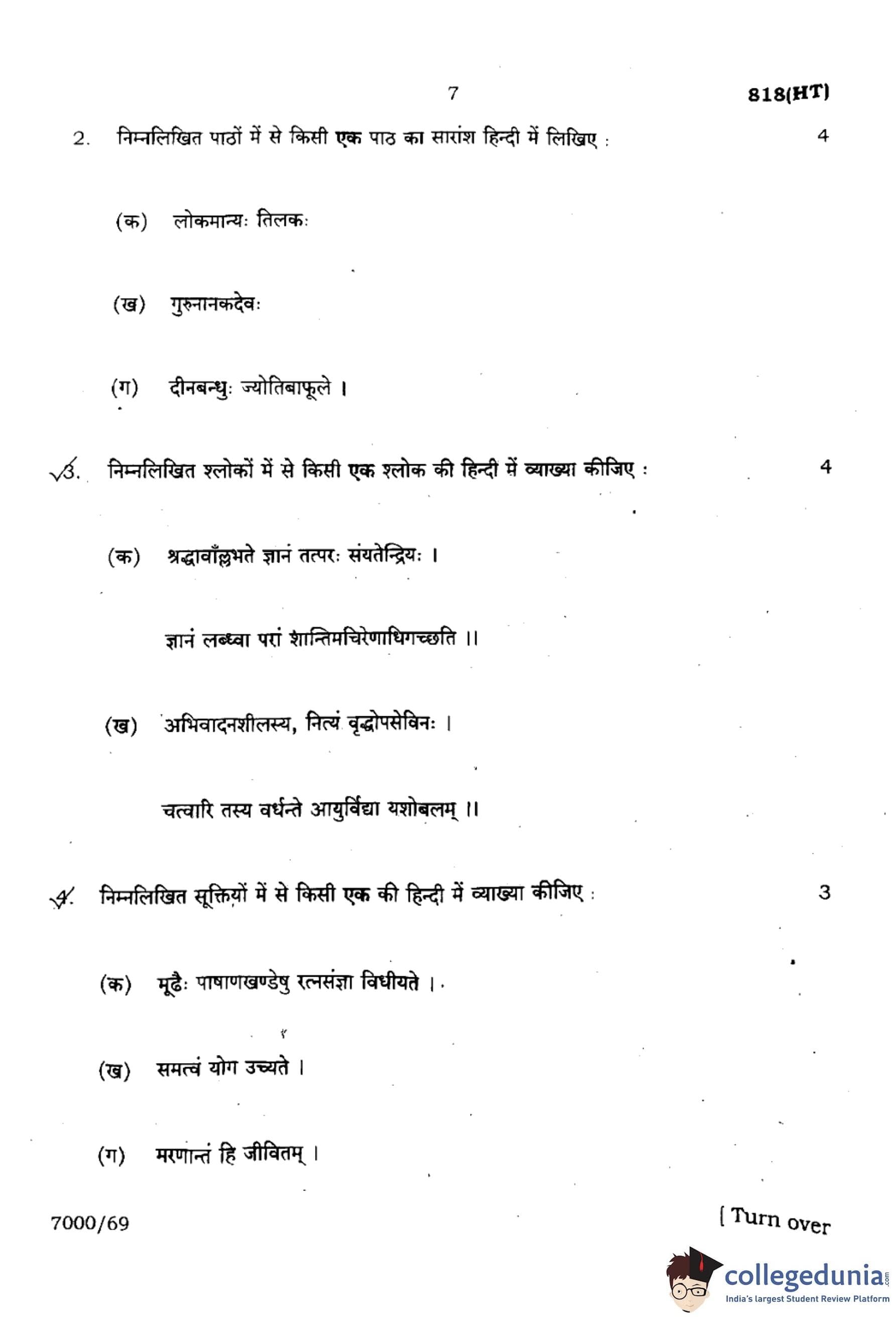 UP Board Class 10 Sanskrit Question Paper 2024 (Code 818 HT) with Solutions