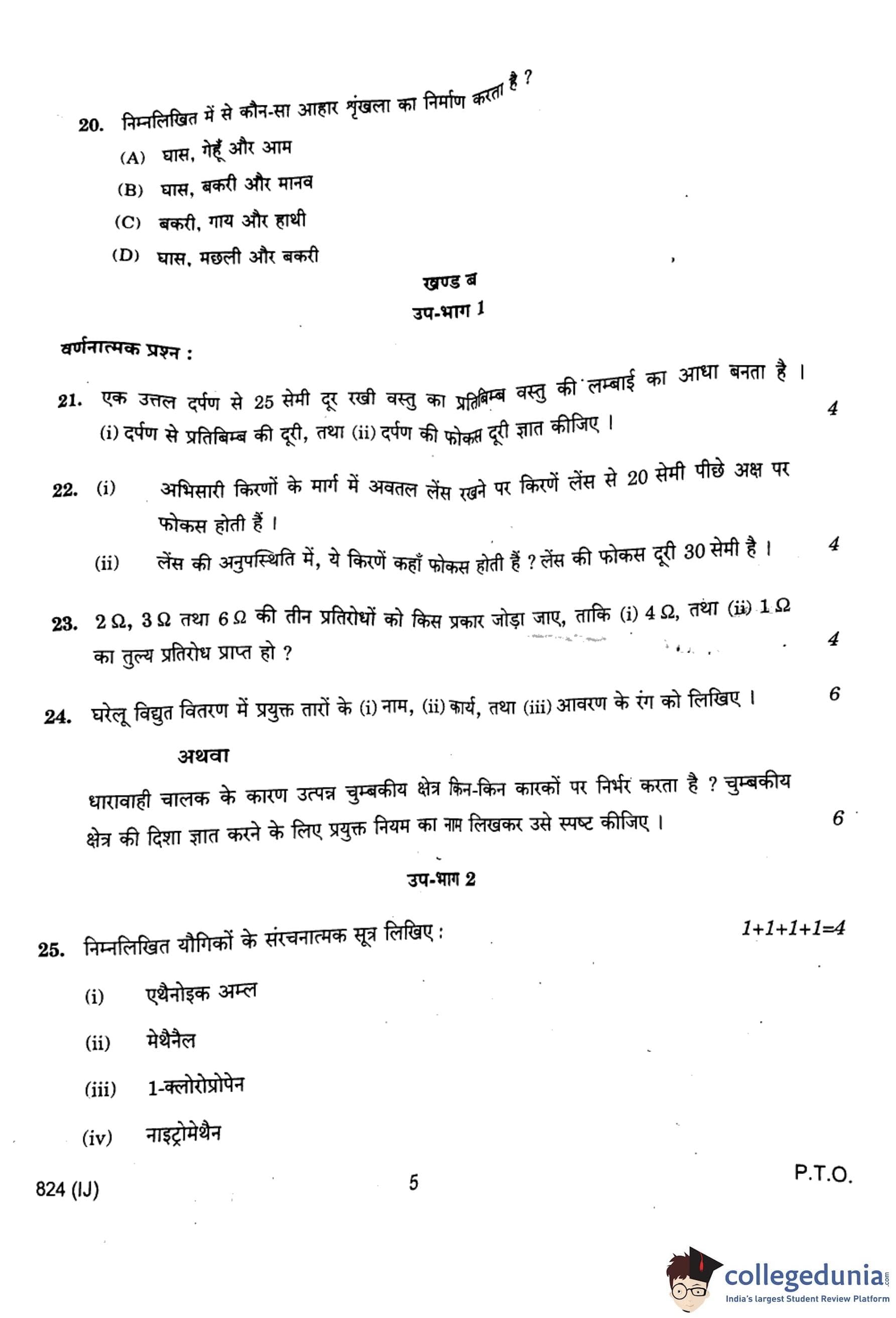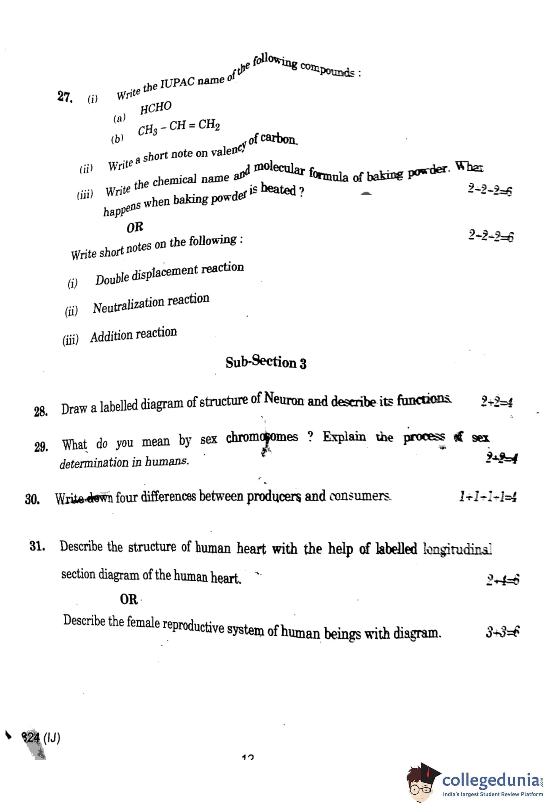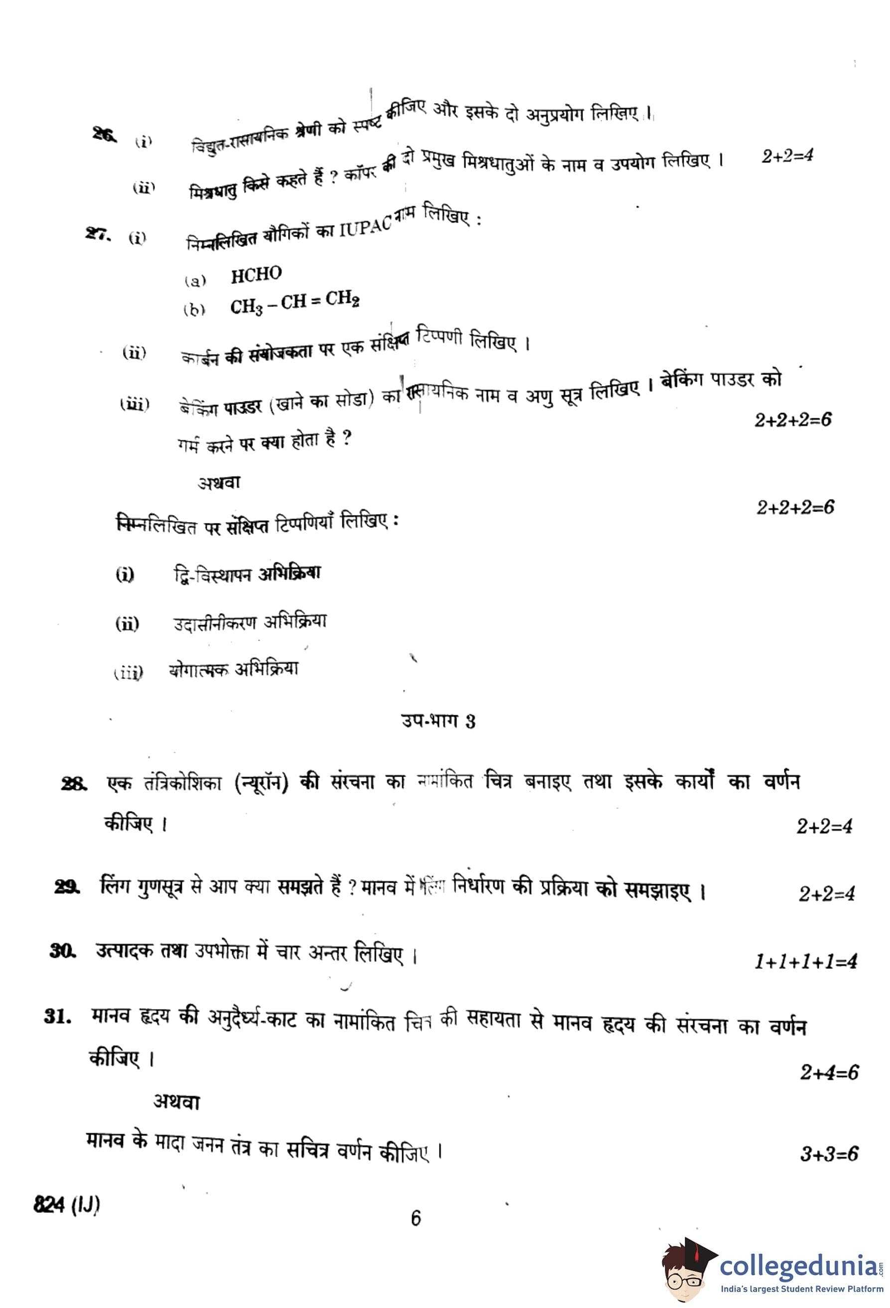 UP Board Class 10 Science Question Paper 2024 (Code 824 IJ) with Solutions