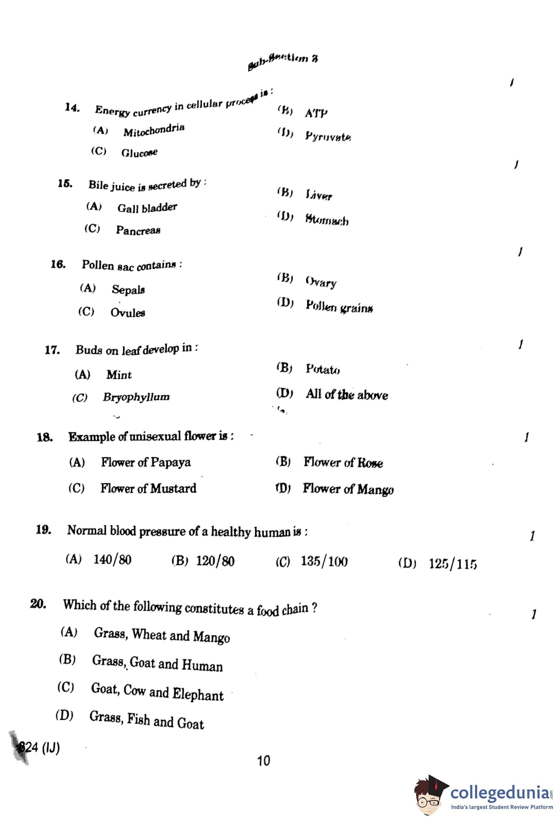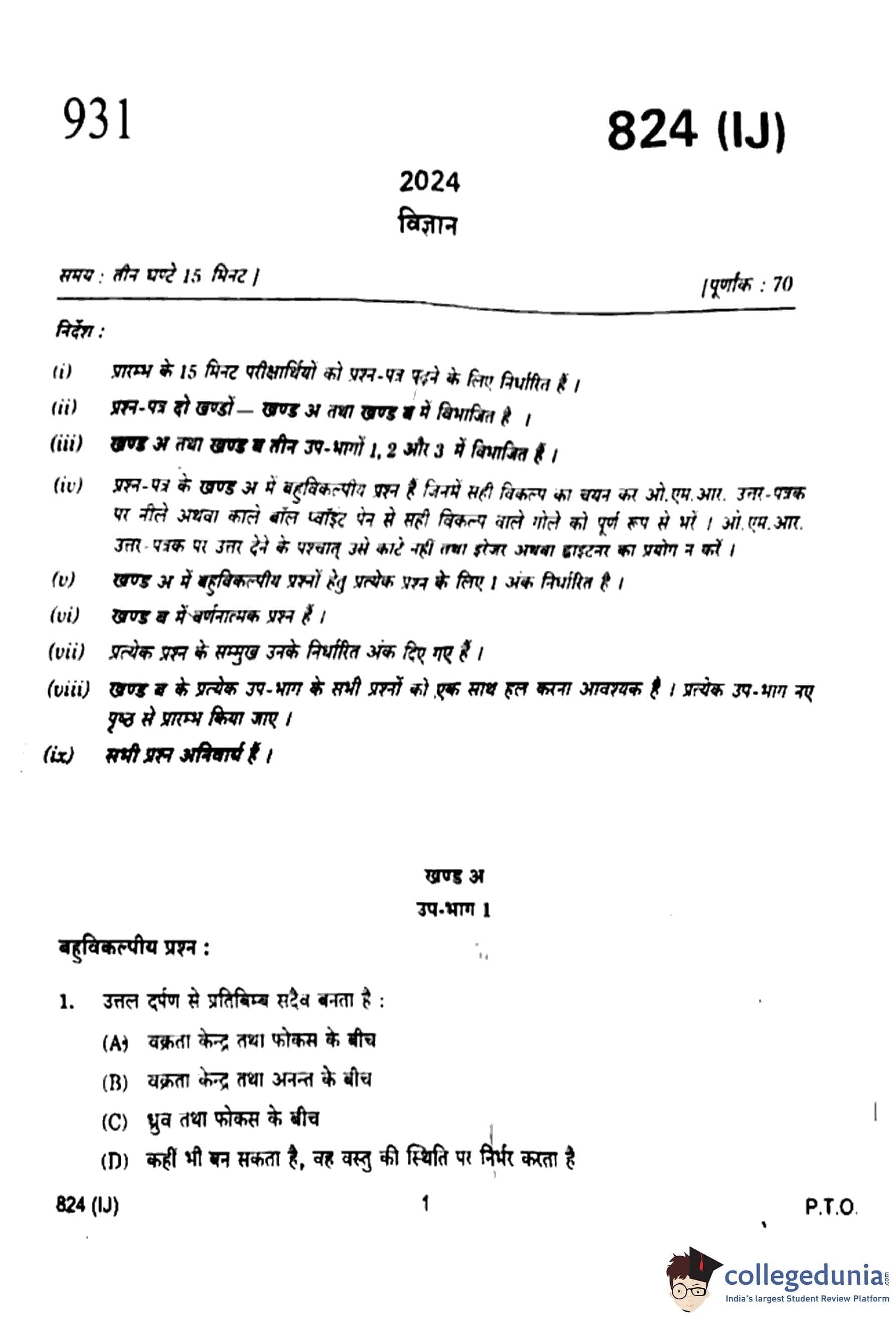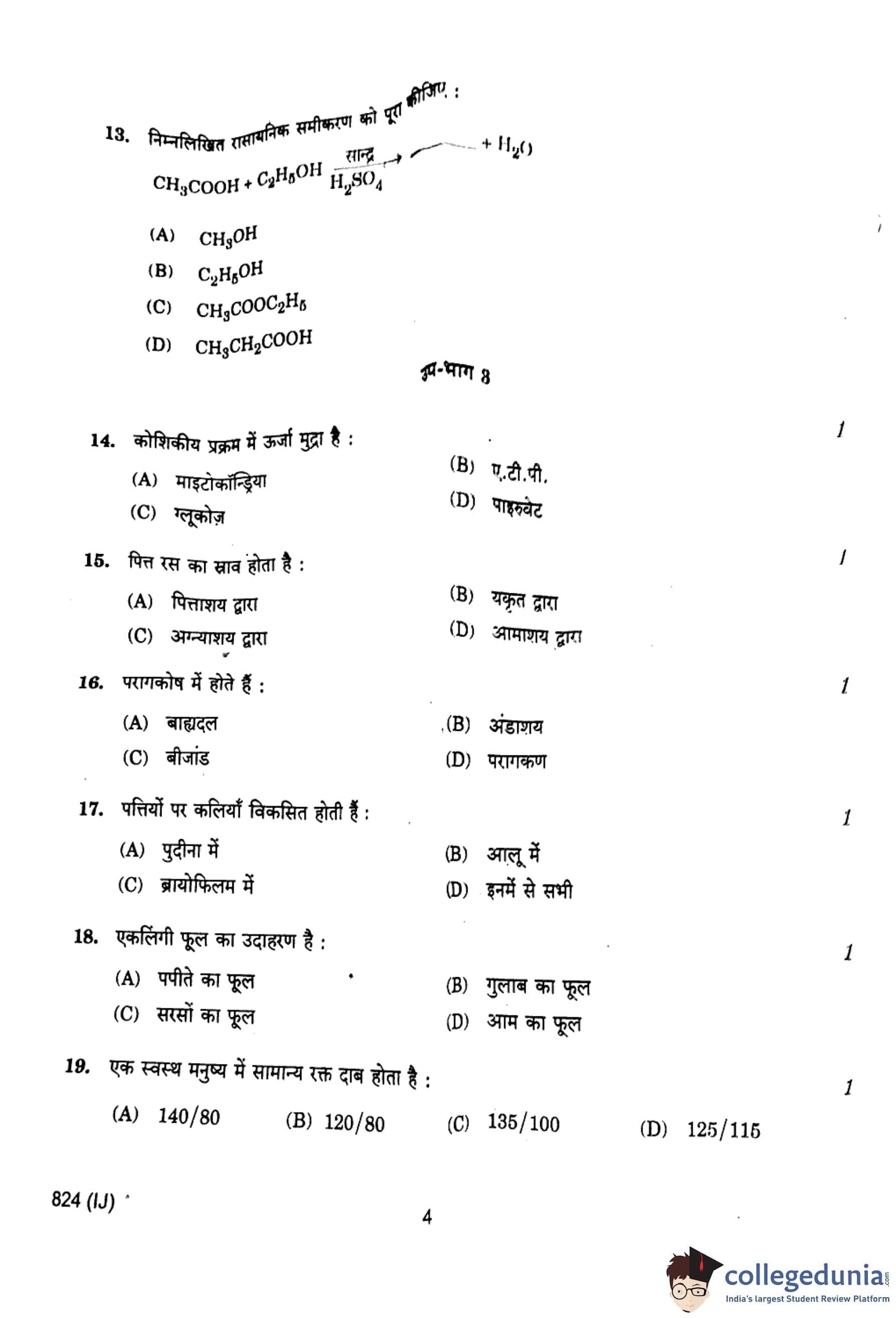 UP Board Class 10 Science Question Paper 2024 (Code 824 IJ) with Solutions