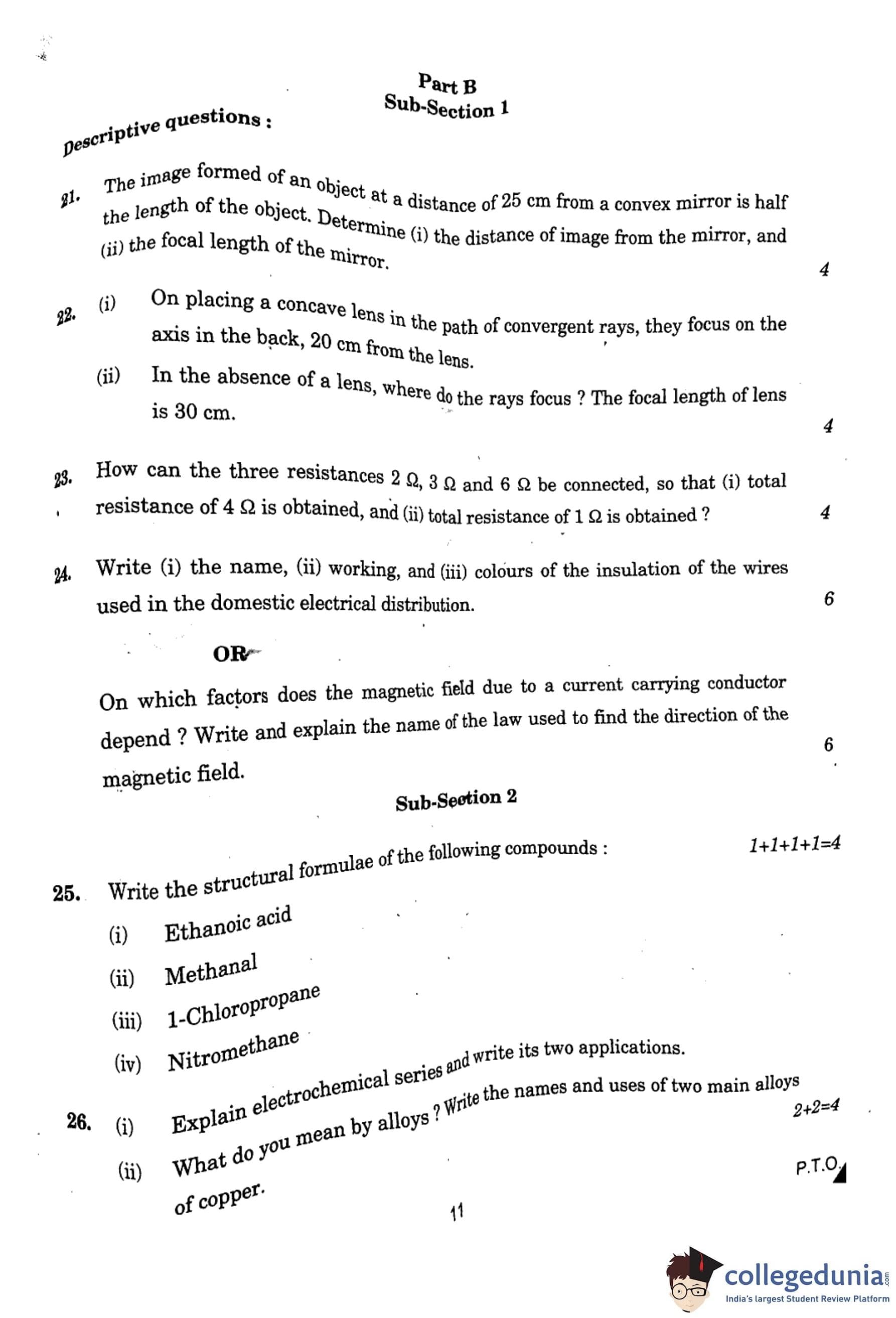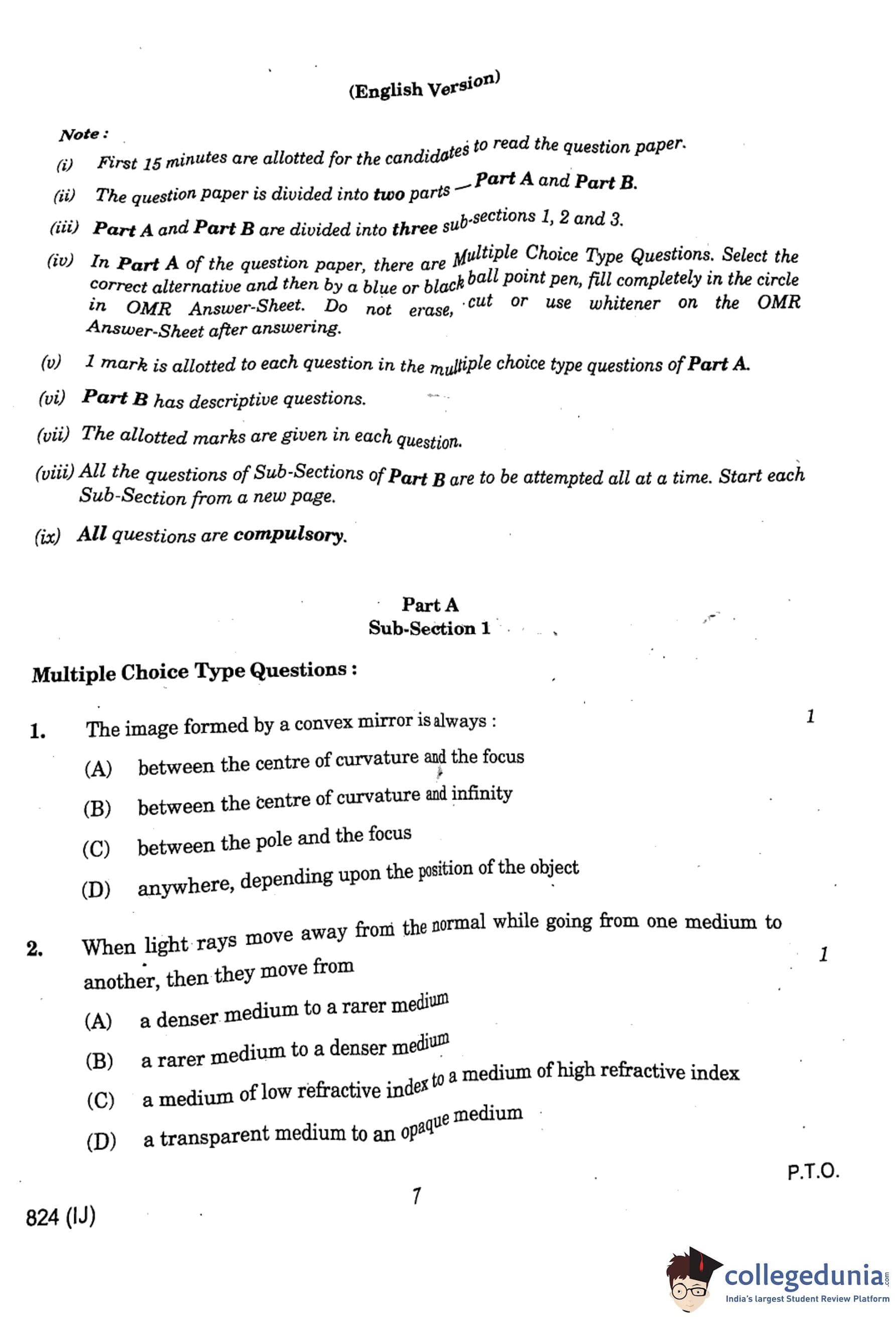 (ii) \( f = 25 \, cm \) Quick Tip: The mirror formula \(\frac{1}{f} = \frac{1}{v} - \frac{1}{u} \) is used to determine focal length and image distance. For convex mirrors, both \( v \) and \( f \) are positive.
