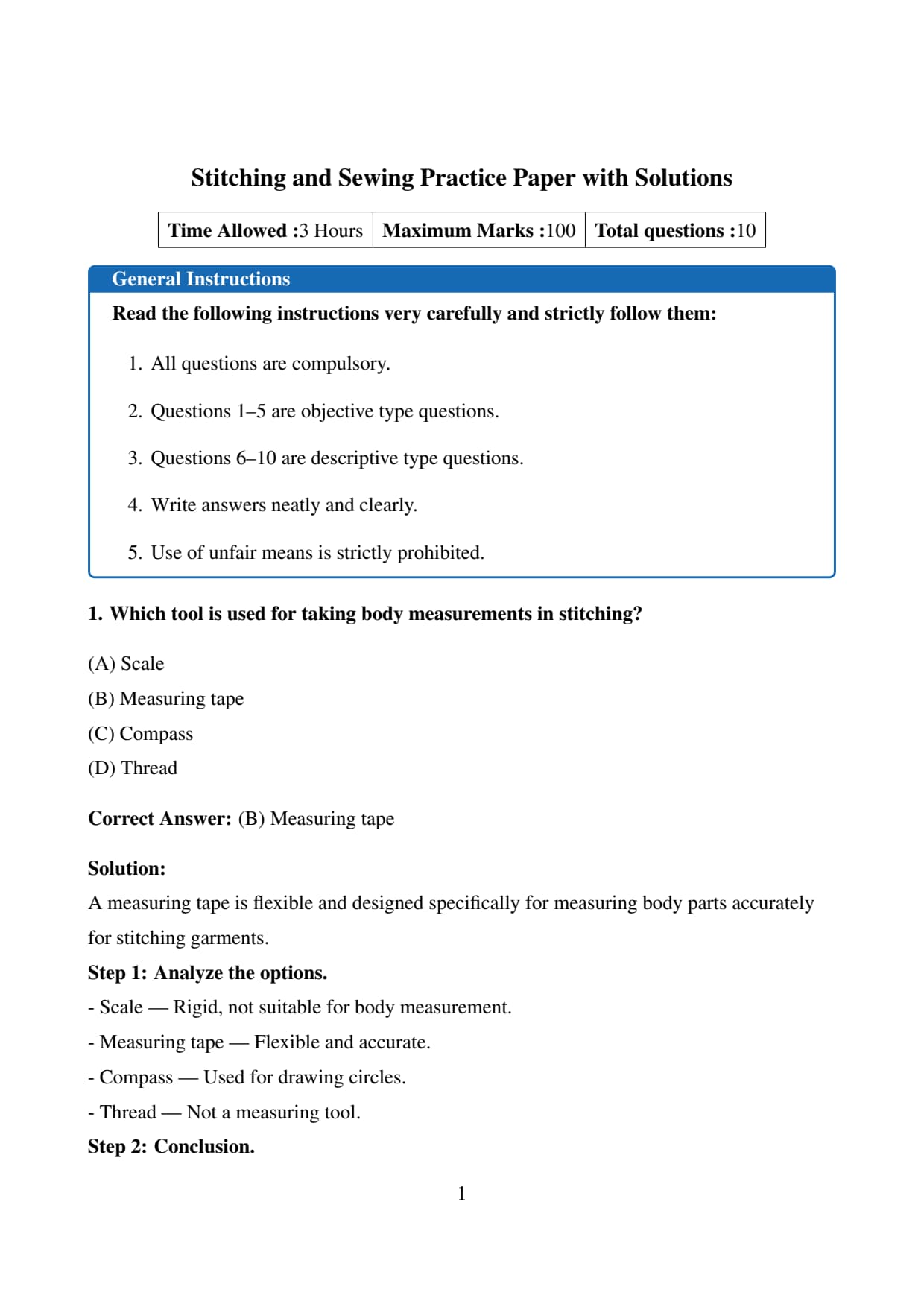 UP Board is conducting the Class 10 Stitching Board Exam 2026 on February 19, 2026. Class 10 Stitching Question Paper with Solution PDF is available here for download.