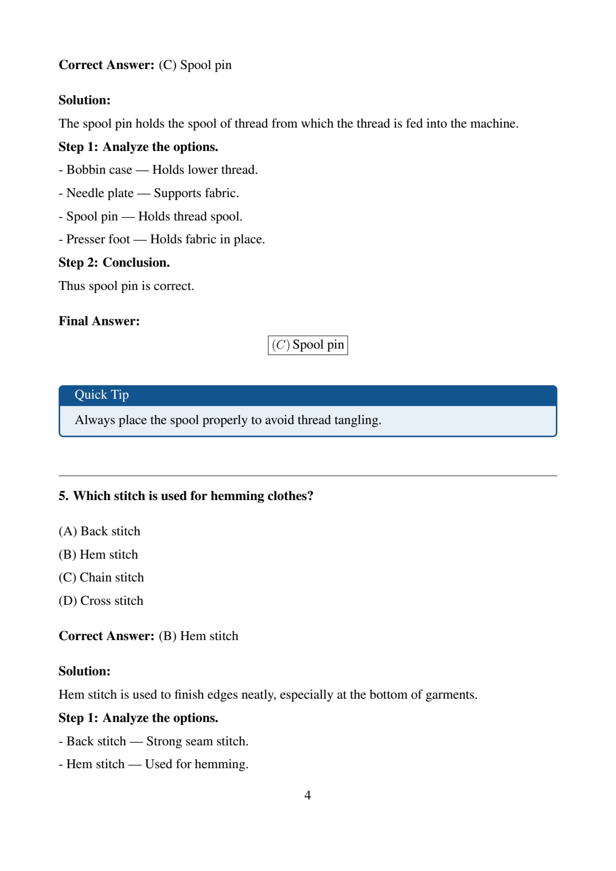 Final Answer: \[ \boxed{(C) \, Spool pin} \] Quick Tip: Always place the spool properly to avoid thread tangling.