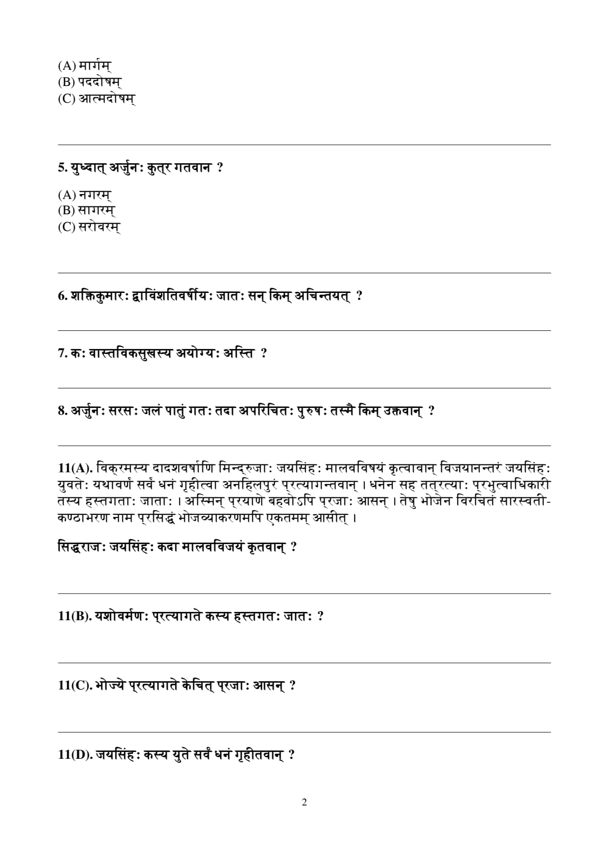 अधोदत्तं गद्यं पठित्वा प्रश्नानां उत्तराणि संस्कृते लिखत।