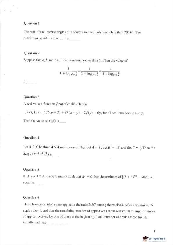 IPMAT 2019 Paper 1 Question Paper with Answer Key PDFs