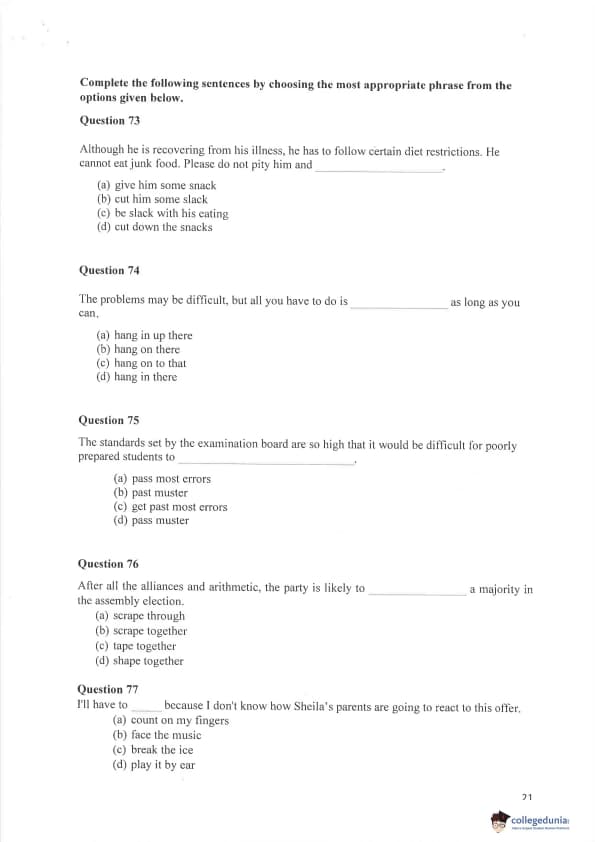 IPMAT 2019 Paper 1 Question paper with answer key pdf conducted on May 10, 2019 is available for download. The exam was successfully organized by Indian Institute of Management, Indore. The question paper comprised a total of 100 questions.