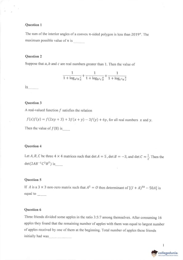 IPMAT 2019 Paper 2 Question Paper with Answer Key PDFs
