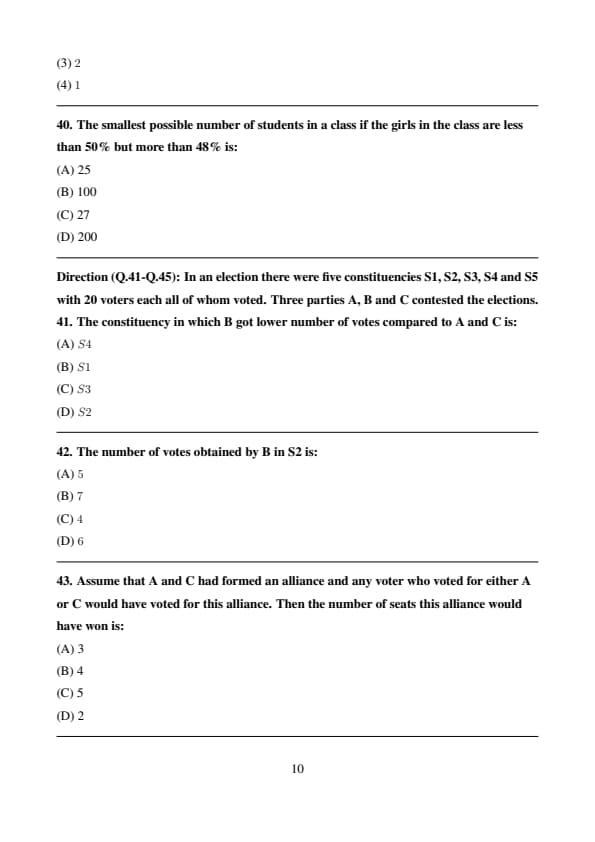 Assume that A and C had formed an alliance and any voter who voted for either A or C would have voted for this alliance. Then the number of seats this alliance would have won is: