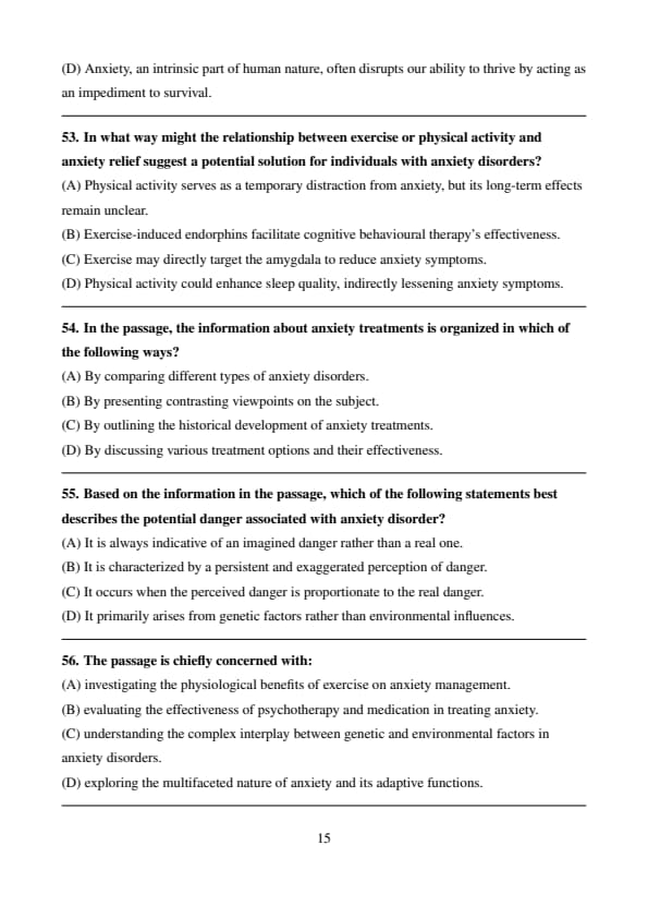 In the passage, the information about anxiety treatments is organized in which of the following ways?