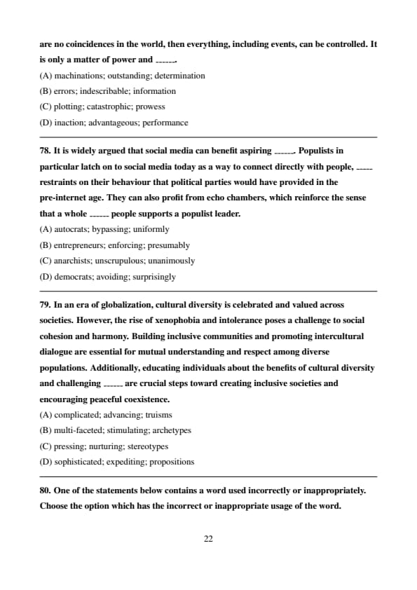 It is widely argued that social media can benefit aspiring ______. Populists in particular latch on to social media today as a way to connect directly with people, _____\ restraints on their behaviour that political parties would have provided in the pre-internet age. They can also profit from echo chambers, which reinforce the sense that a whole ______ people supports a populist leader.