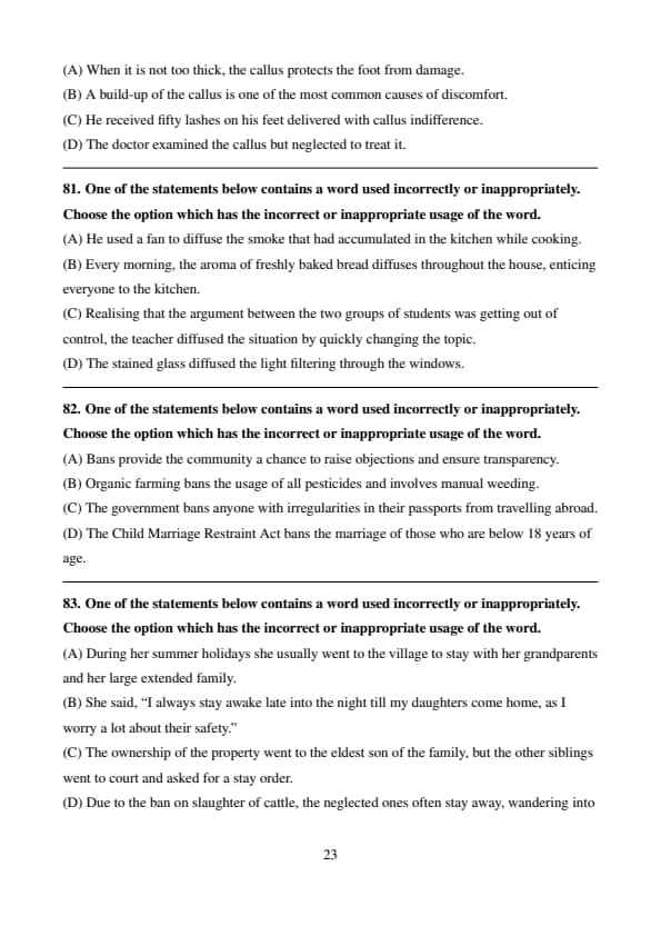 One of the statements below contains a word used incorrectly or inappropriately. Choose the option which has the incorrect or inappropriate usage of the word.