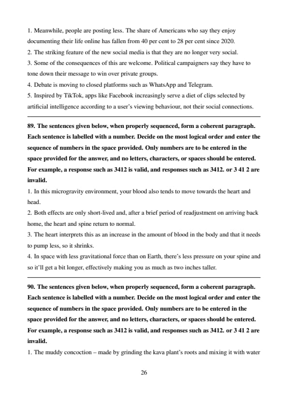 The sentences given below, when properly sequenced, form a coherent paragraph. Each sentence is labelled with a number. Decide on the most logical order and enter the sequence of numbers in the space provided. Only numbers are to be entered in the space provided for the answer, and no letters, characters, or spaces should be entered. For example, a response such as 3412 is valid, and responses such as 3412. or 3 41 2 are invalid.
