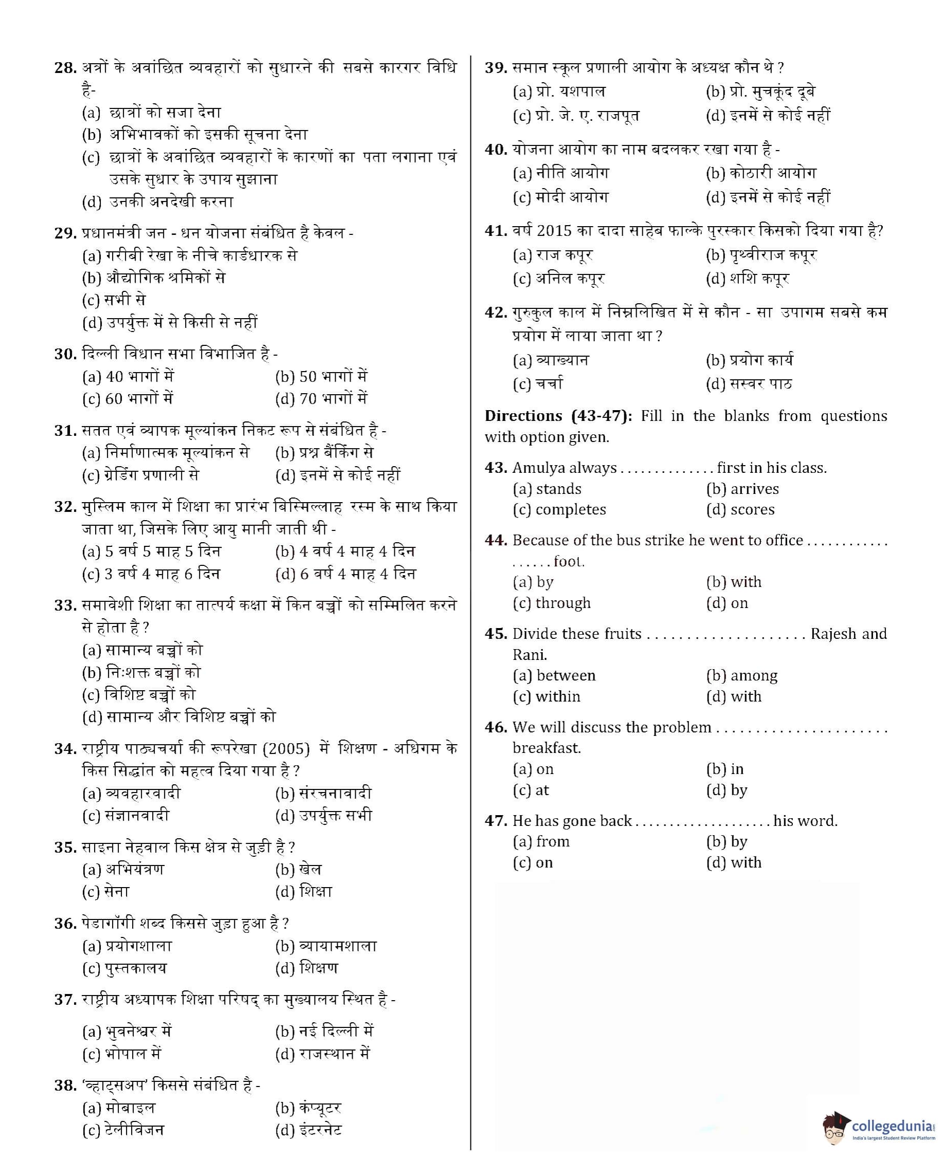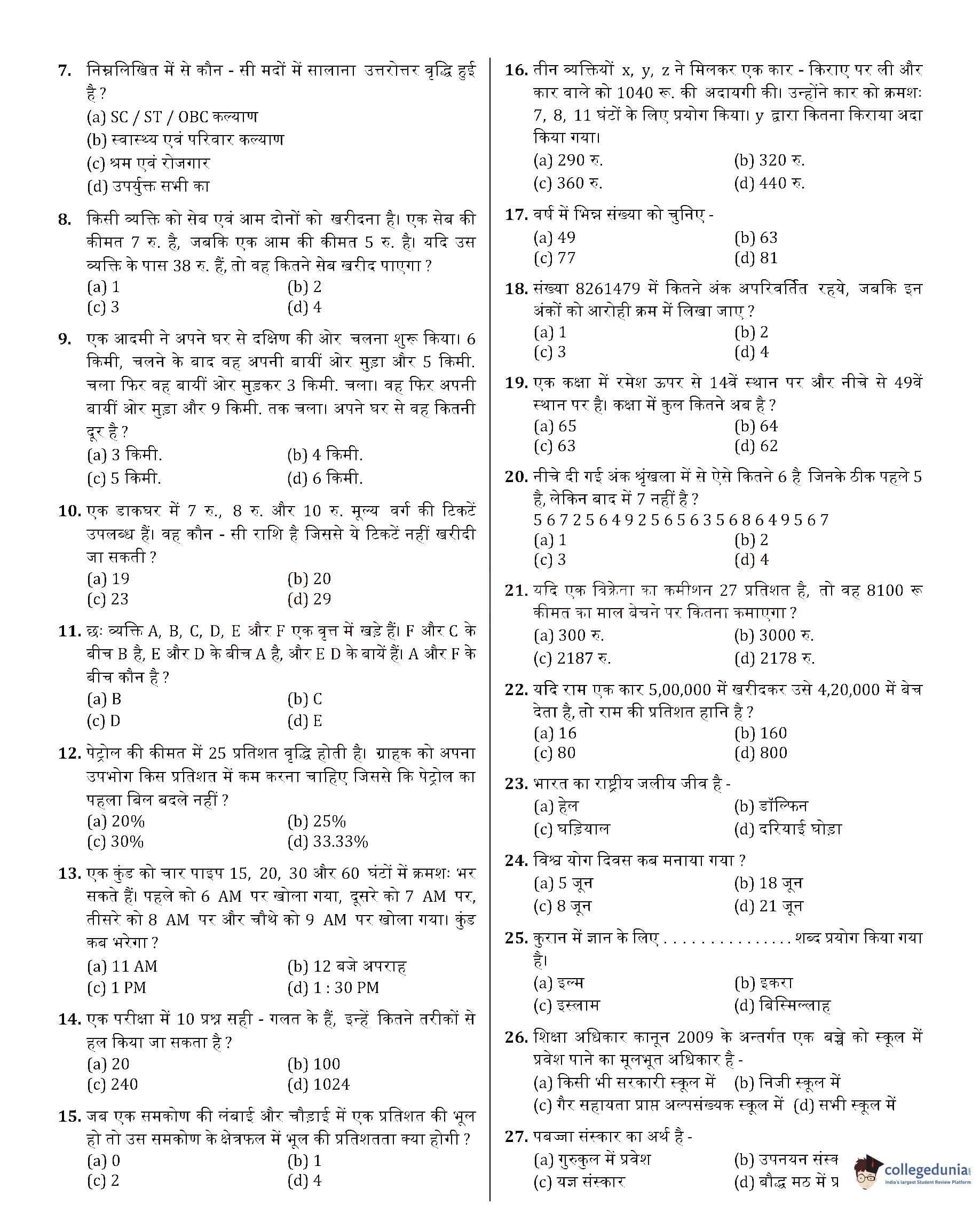 Bihar BEd CET 2015 Question Paper with Answer Key PDF