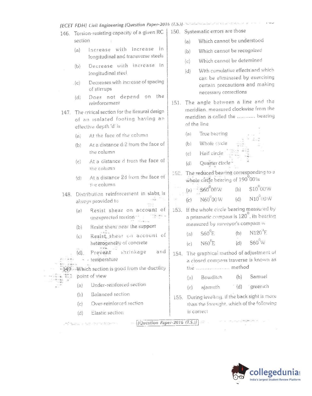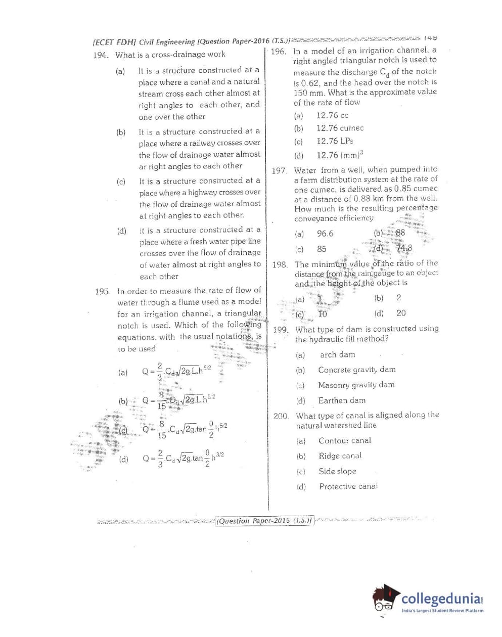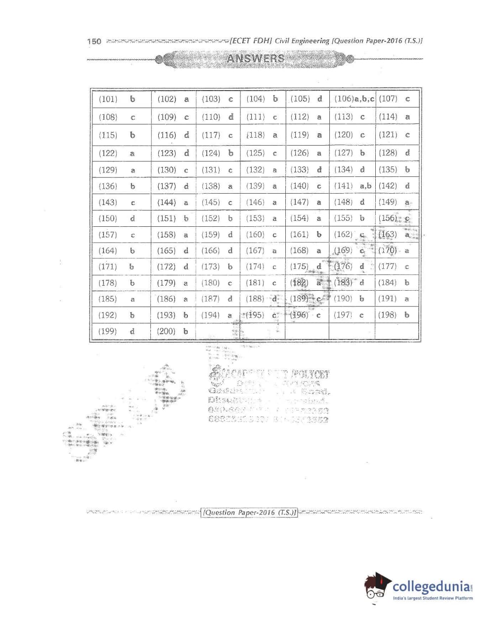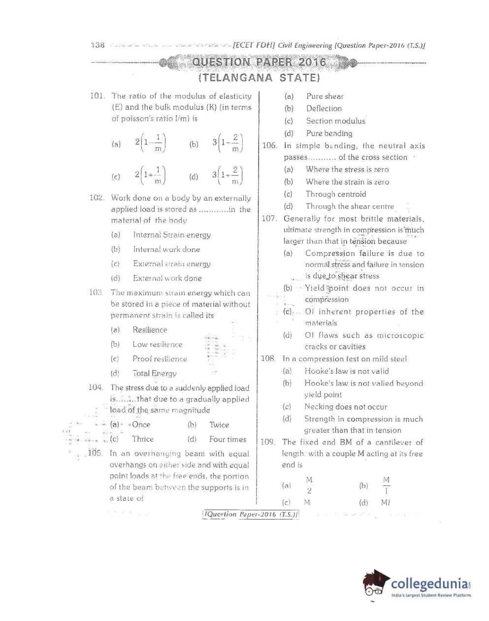 TS ECET 2016 Civil Engineering Question Paper with Answer Key PDFs