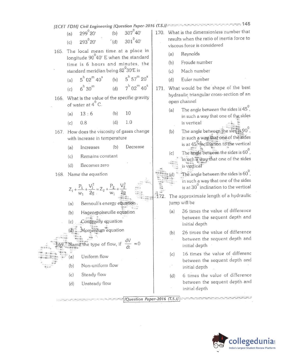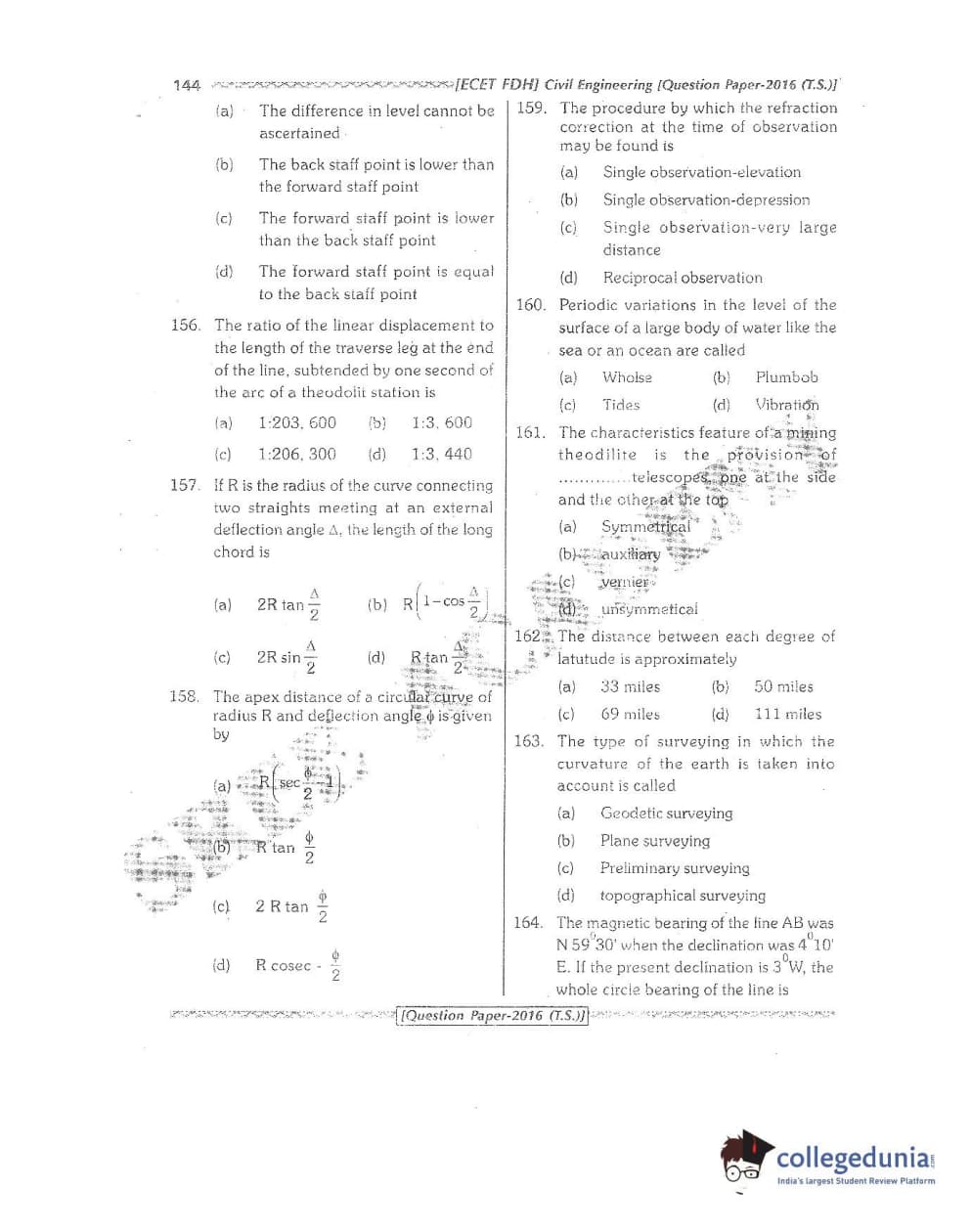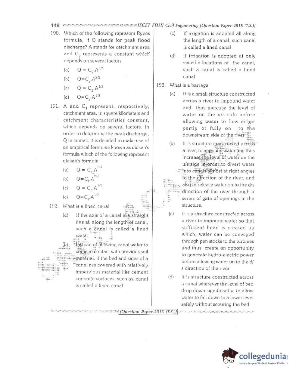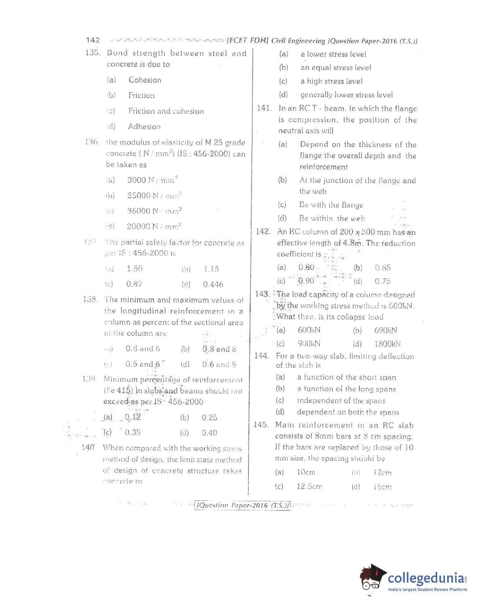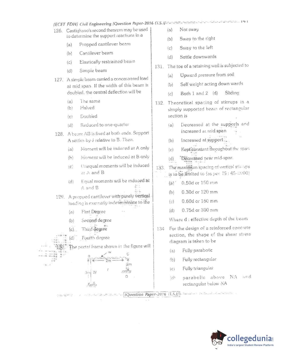 TS ECET 2016 Civil Engineering Question Paper with Answer Key PDFs