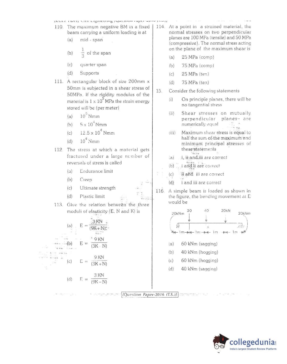 TS ECET 2016 Civil Engineering Question paper with answer key pdf conducted on May 15, 2016 is available for download. The exam was successfully organized by Jawaharlal Nehru Technological University Hyderabad. The question paper comprised a total of 100 questions.
