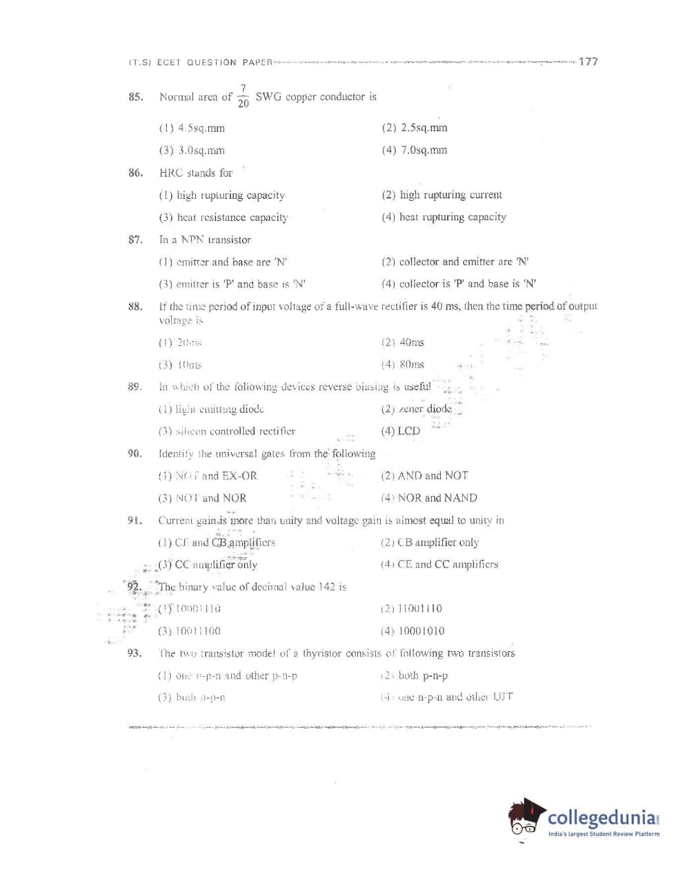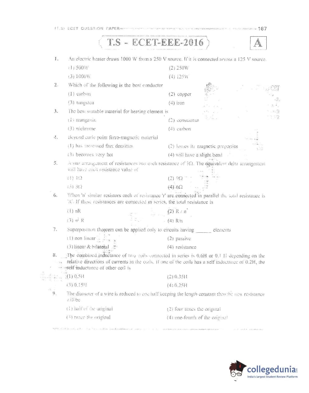 TS ECET 2016 Electrical and Electronics Engineering Question Paper with Answer Key PDFs