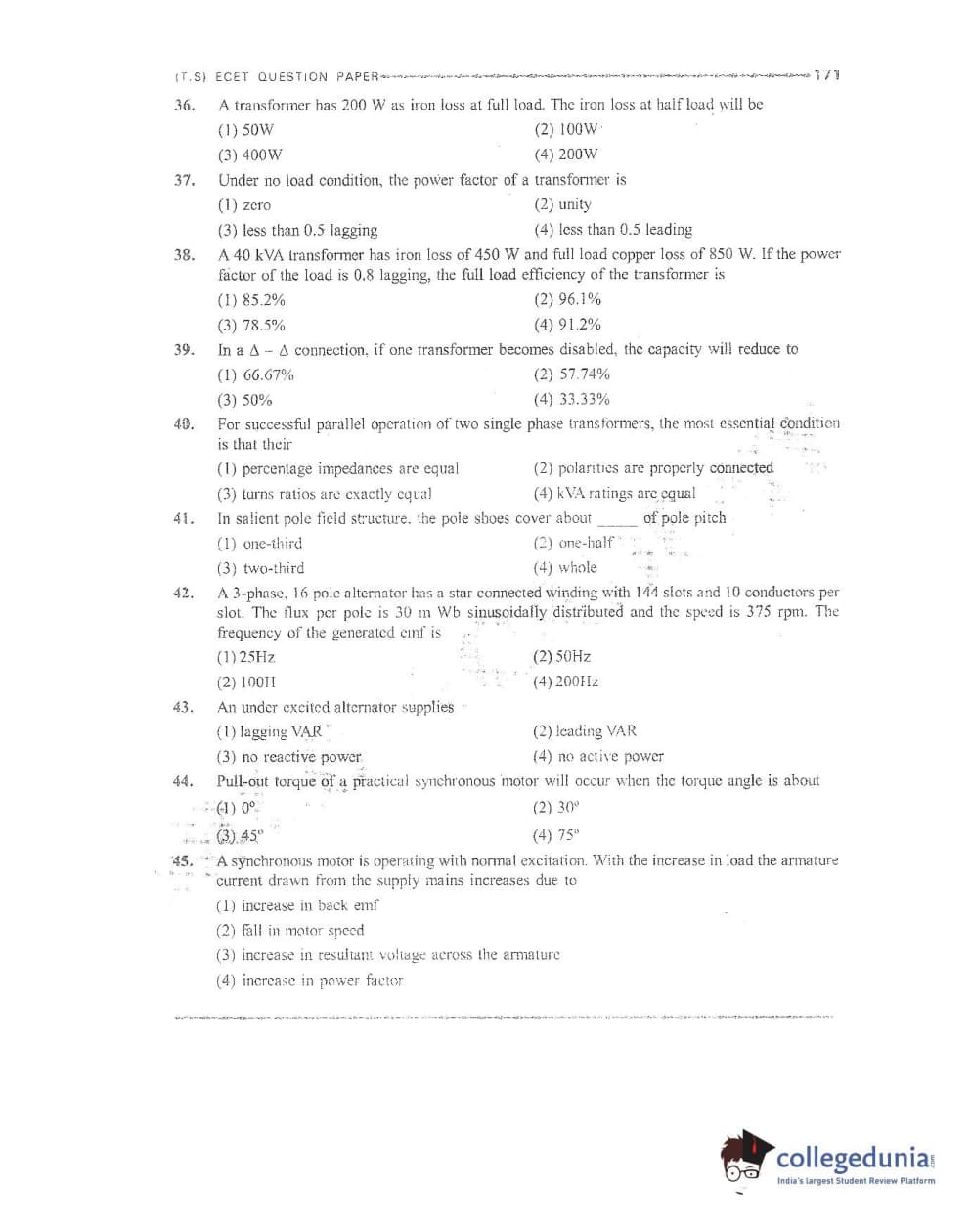 | TS ECET 2016 Electrical and Electronics Engineering Question Paper PDF | TS ECET 2016 Electrical and Electronics Engineering Answer Key PDF |