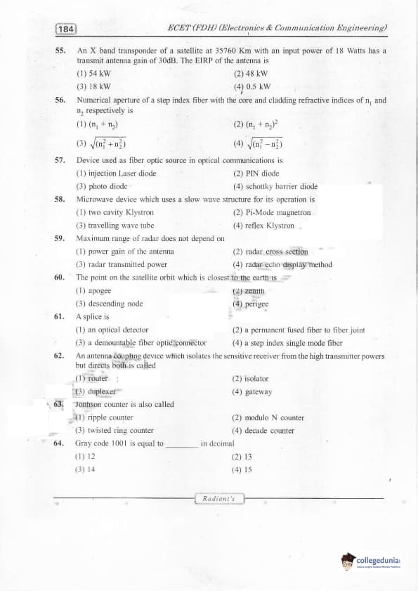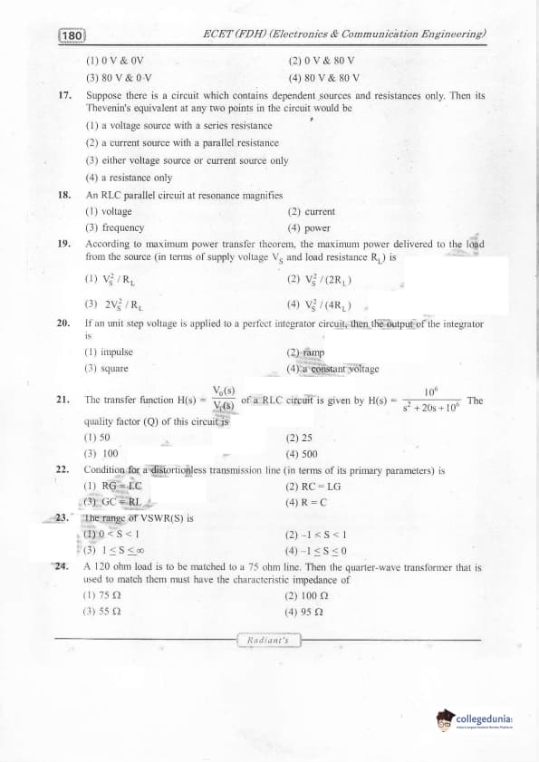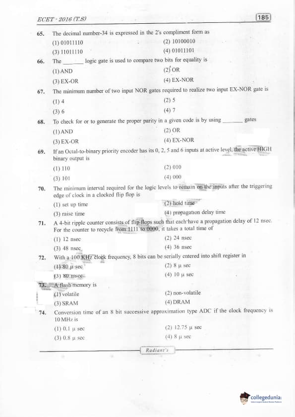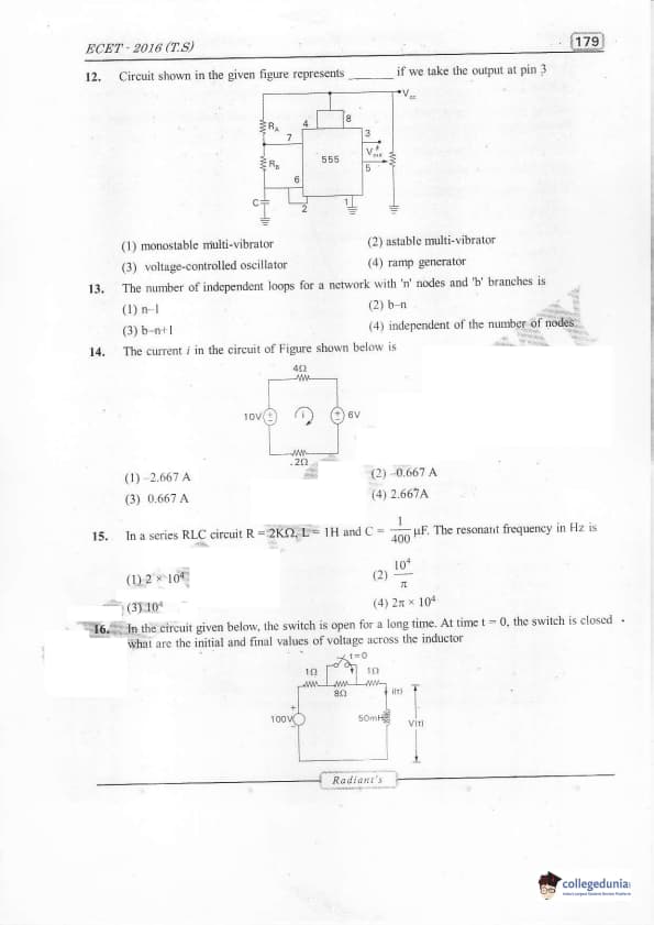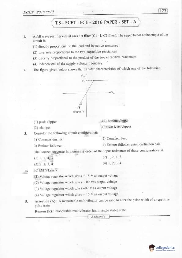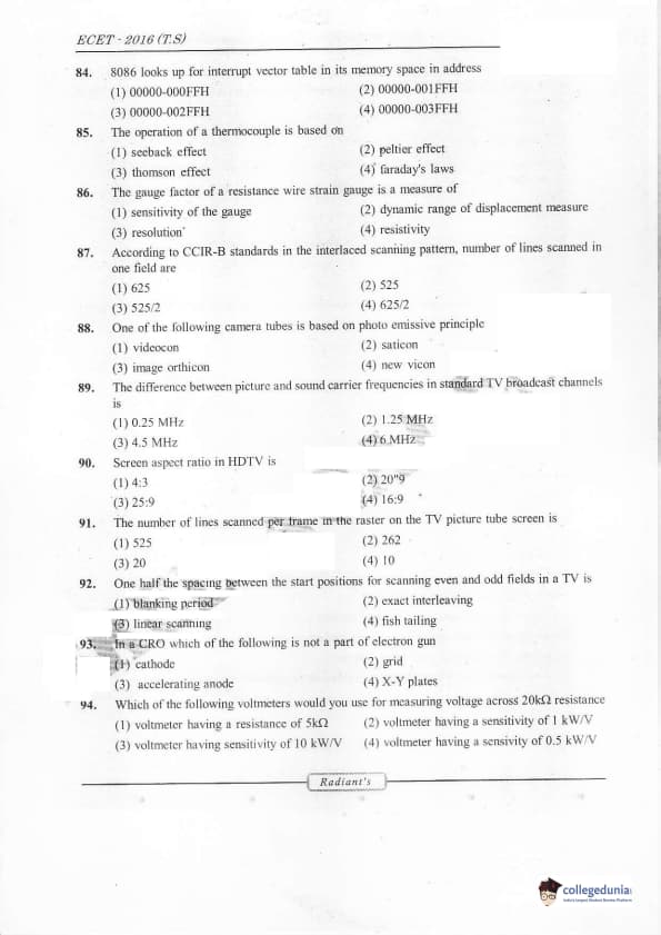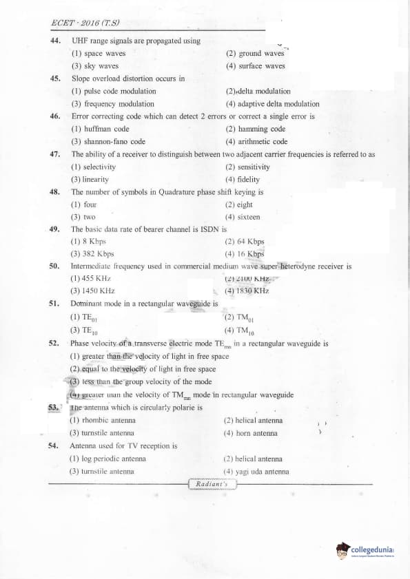 TS ECET 2016 Electronics and Communication Engineering Question Paper with Answer Key PDFs