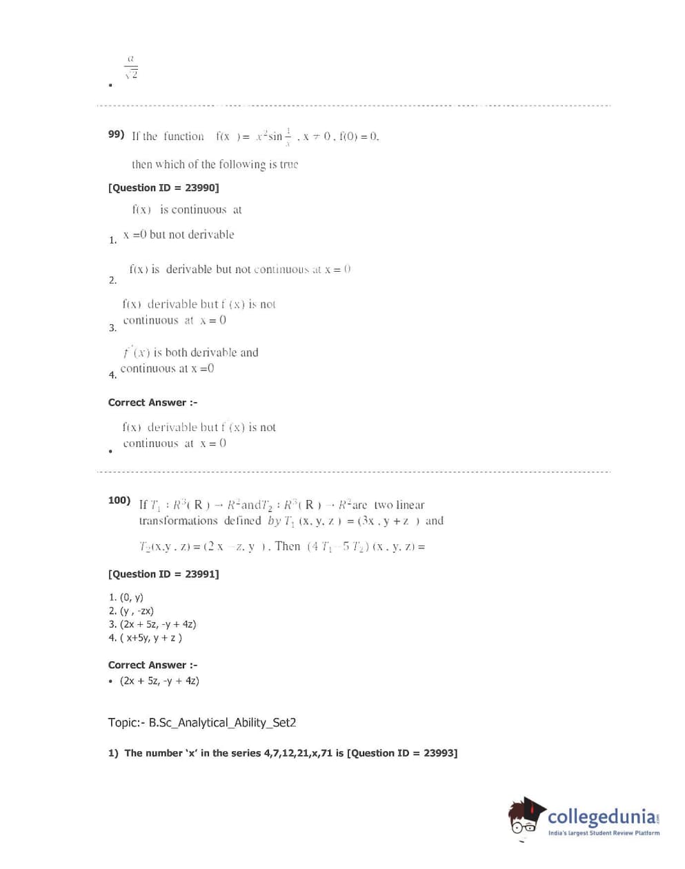 TS ECET 2017 B.Sc Mathematics Question Paper with Answer Key PDFs