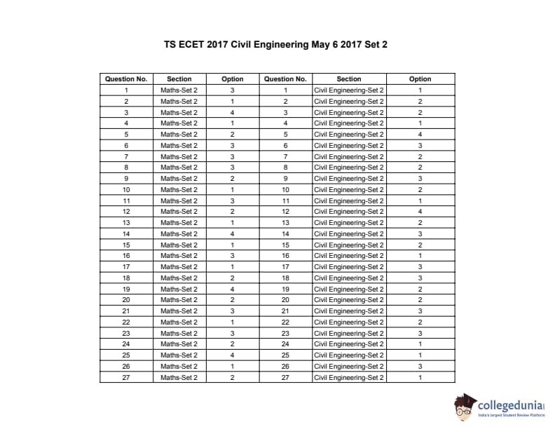 | TS ECET 2017 Civil Engineering Question Paper PDF | TS ECET 2017 Civil Engineering Answer Key PDF |