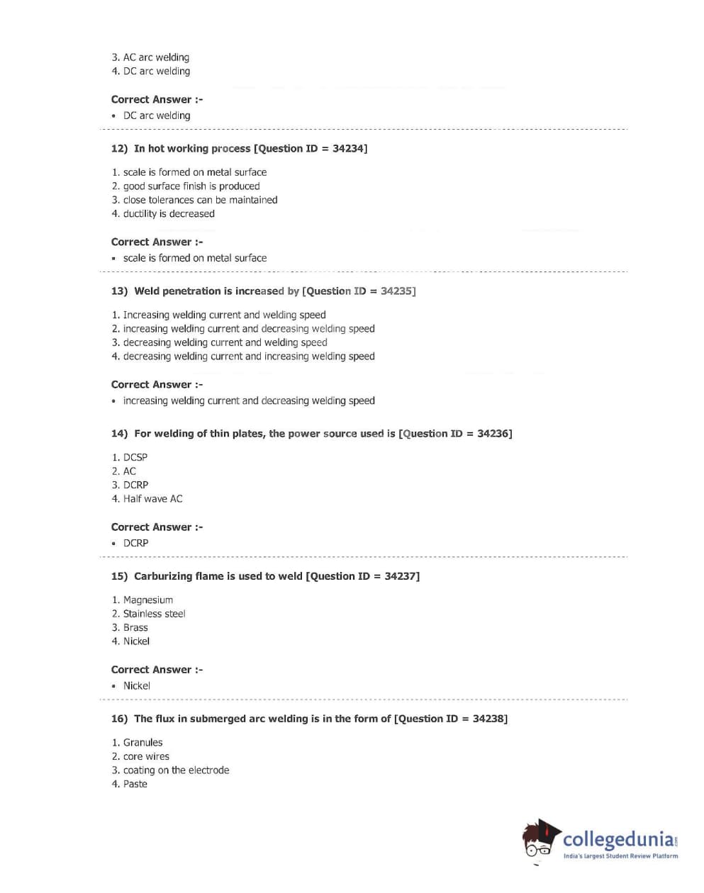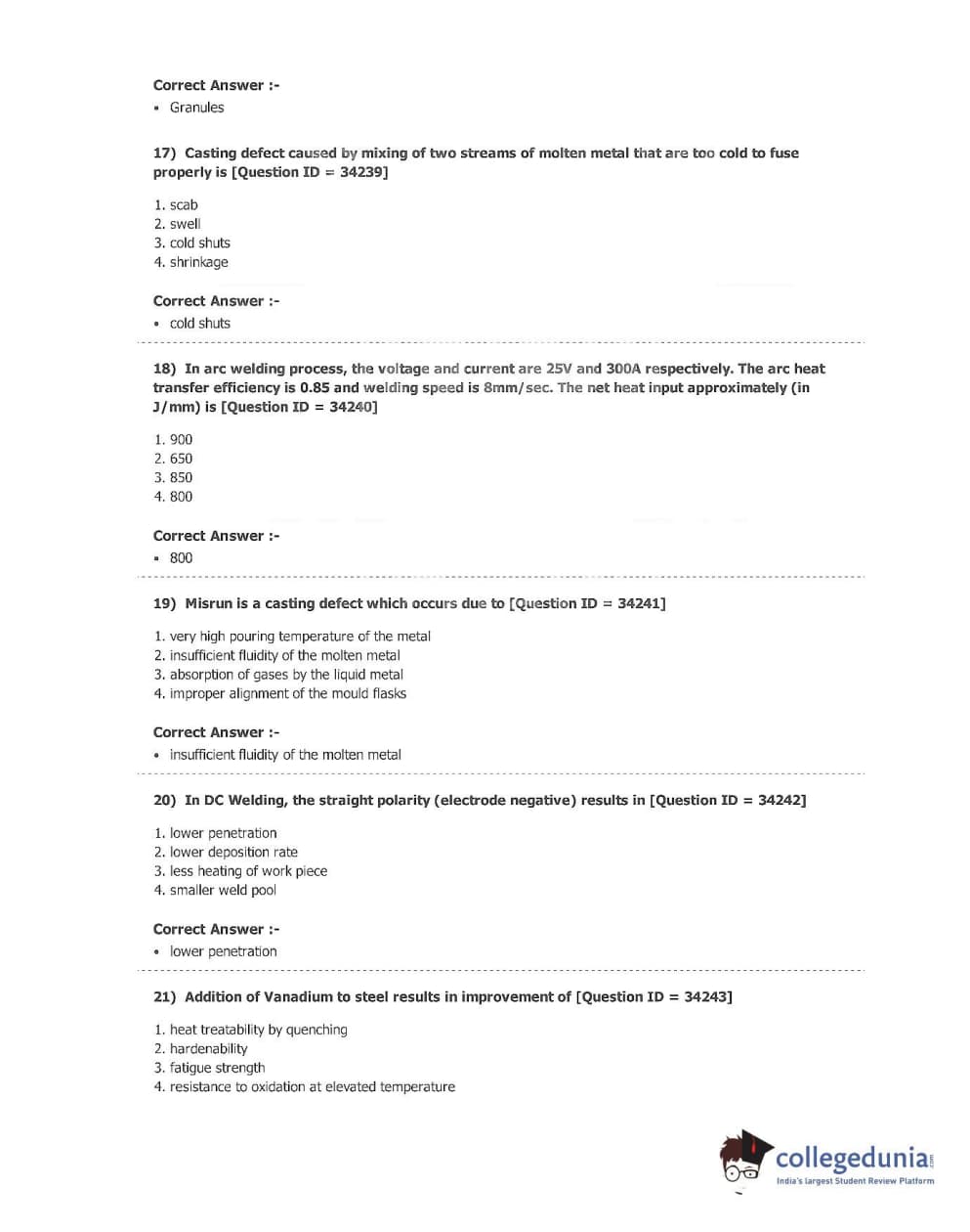 TS ECET 2017 Mechanical Engineering Question Paper with Answer Key PDFs