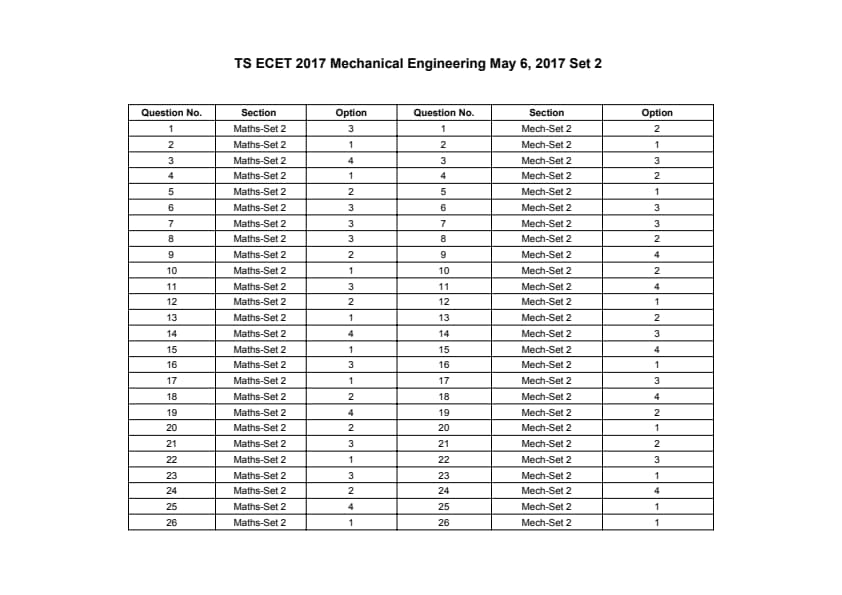 | TS ECET 2017 Mechanical Engineering Question Paper PDF | TS ECET 2017 Mechanical Engineering Answer Key PDF |