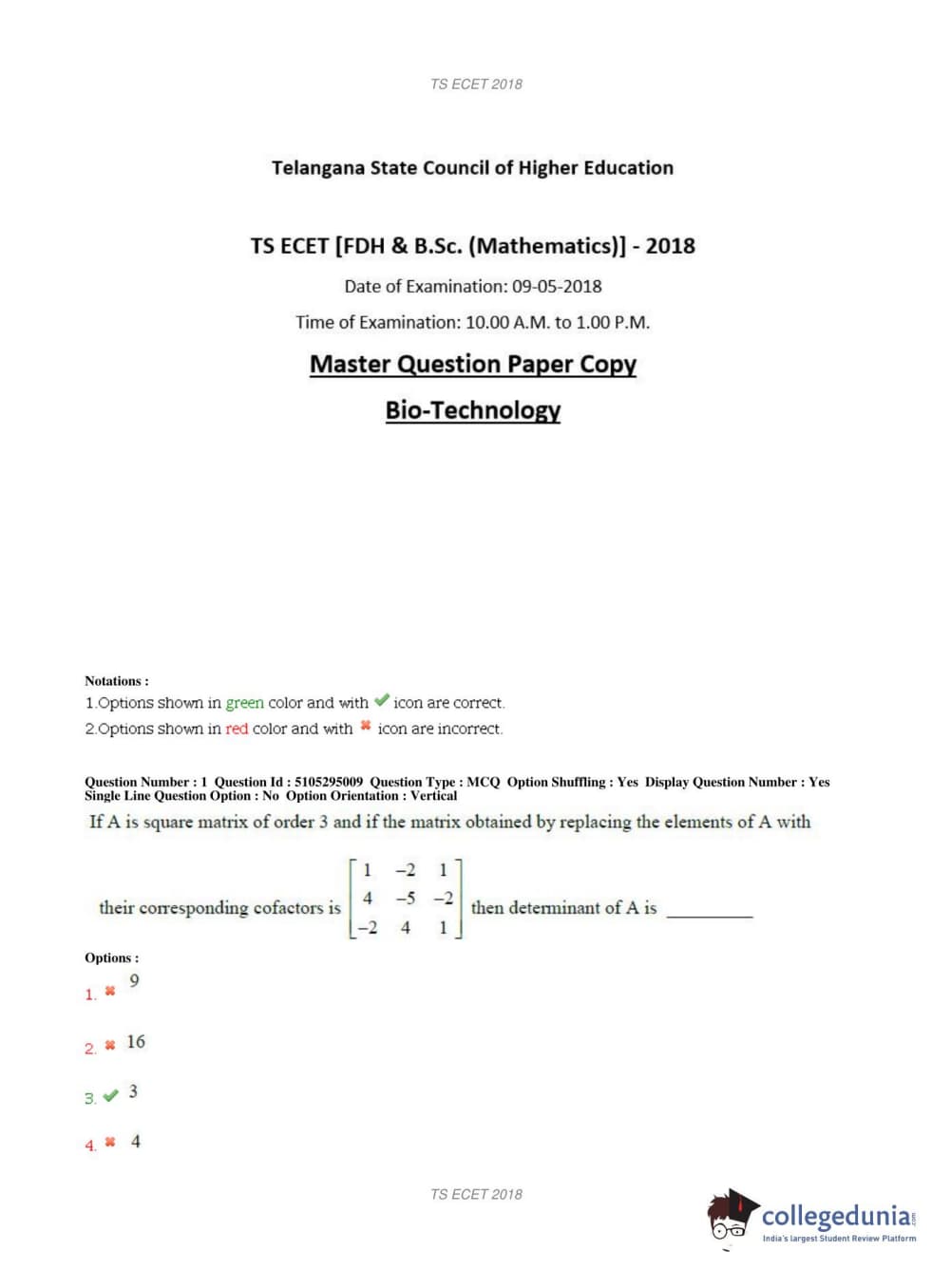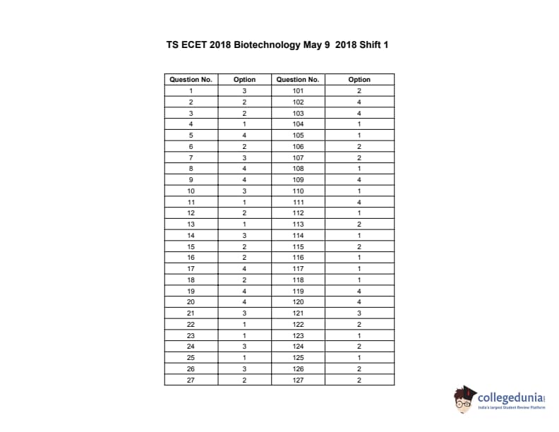 | TS ECET 2018 BIO TECHNOLOGY Question Paper PDF | TS ECET 2018 BIO TECHNOLOGY Answer Key PDF |