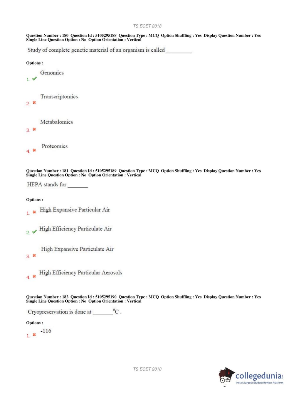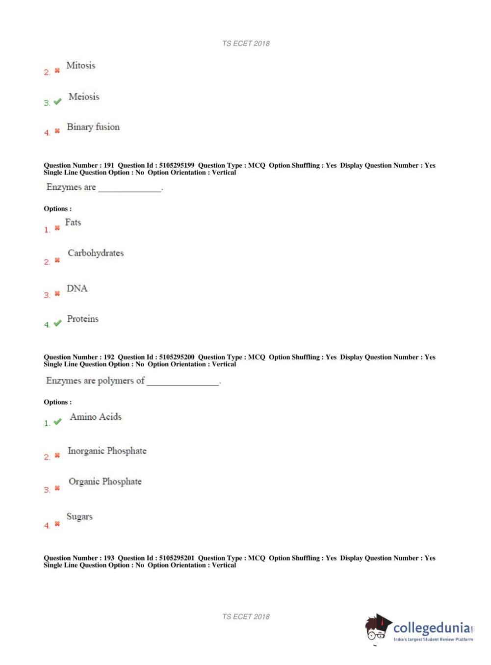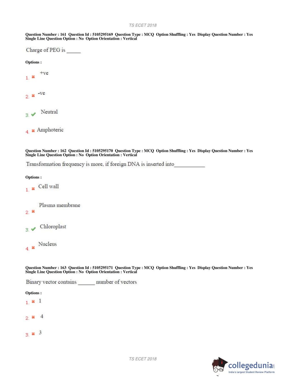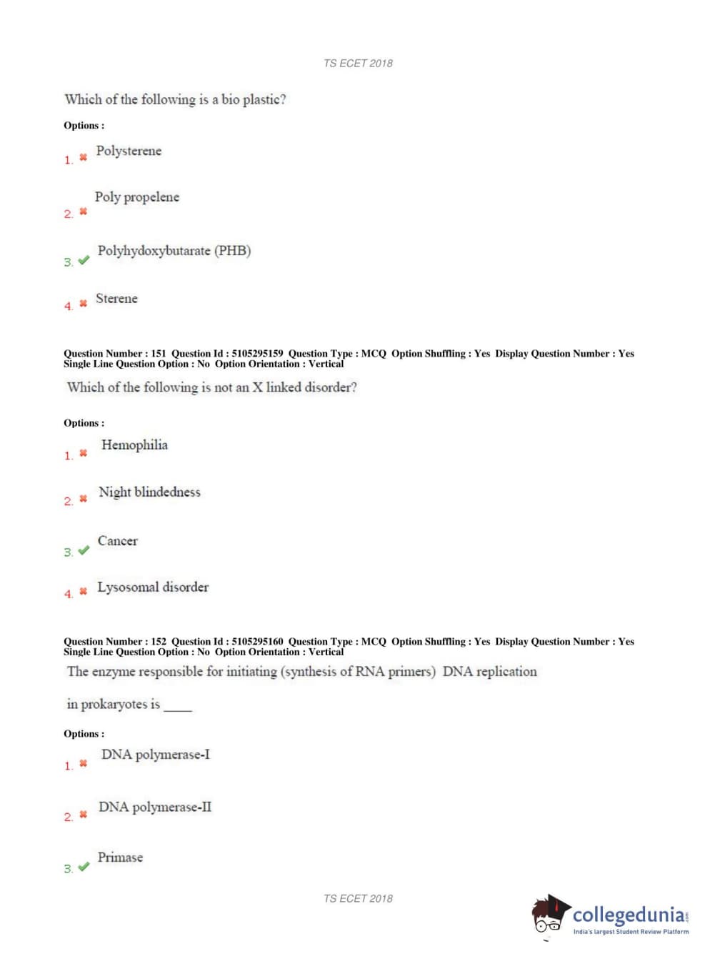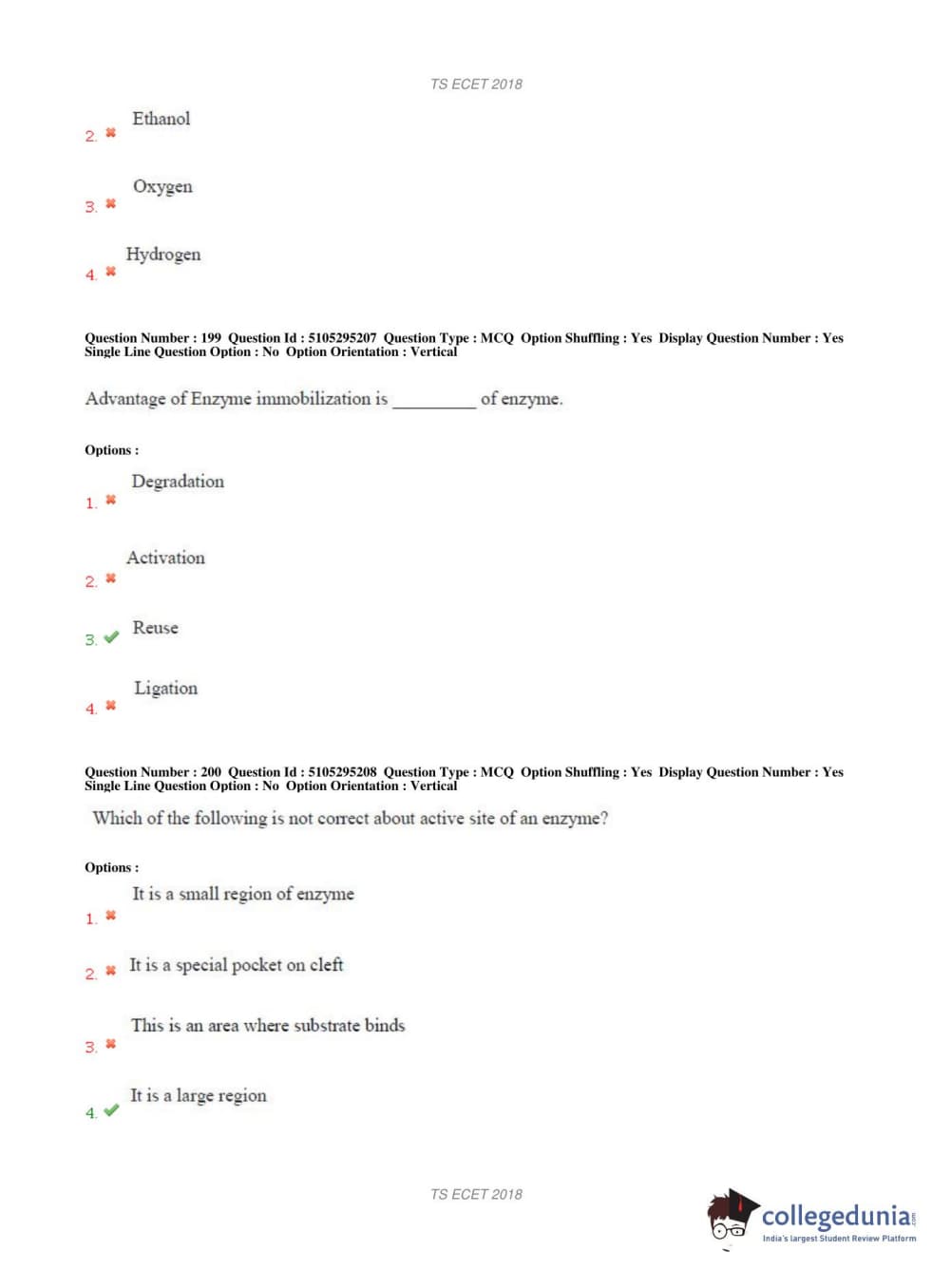 TS ECET 2018 BIO TECHNOLOGY Question Paper with Answer Key PDFs Shift 1