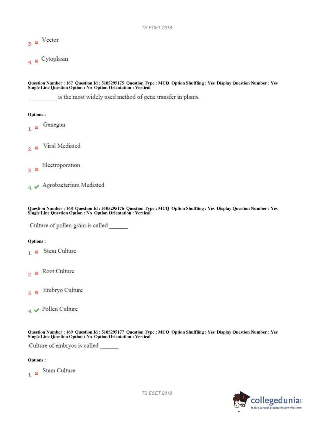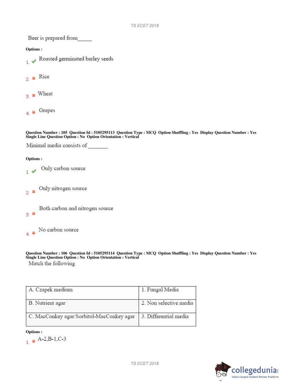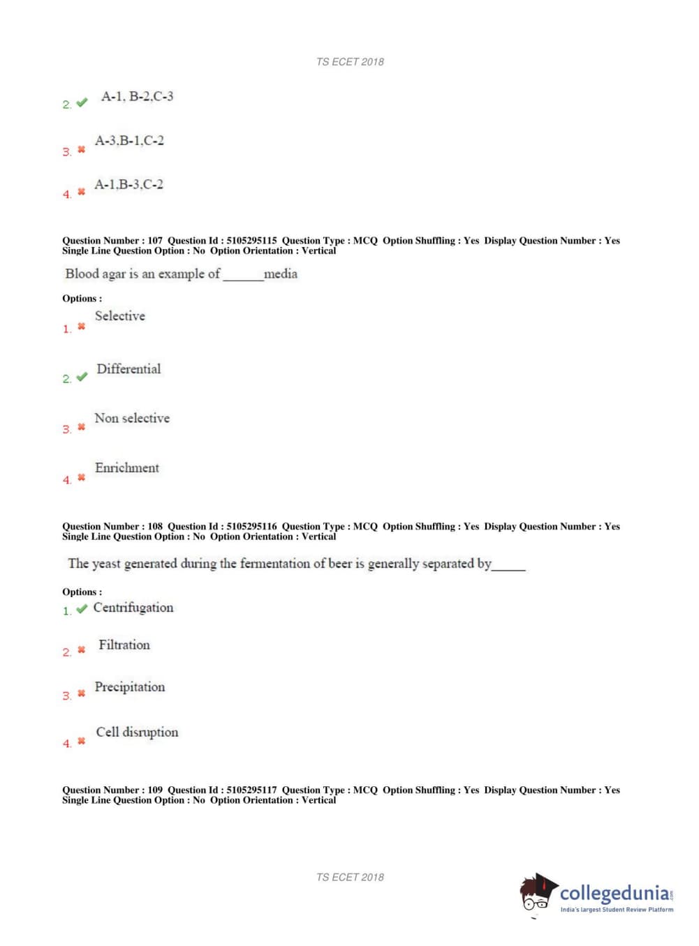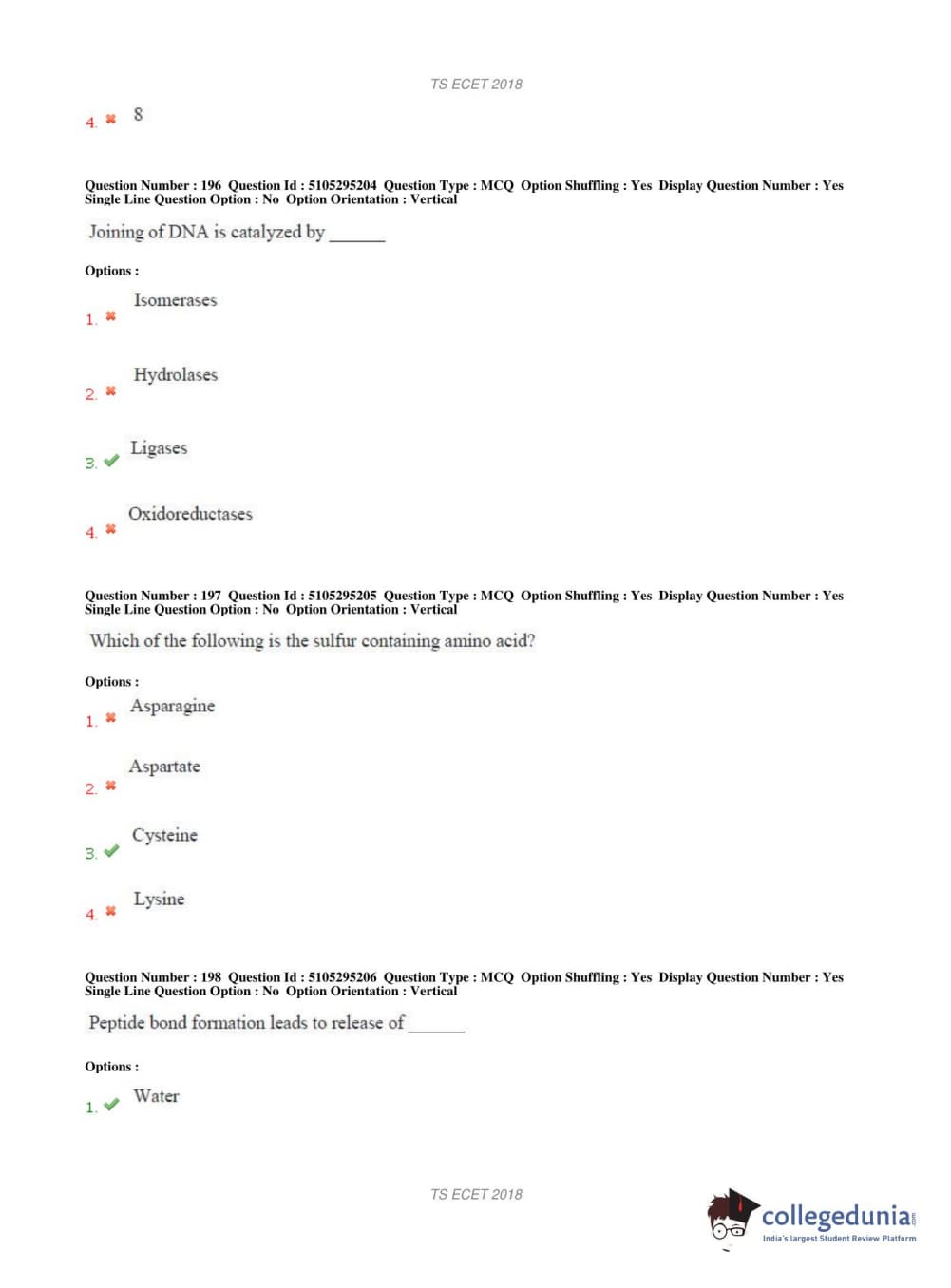 TS ECET 2018 BIO TECHNOLOGY Question Paper with Answer Key PDFs Shift 1