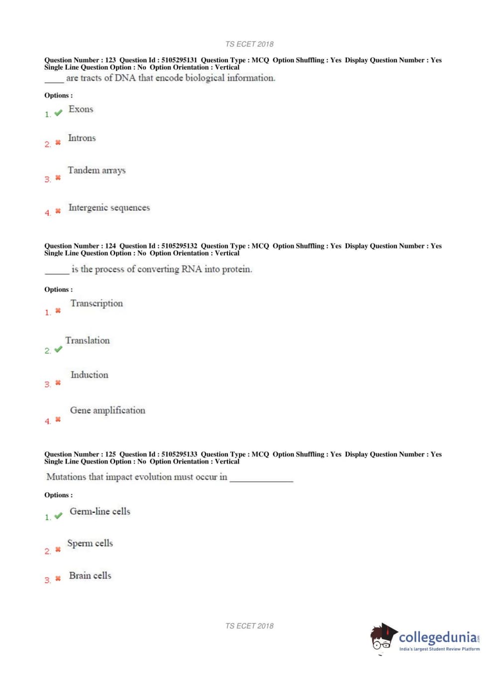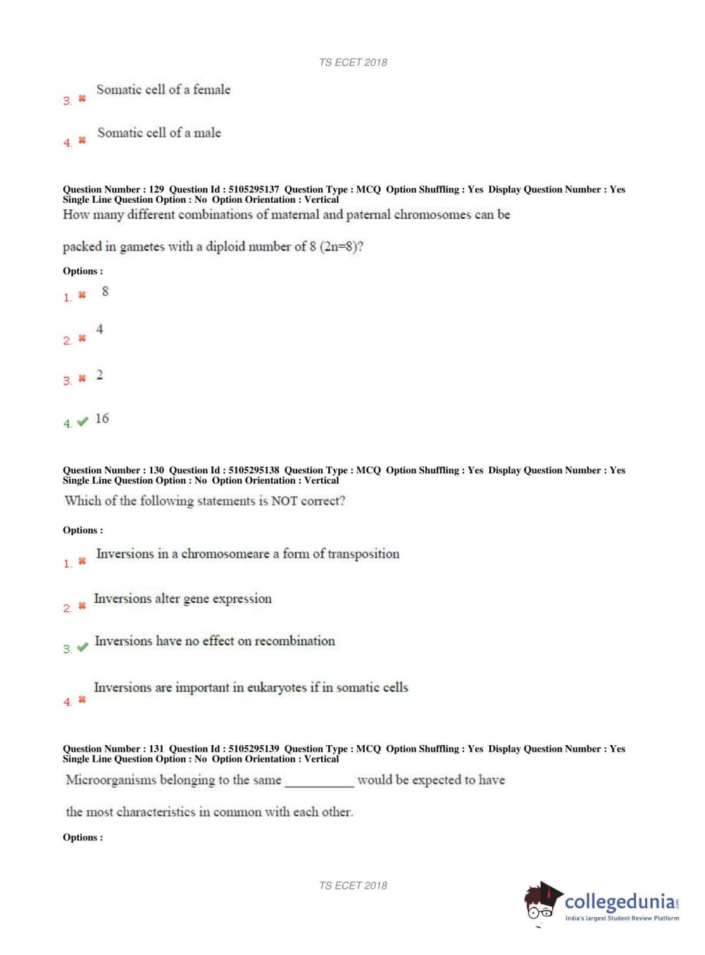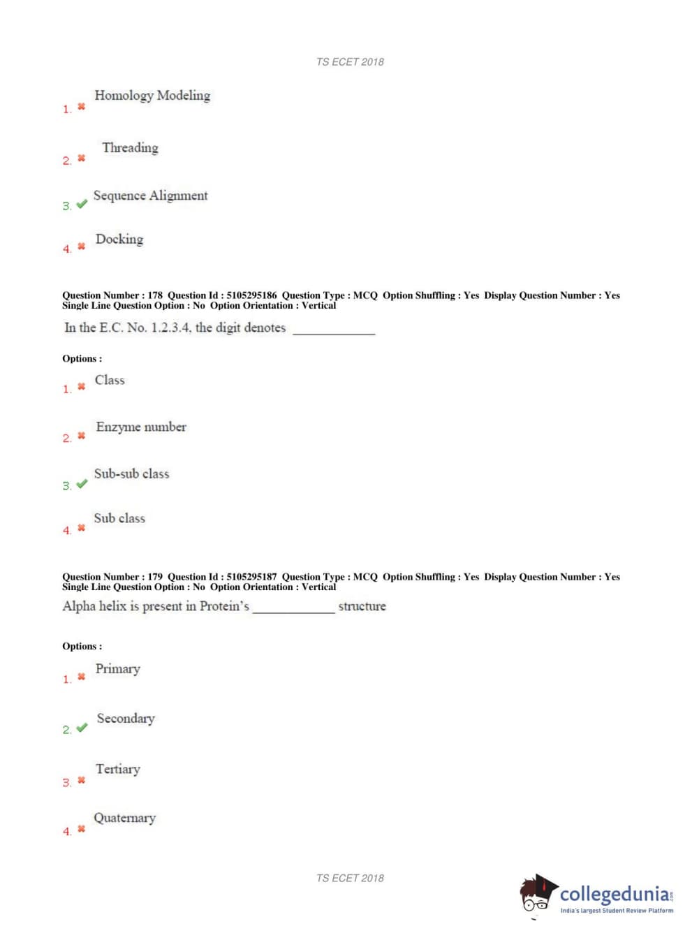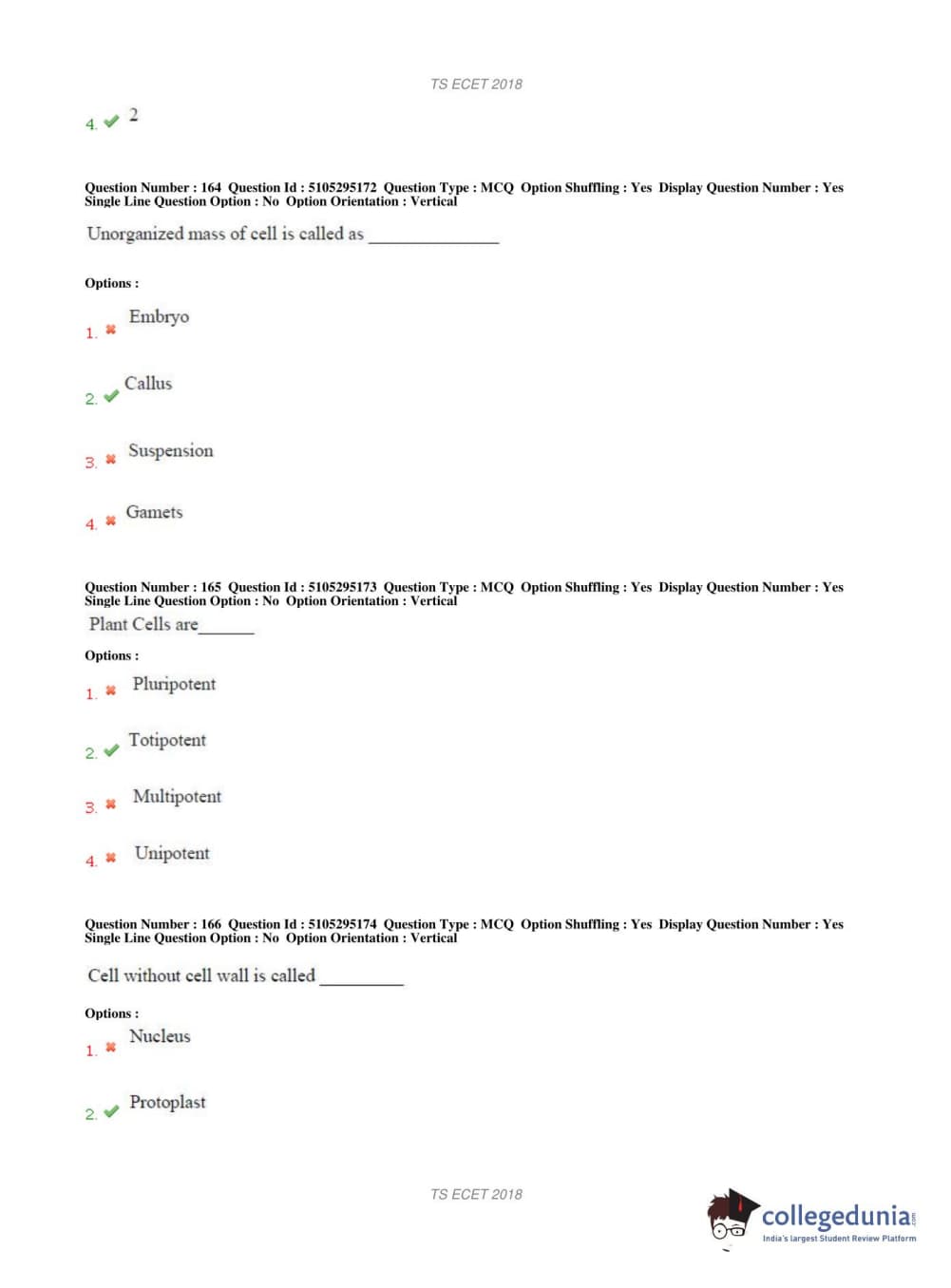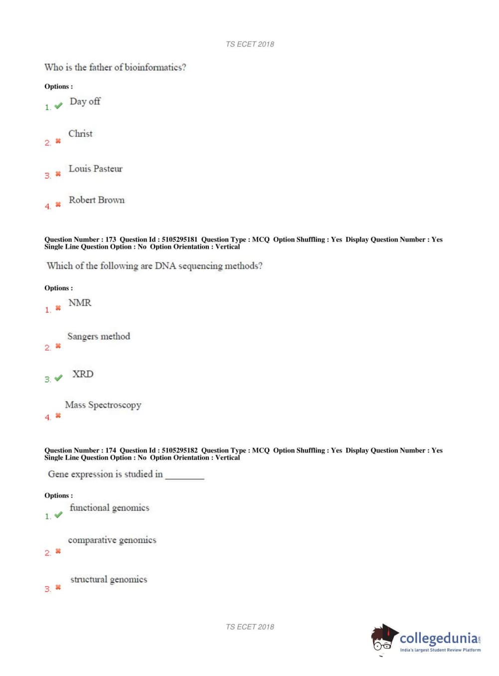 TS ECET 2018 BIO TECHNOLOGY Question Paper with Answer Key PDFs Shift 1