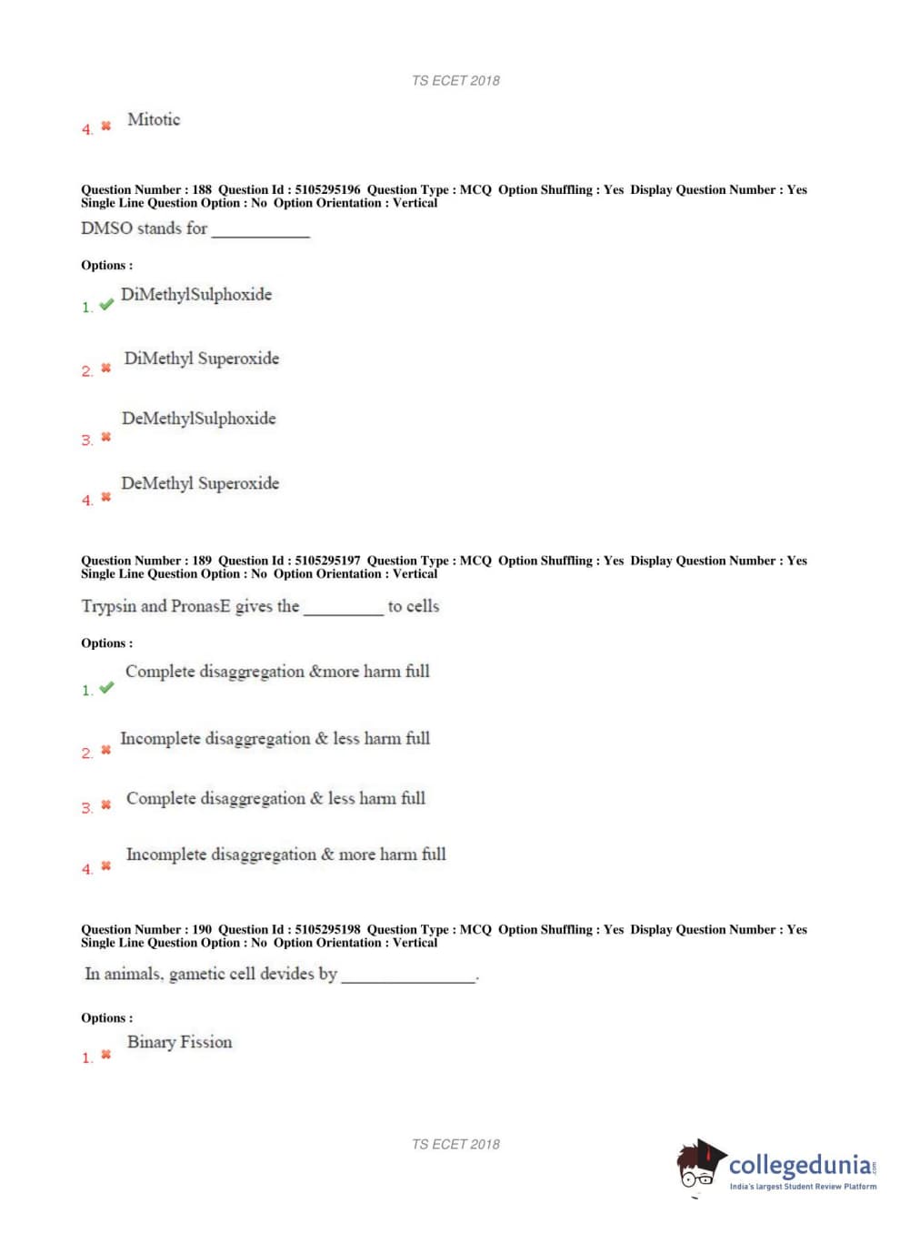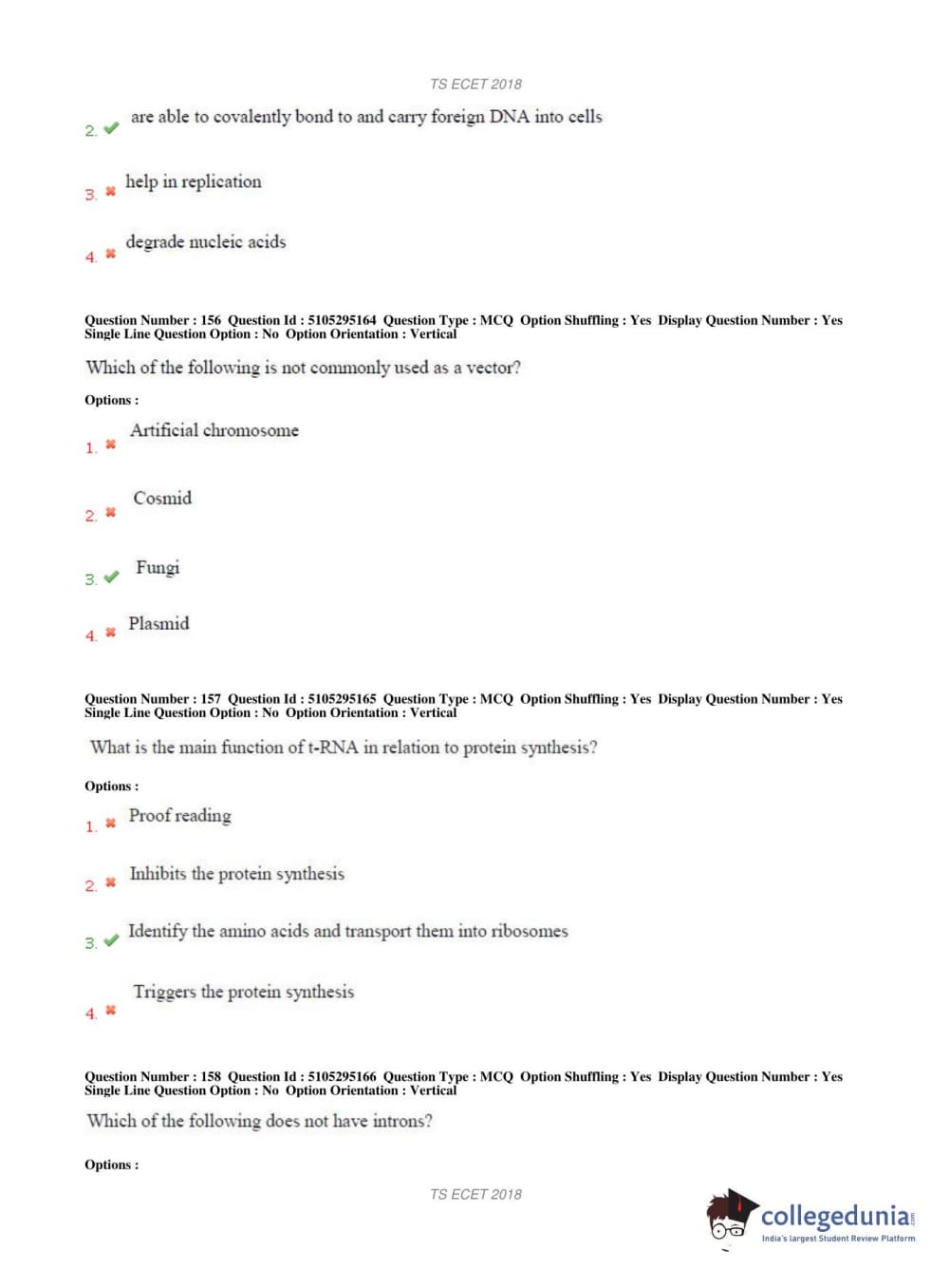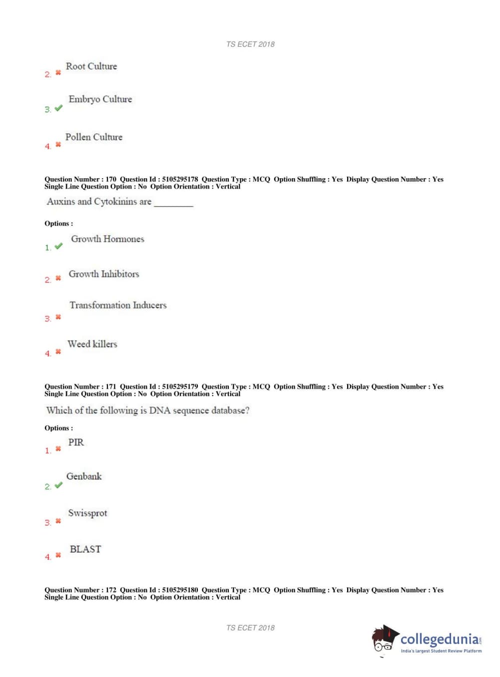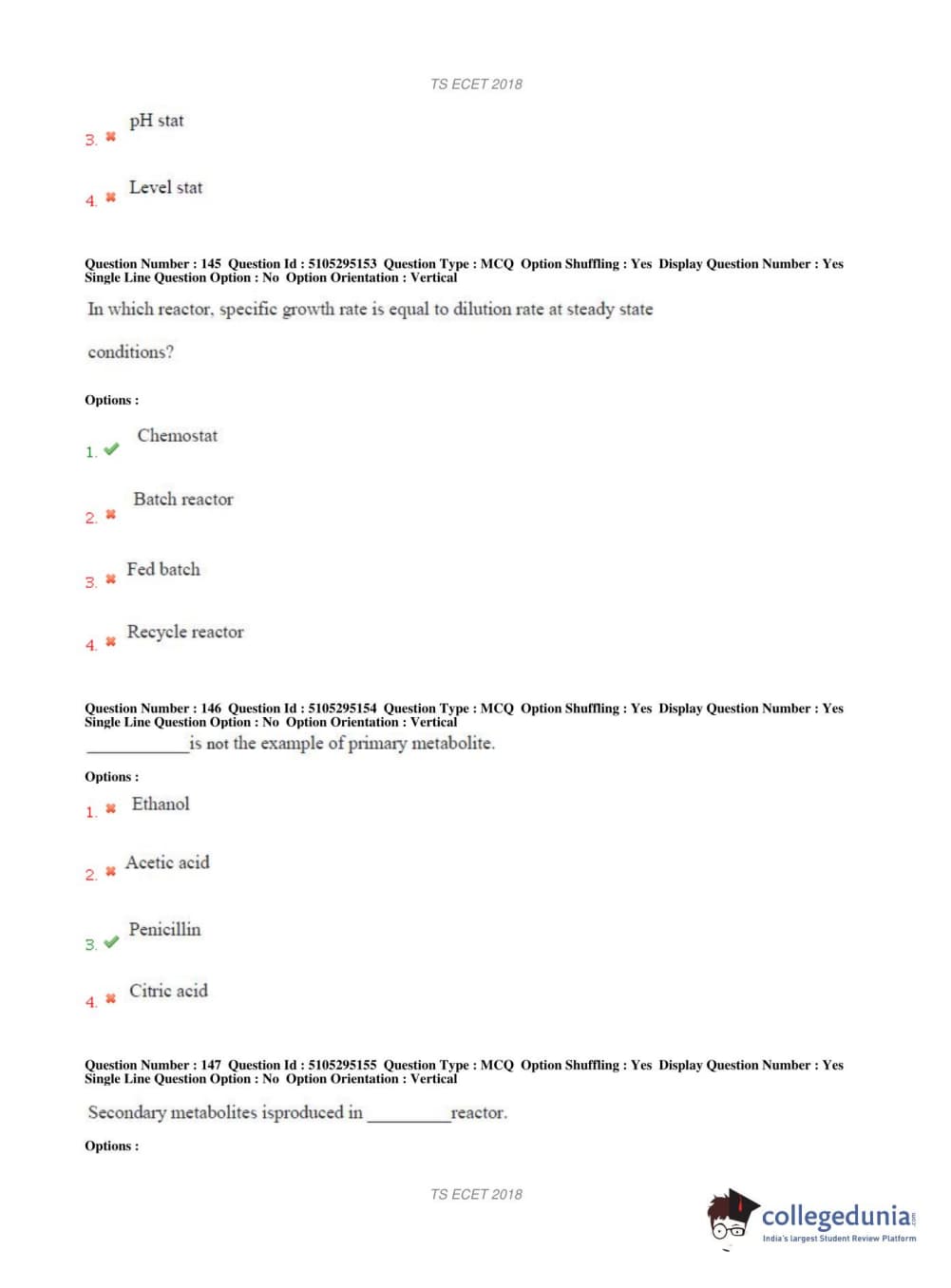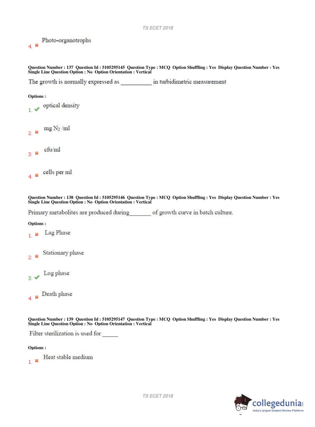 TS ECET 2018 BIO TECHNOLOGY Question Paper with Answer Key PDFs Shift 1