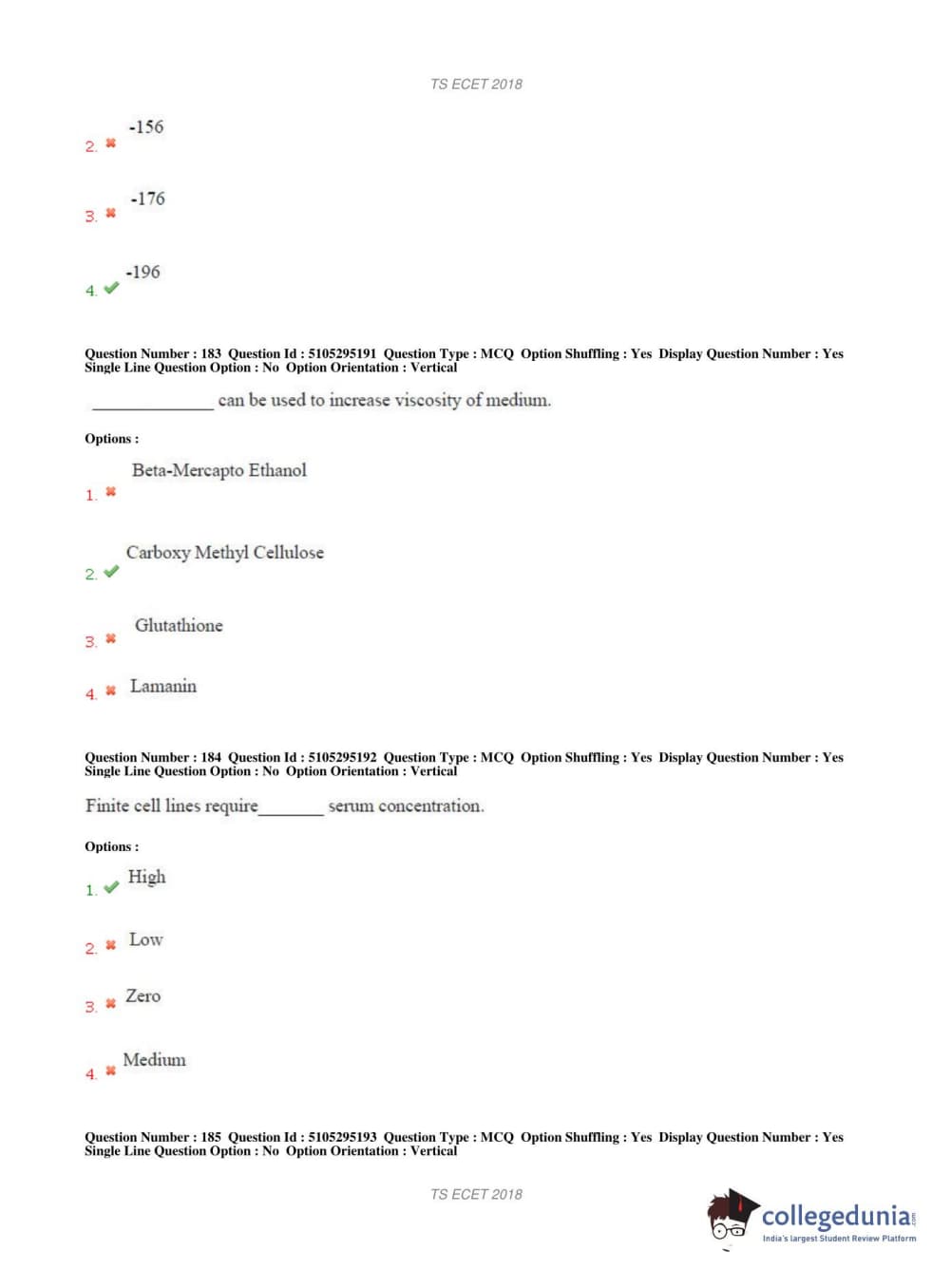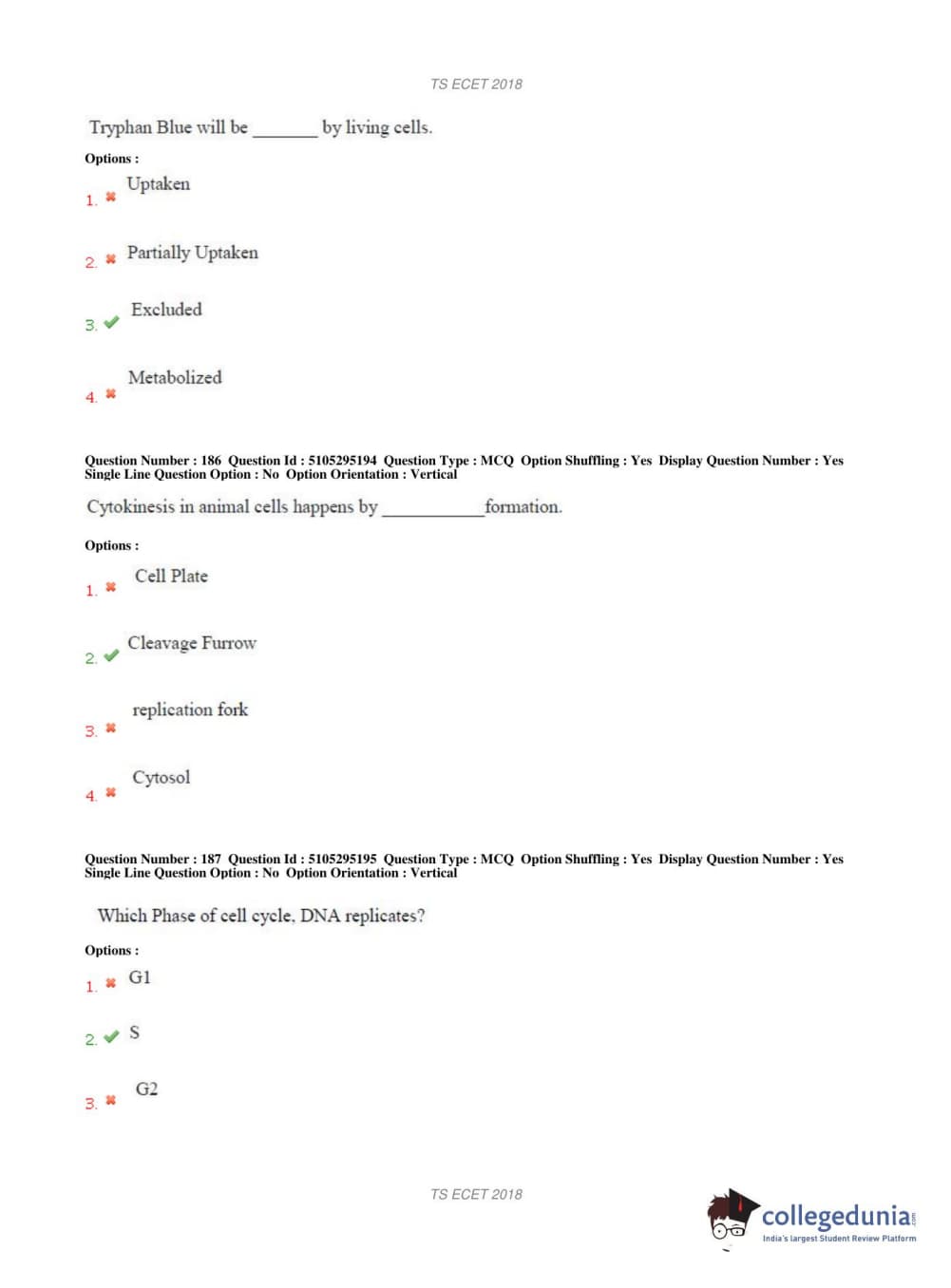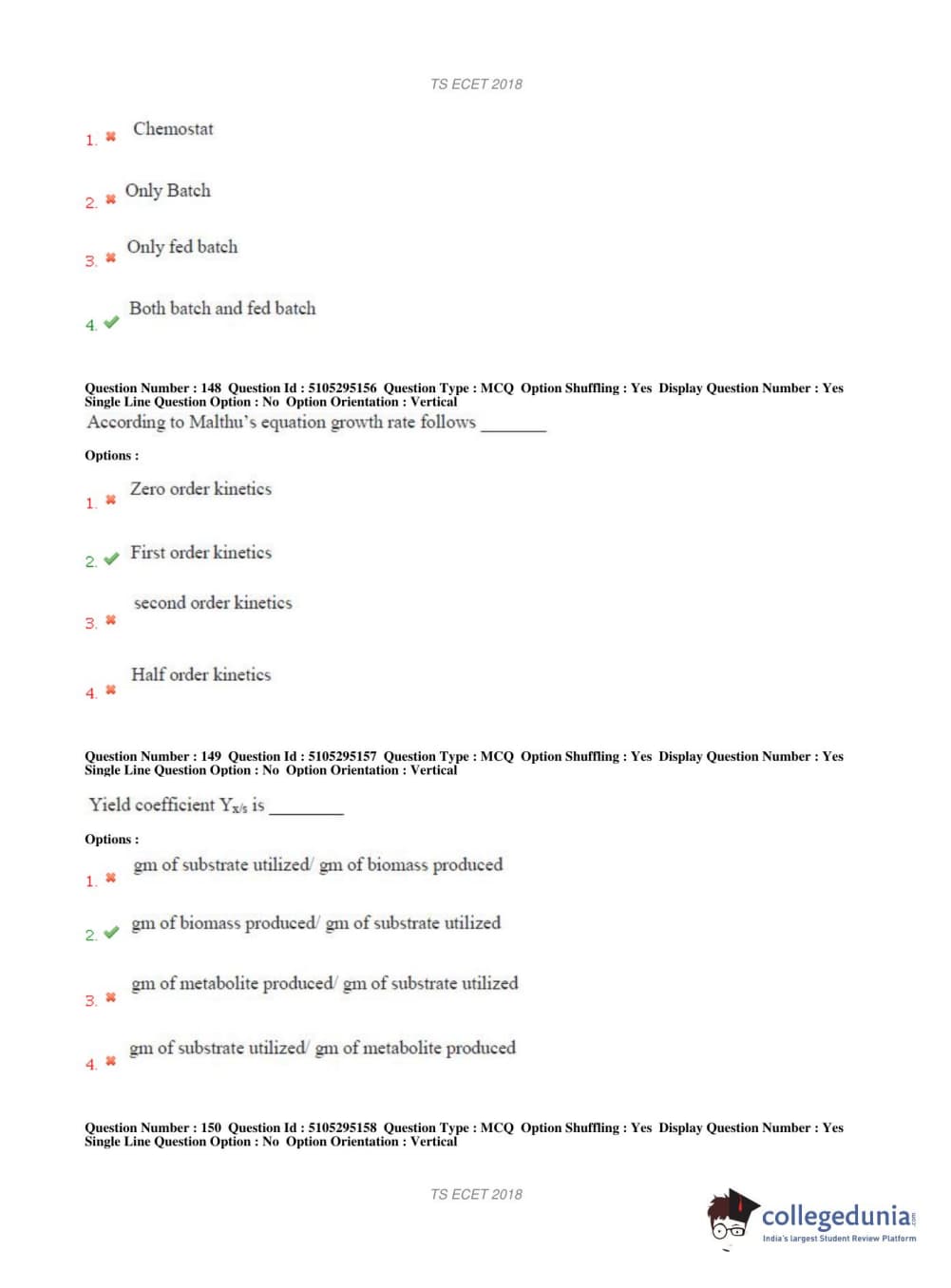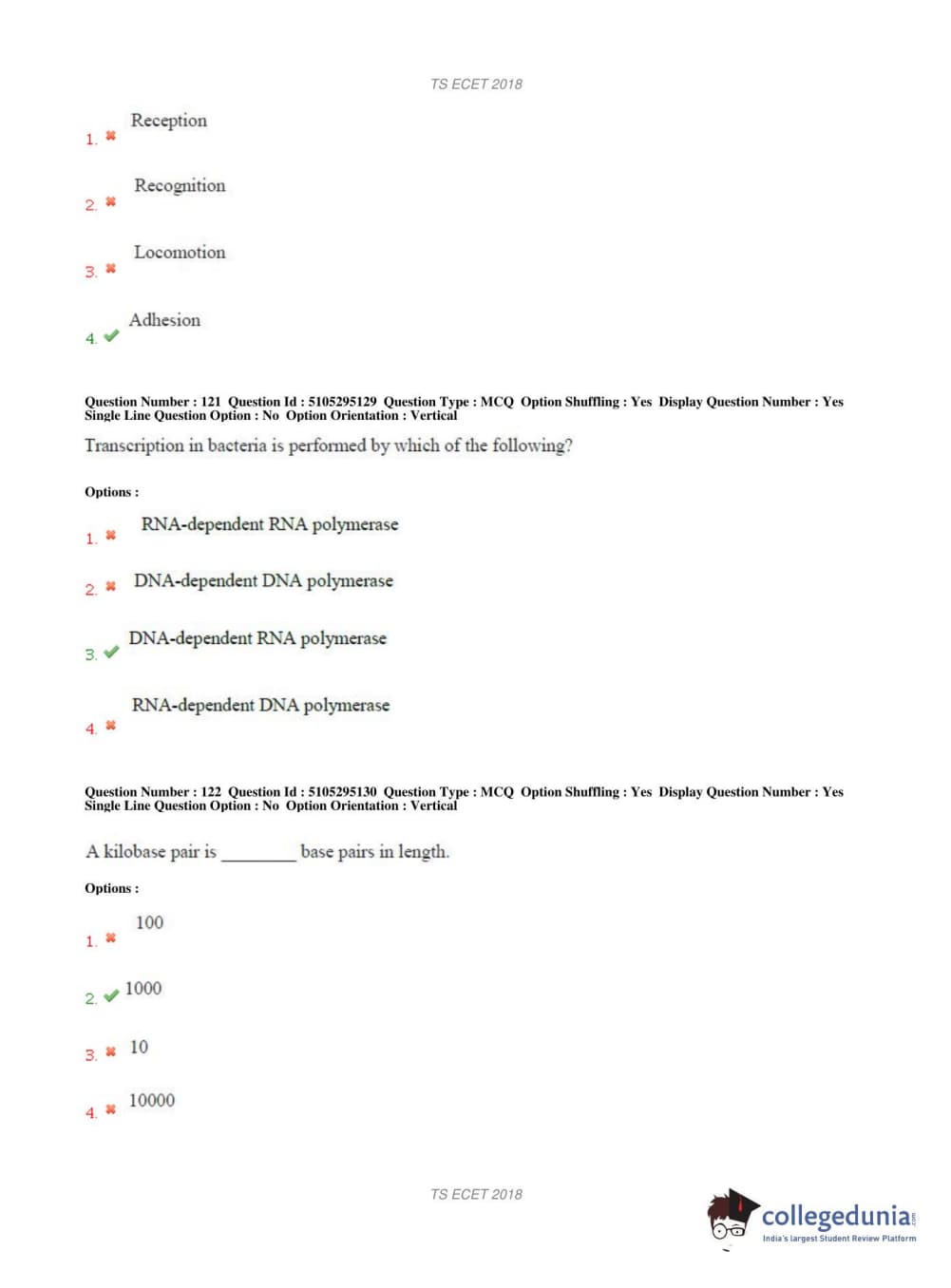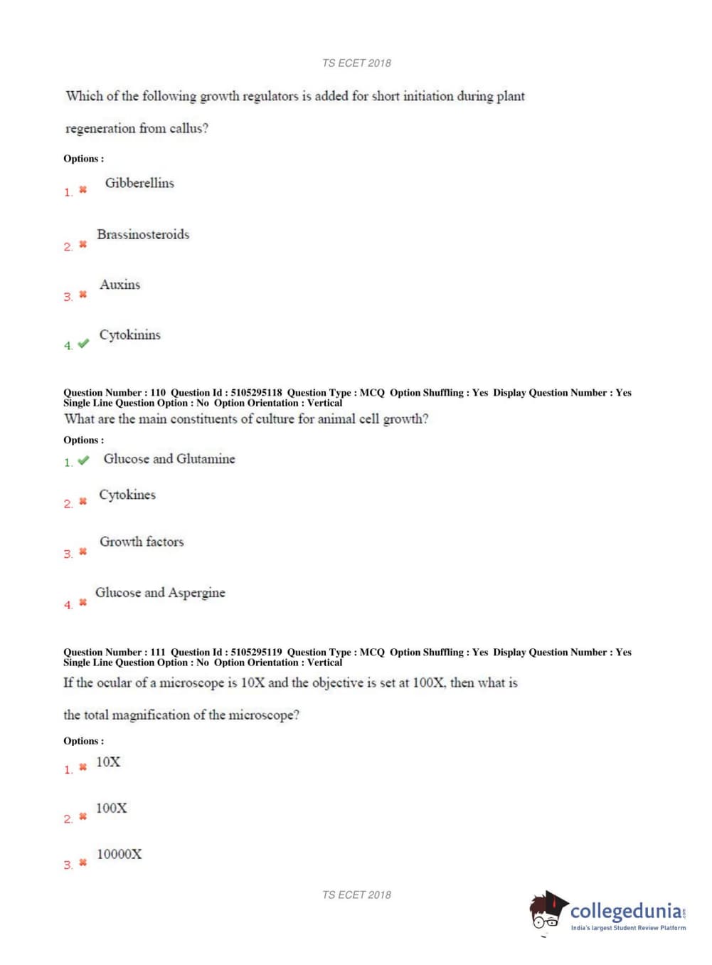 TS ECET 2018 BIO TECHNOLOGY Question Paper with Answer Key PDFs Shift 1