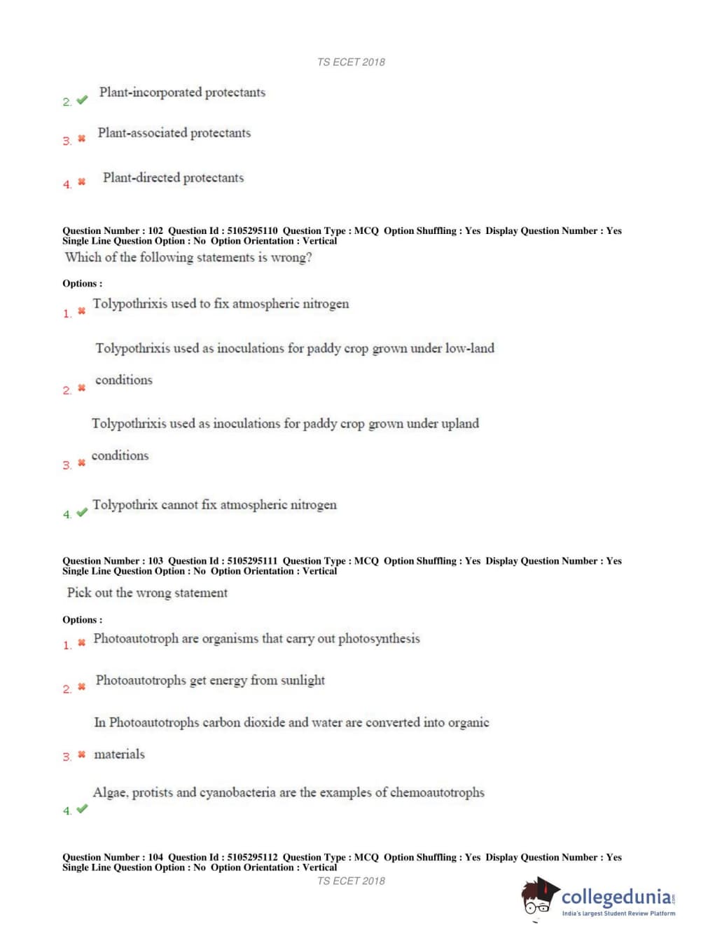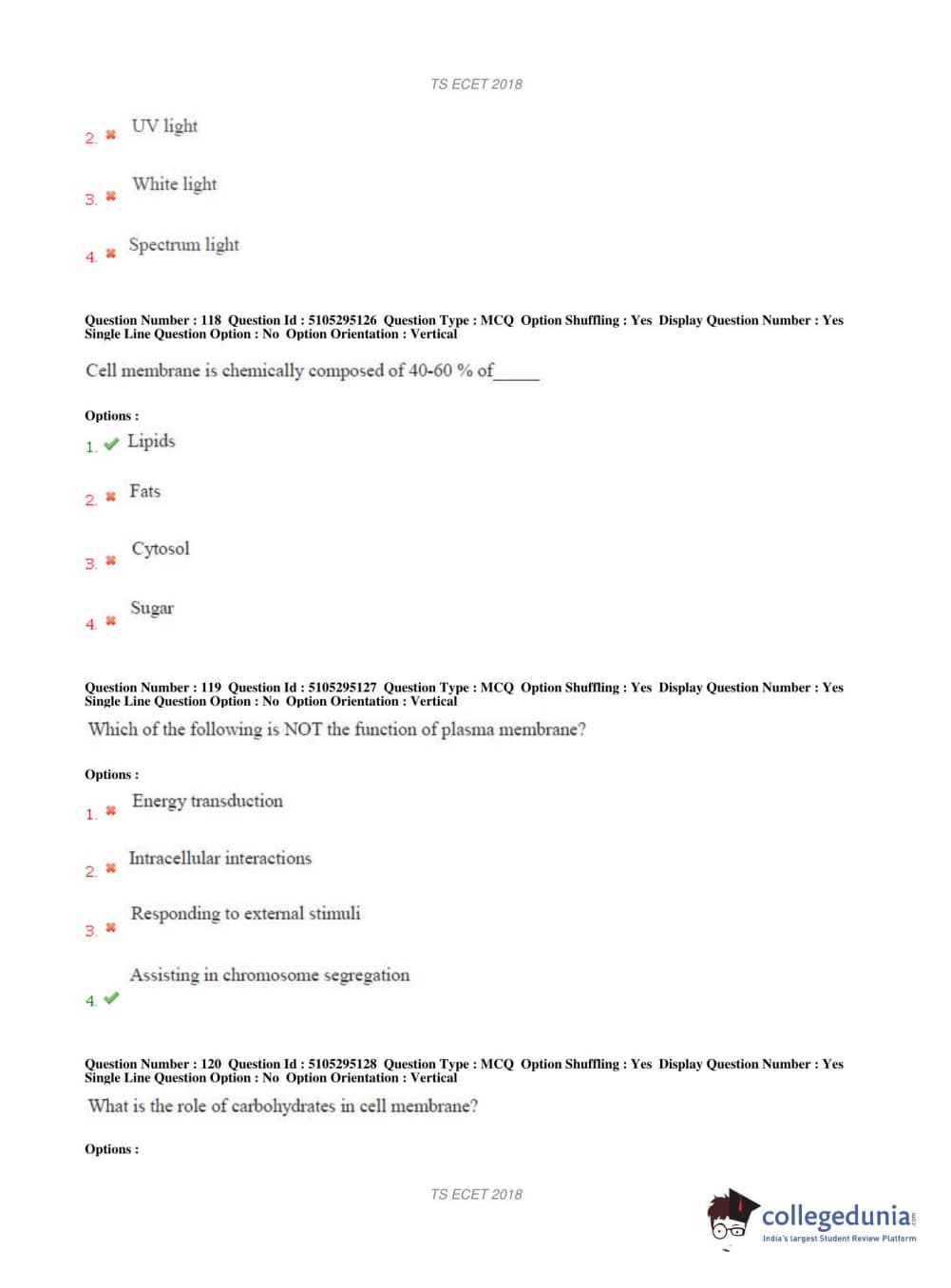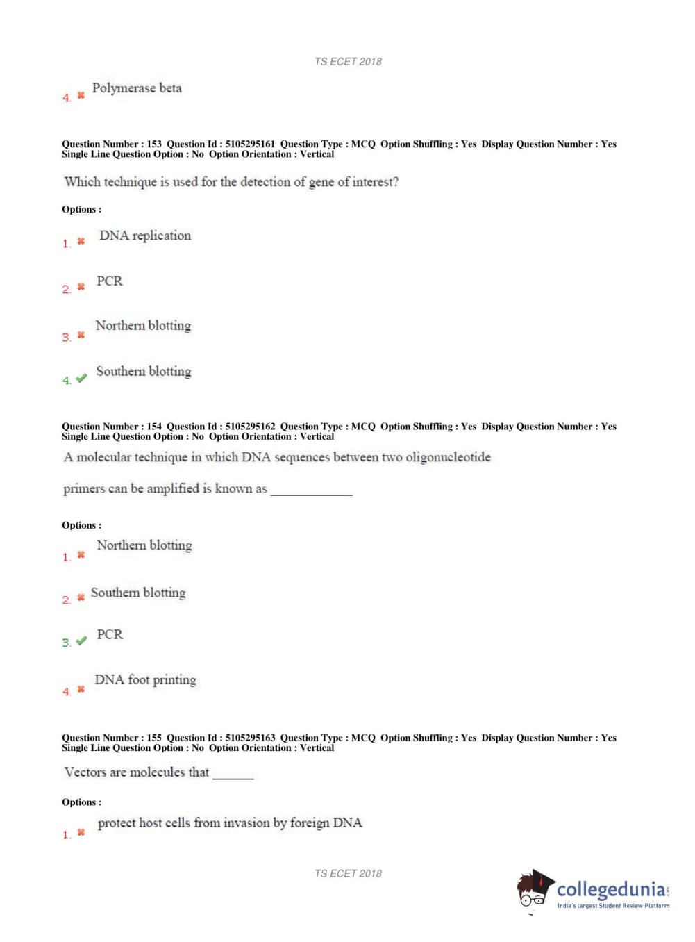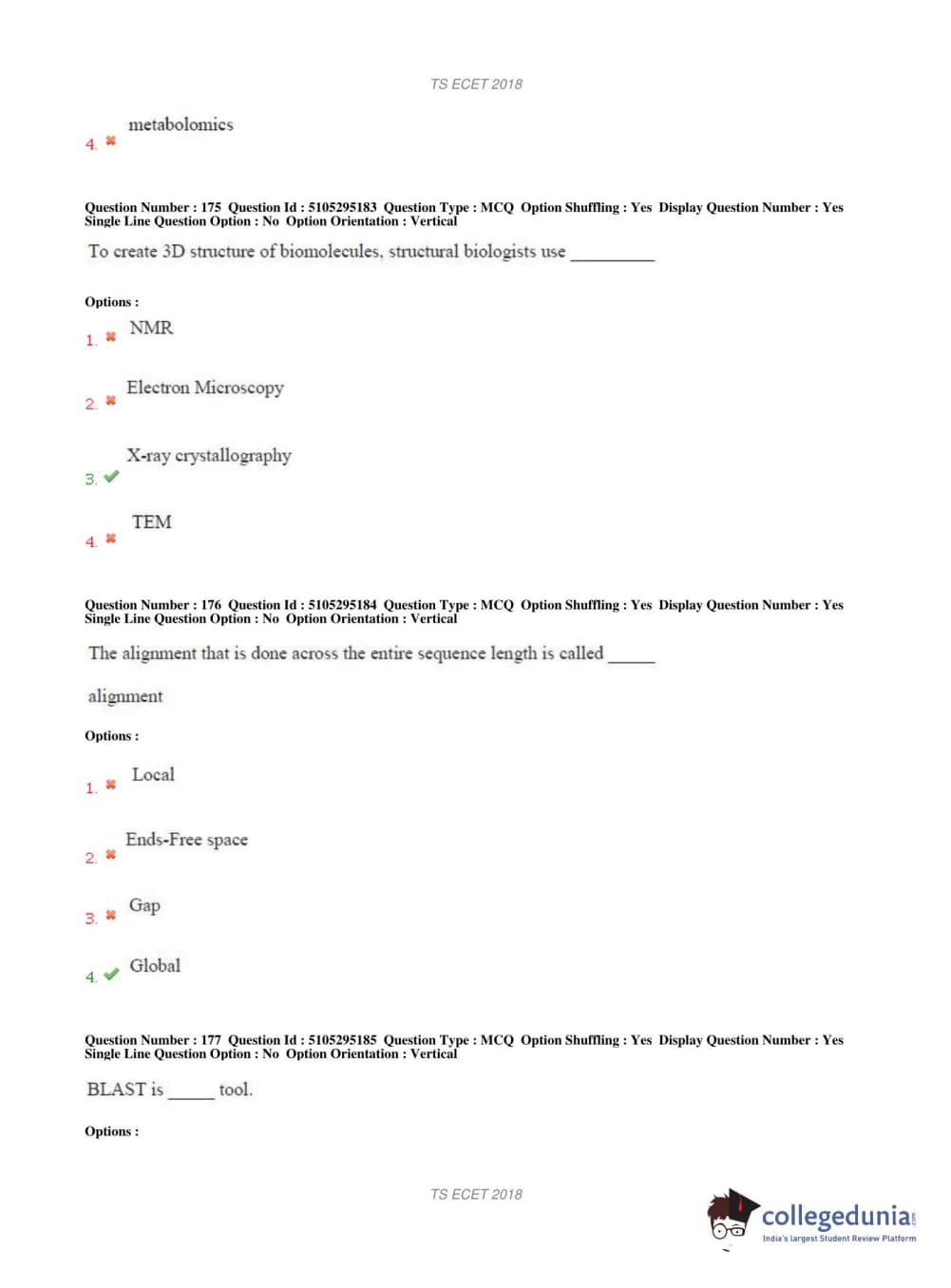 TS ECET 2018 BIO TECHNOLOGY Question Paper with Answer Key PDFs Shift 1