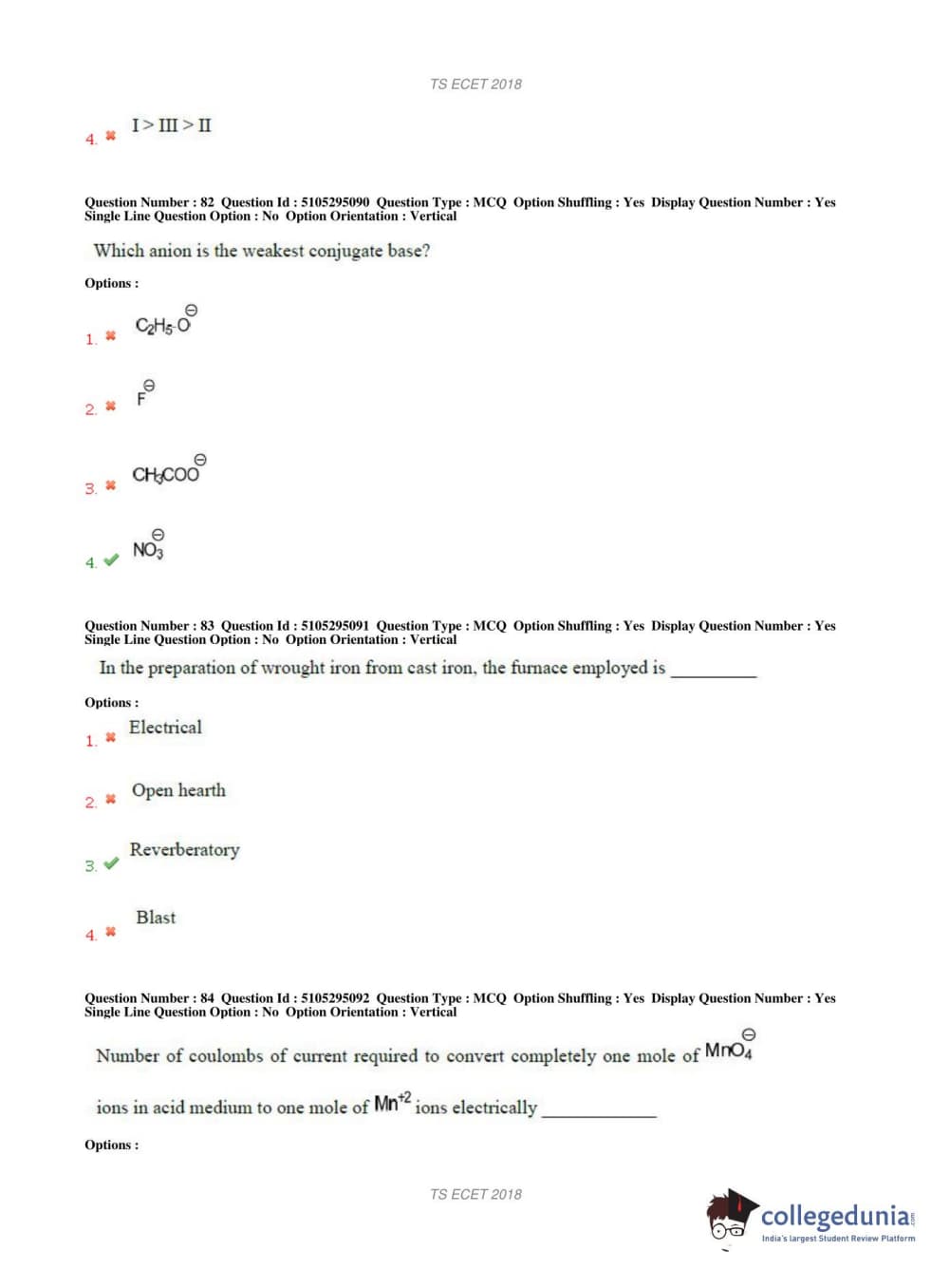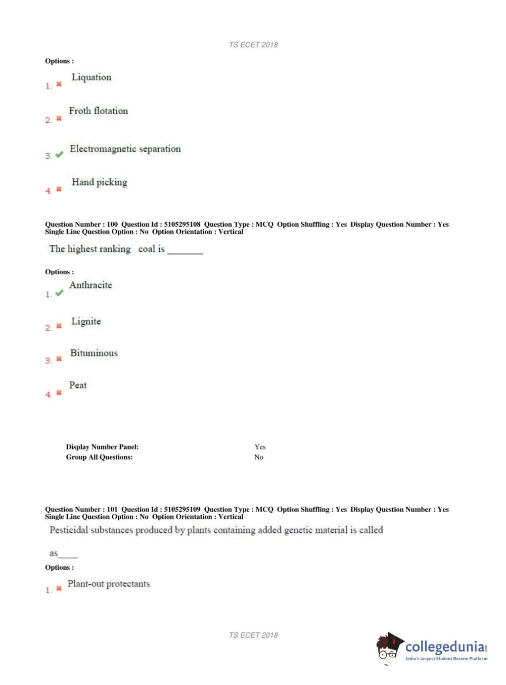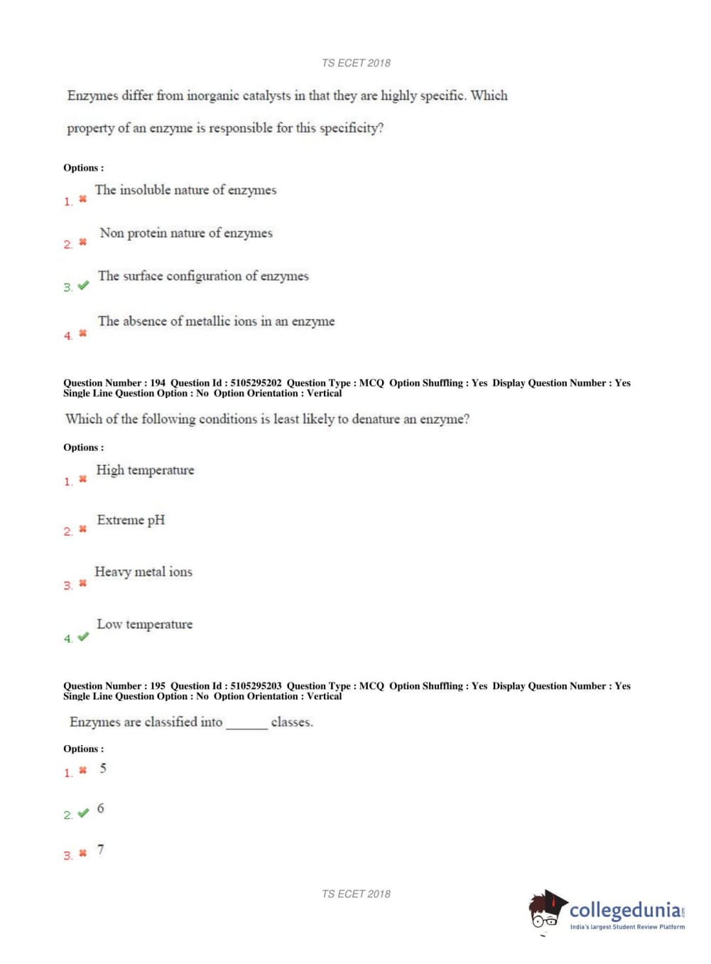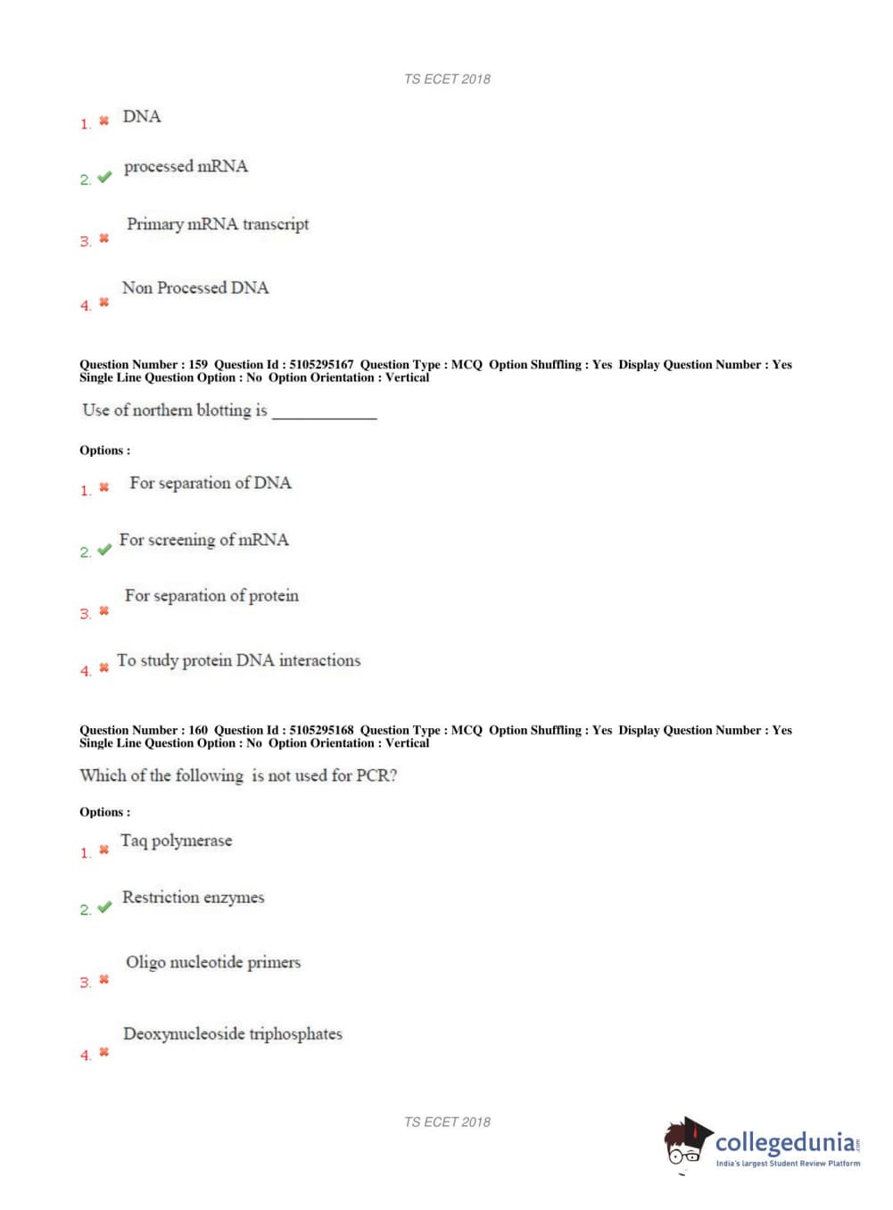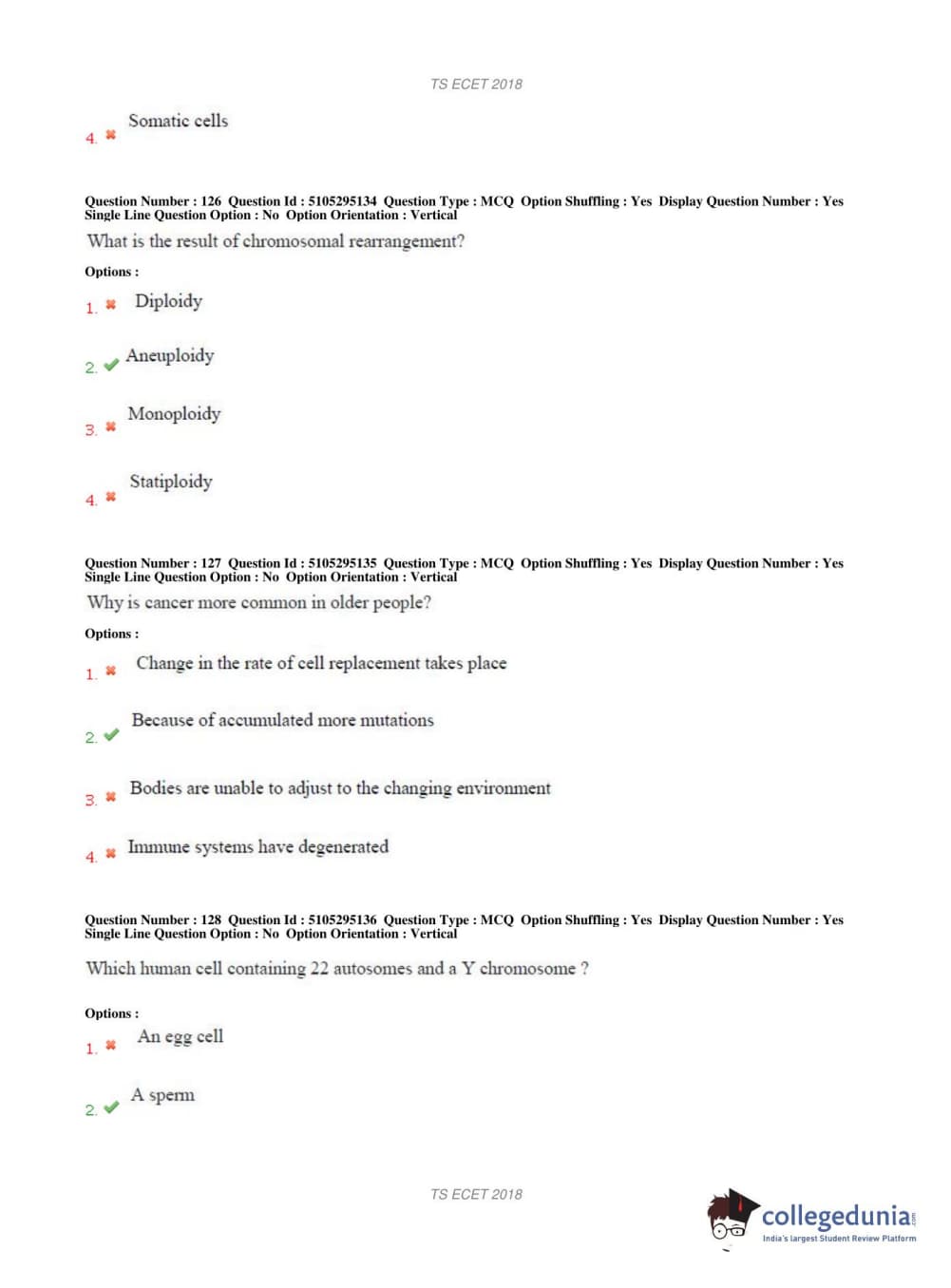TS ECET 2018 BIO TECHNOLOGY Question Paper with Answer Key PDFs Shift 1