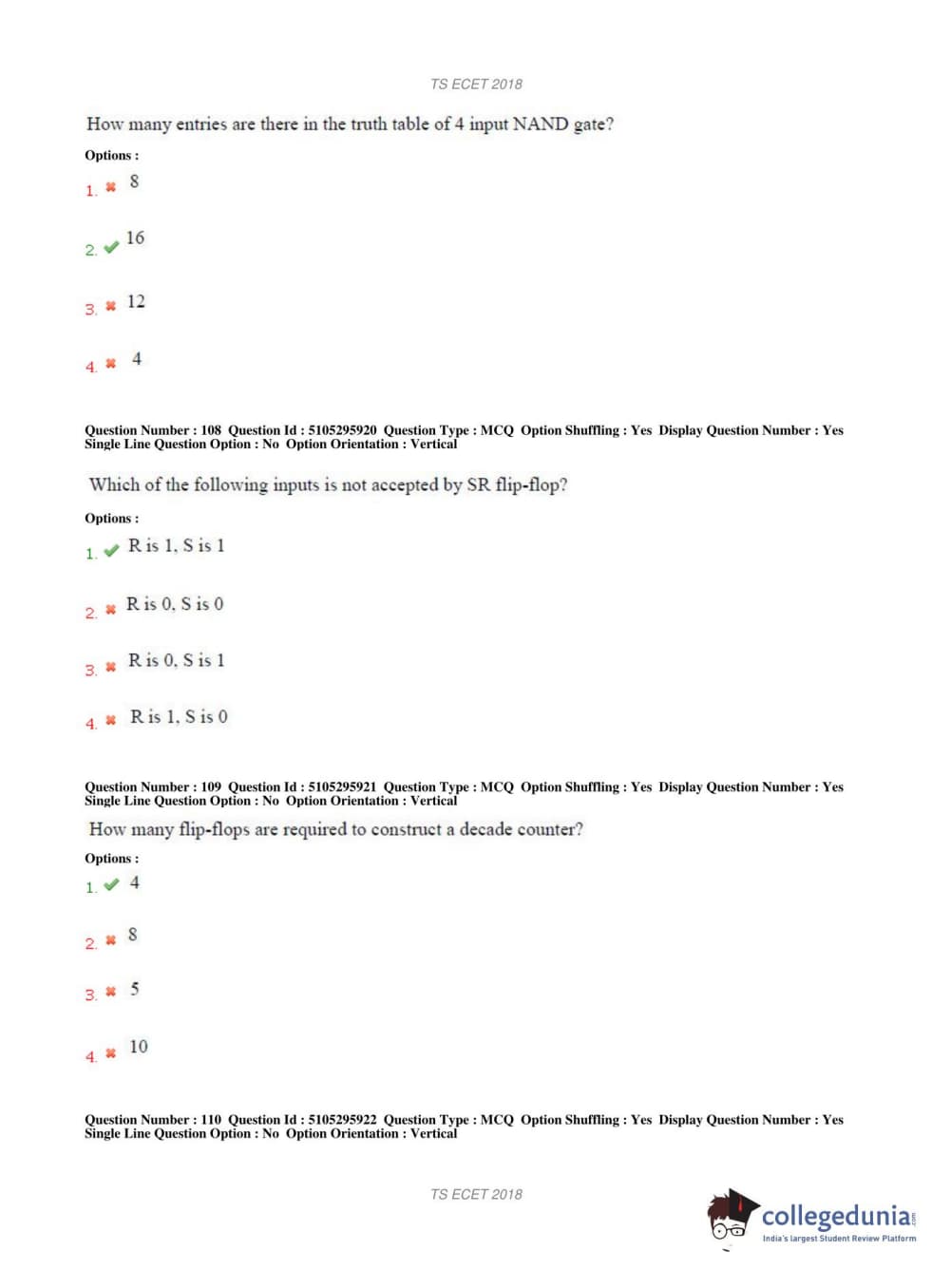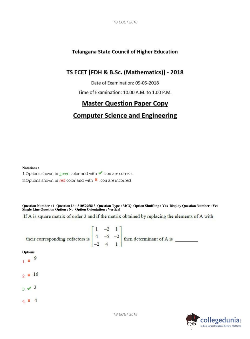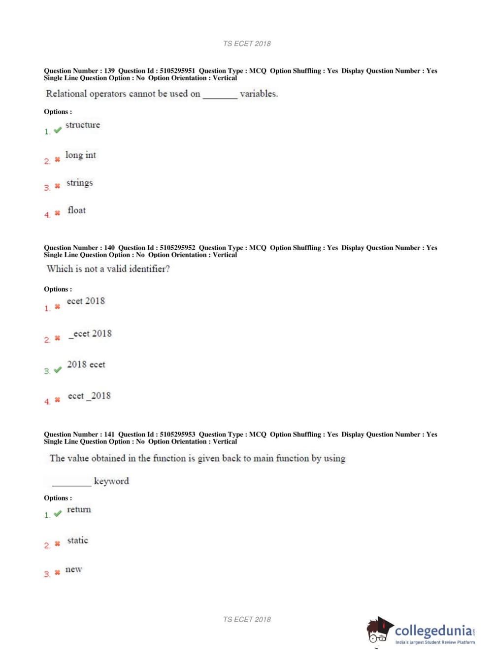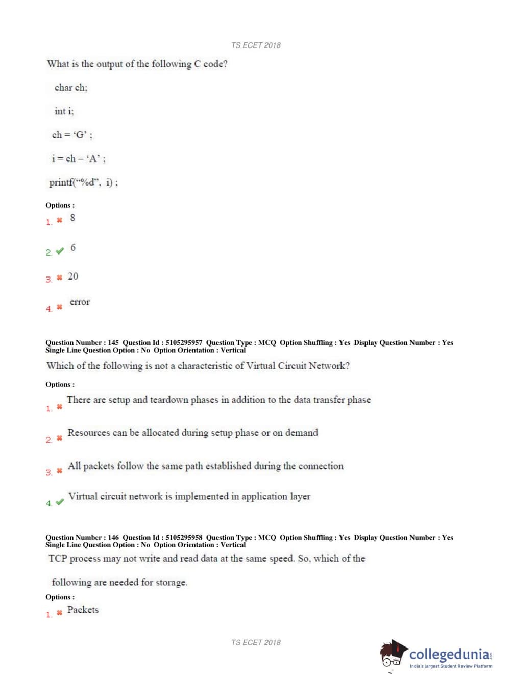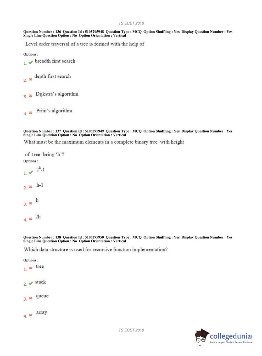 TS ECET 2018 COMPUTER SCIENCE & ENGINEERING Question Paper with Answer Key PDFs Shift 1