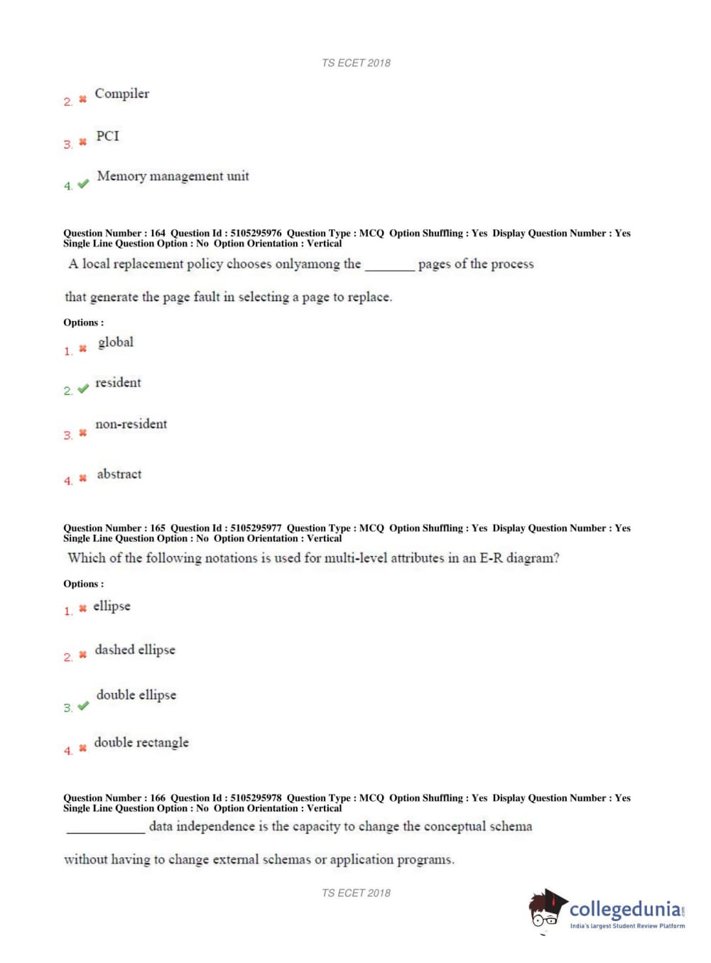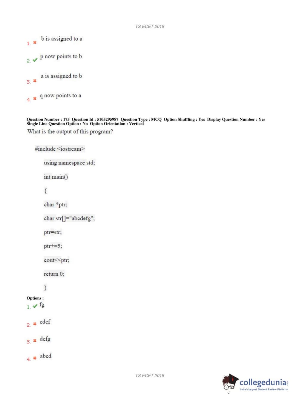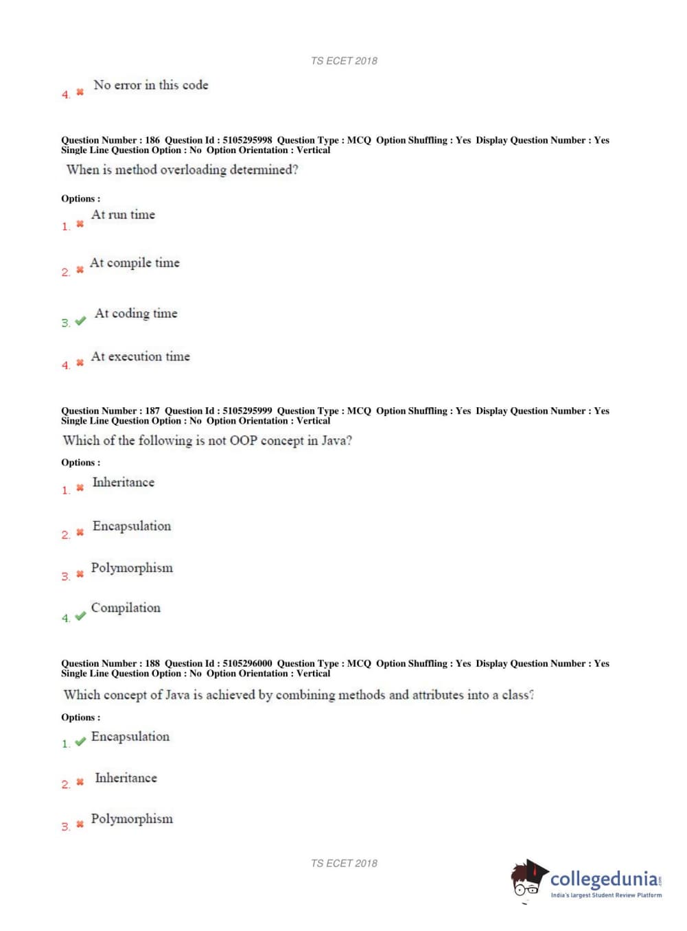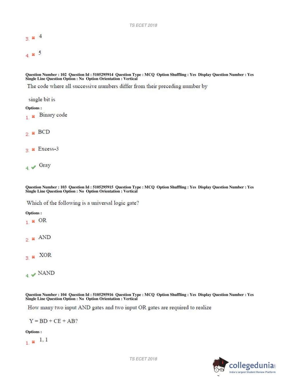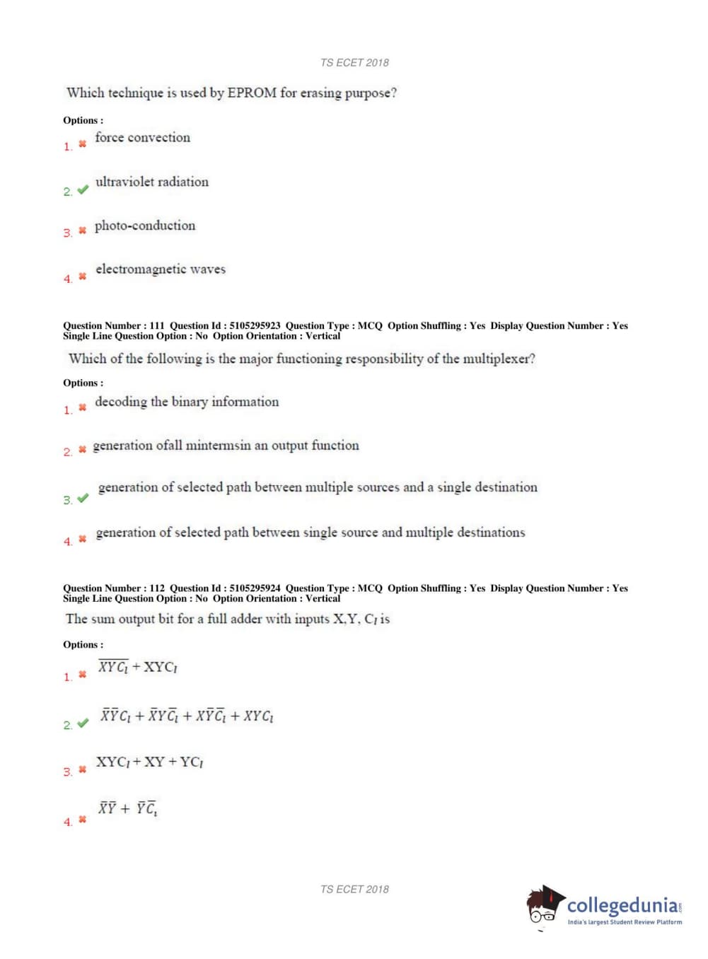 TS ECET 2018 COMPUTER SCIENCE & ENGINEERING Question Paper with Answer Key PDFs Shift 1