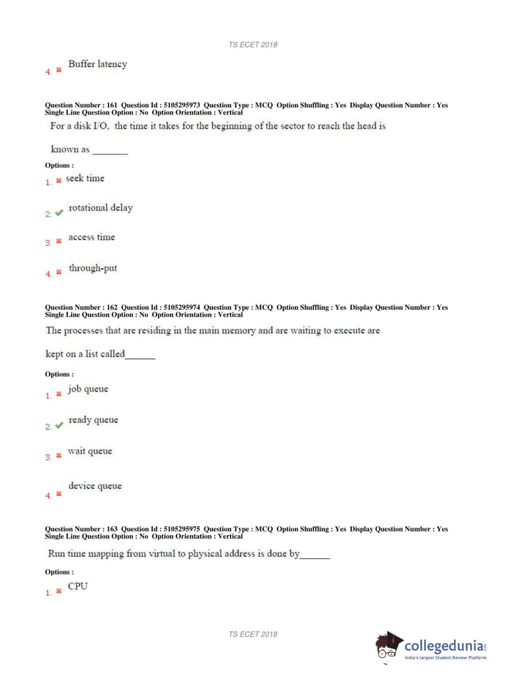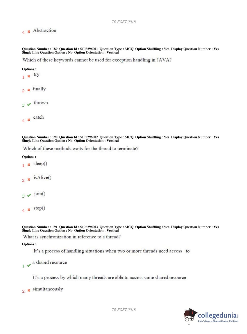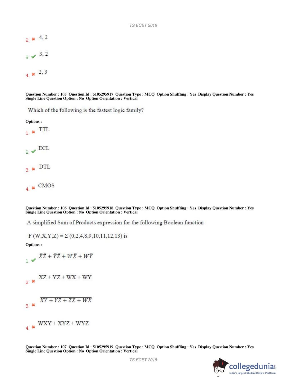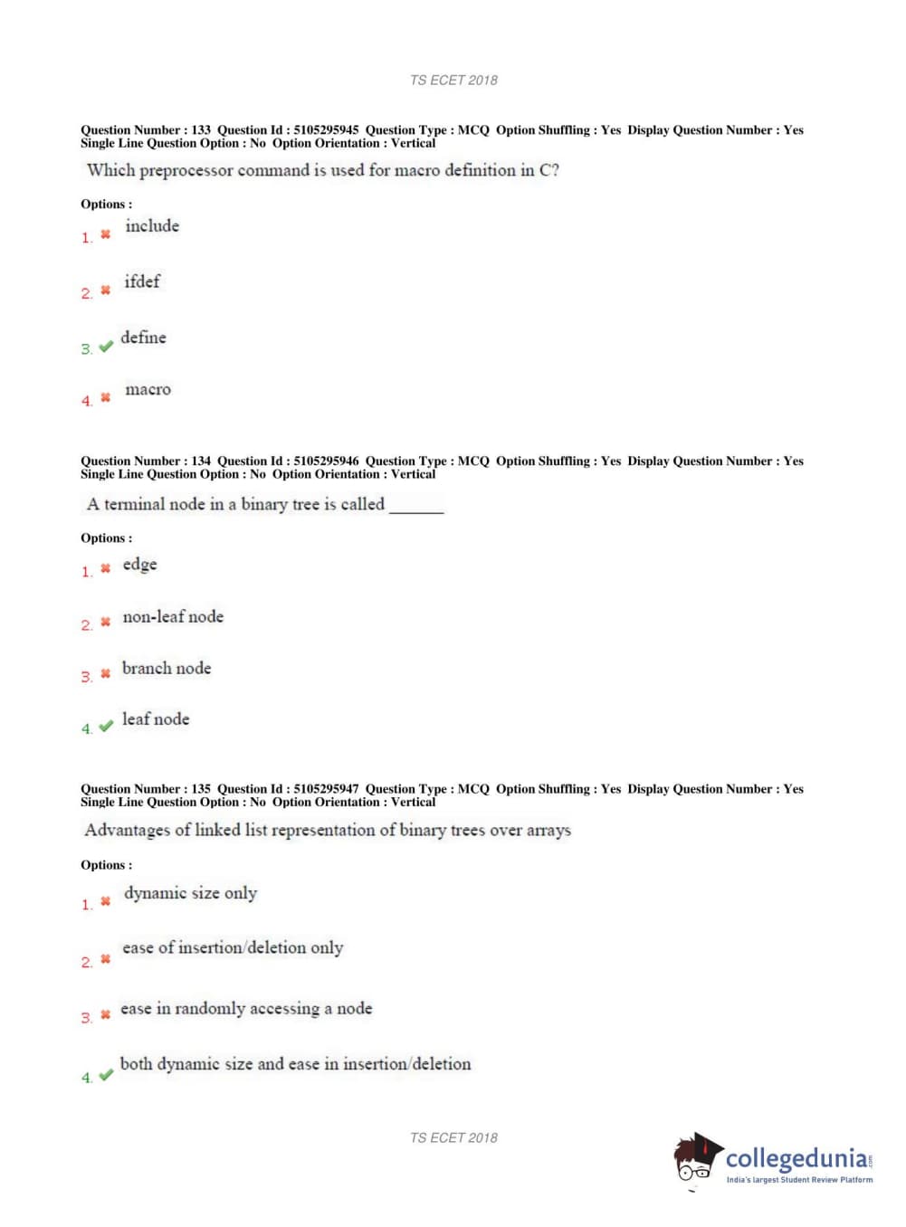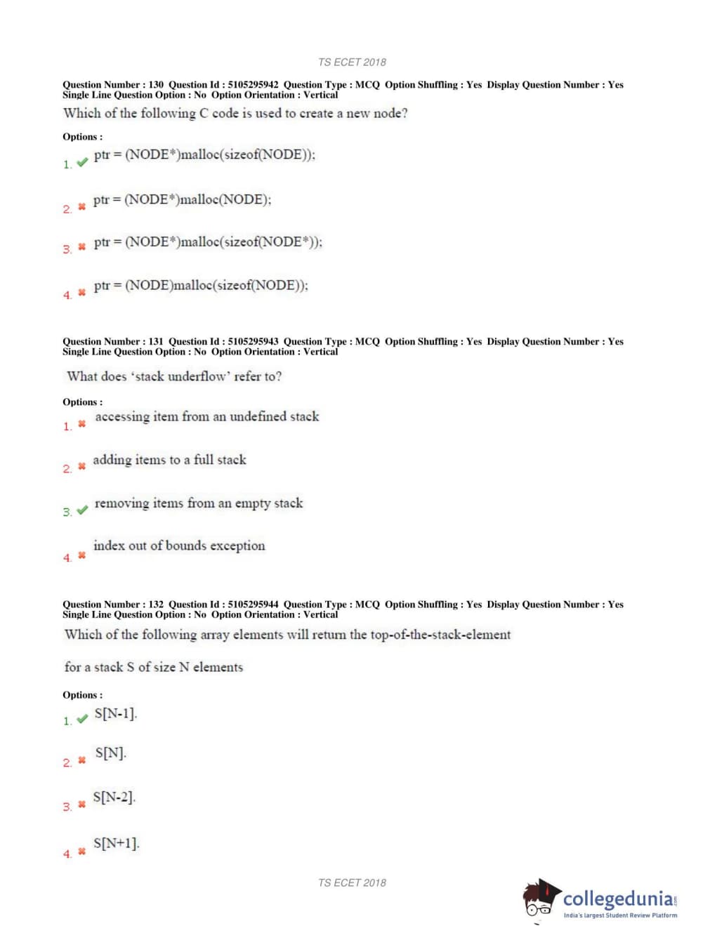 TS ECET 2018 COMPUTER SCIENCE & ENGINEERING Question Paper with Answer Key PDFs Shift 1