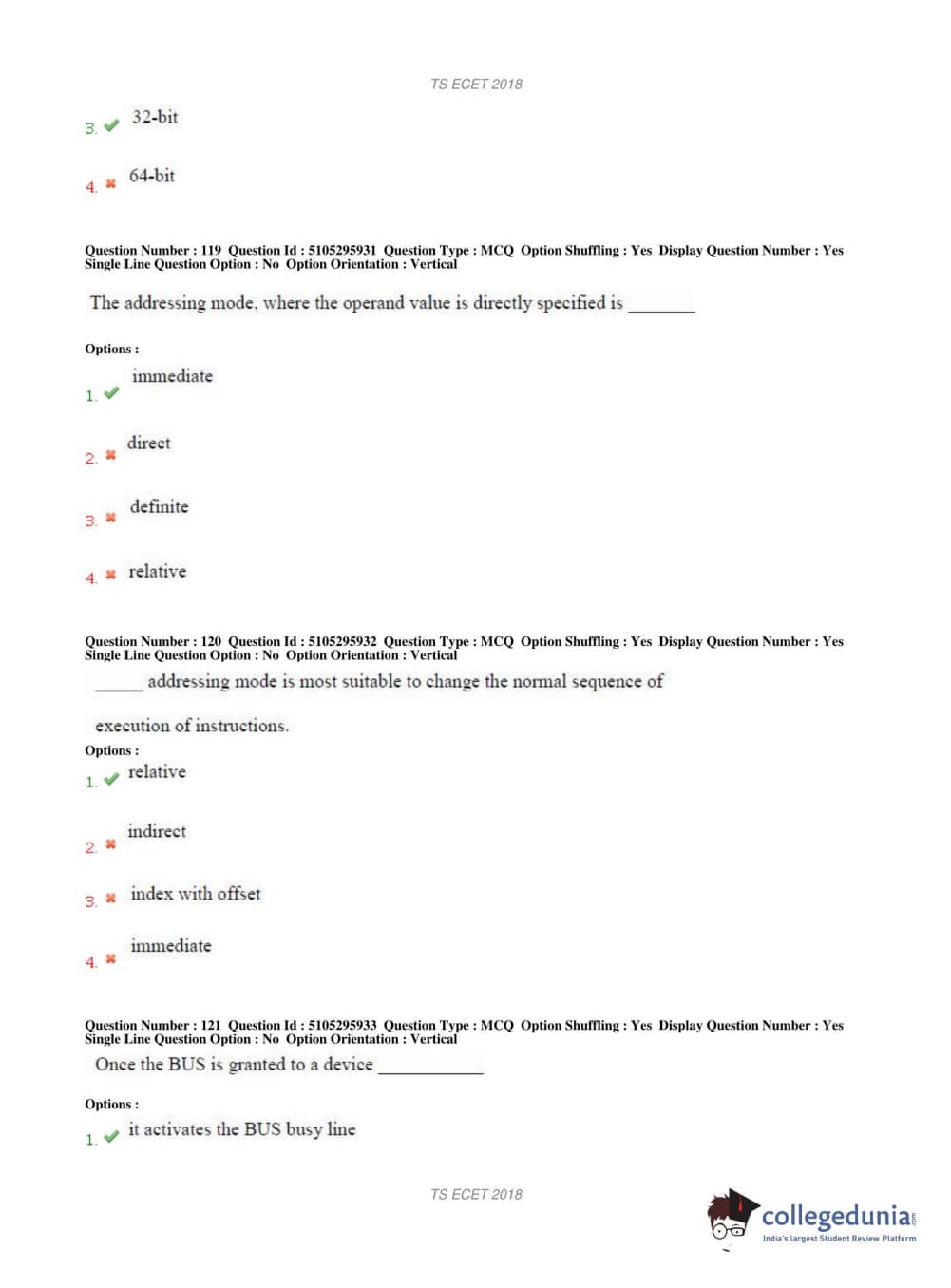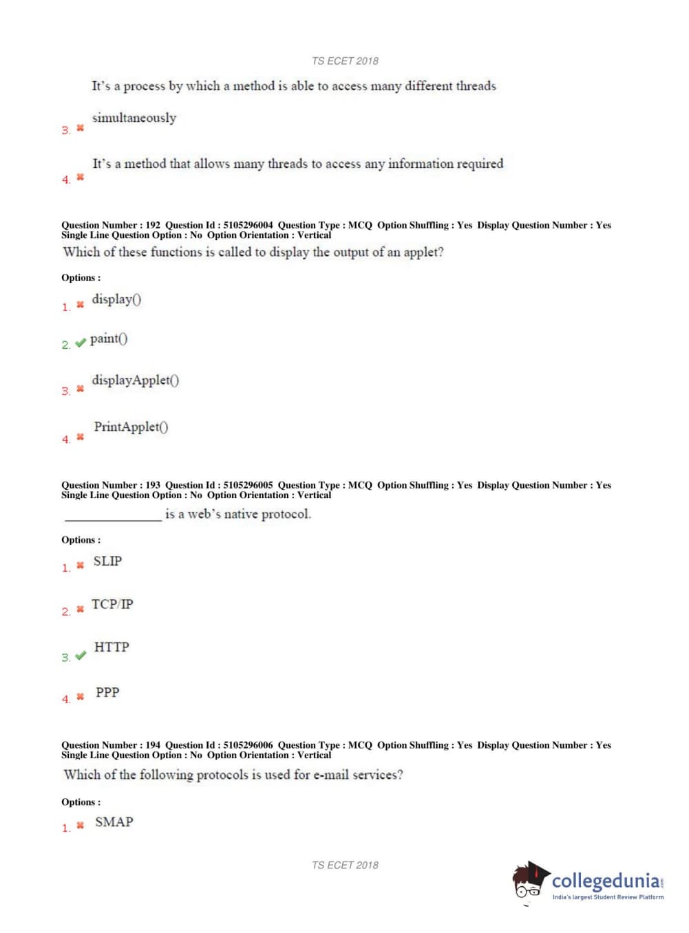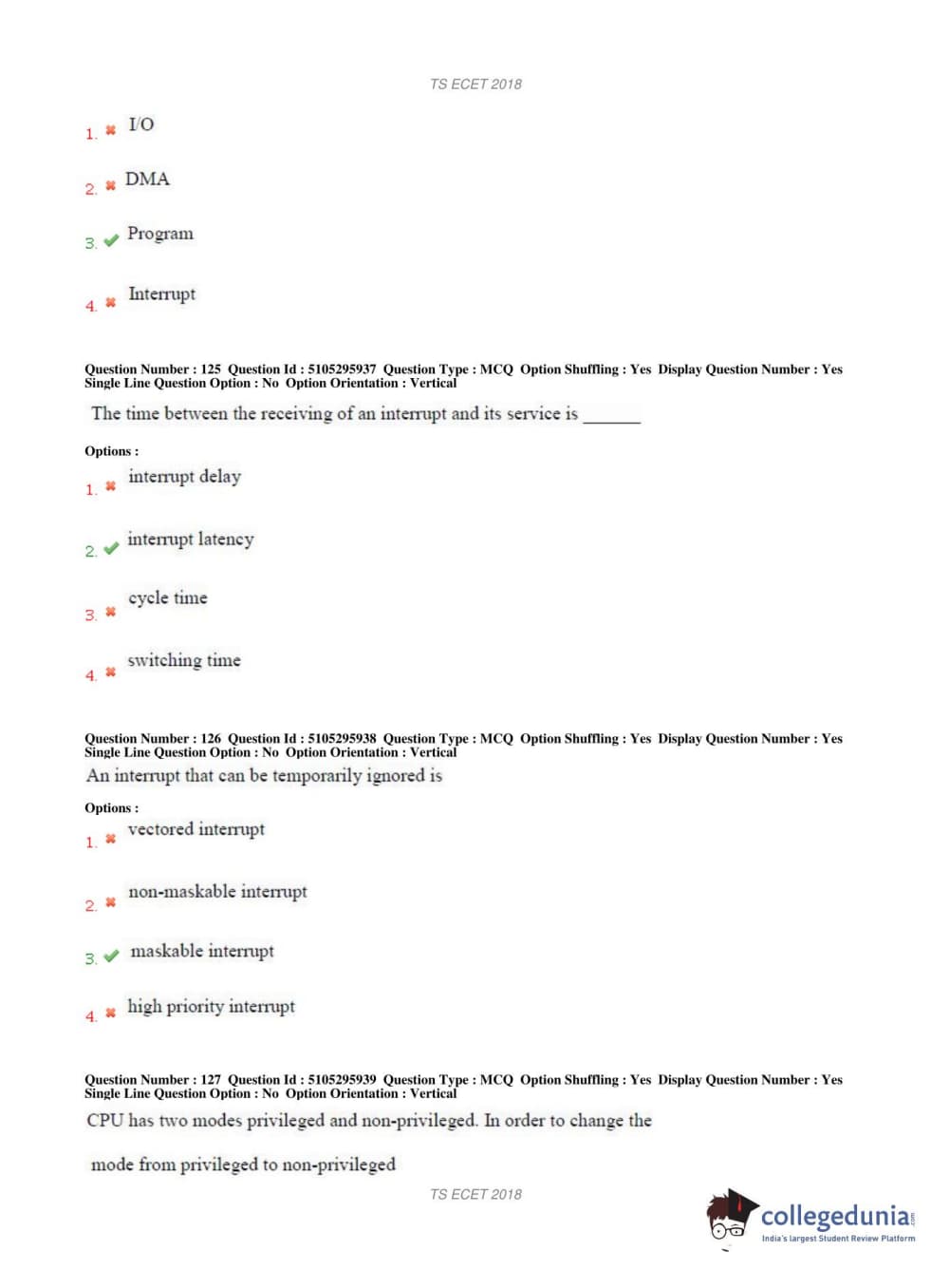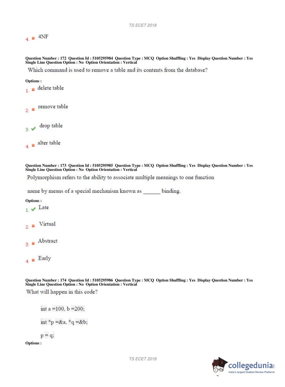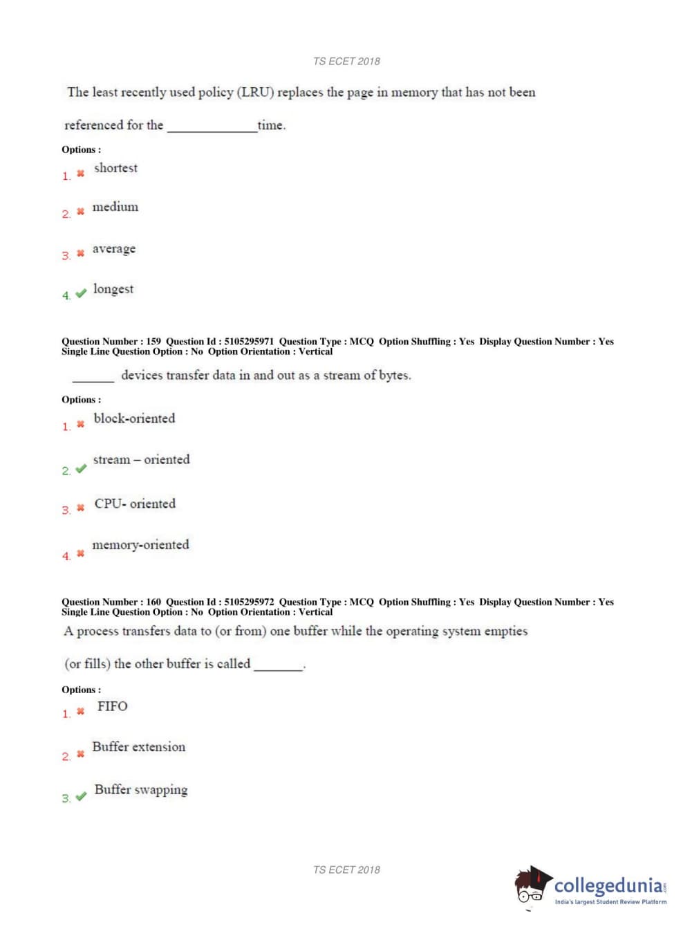 TS ECET 2018 COMPUTER SCIENCE & ENGINEERING Question Paper with Answer Key PDFs Shift 1