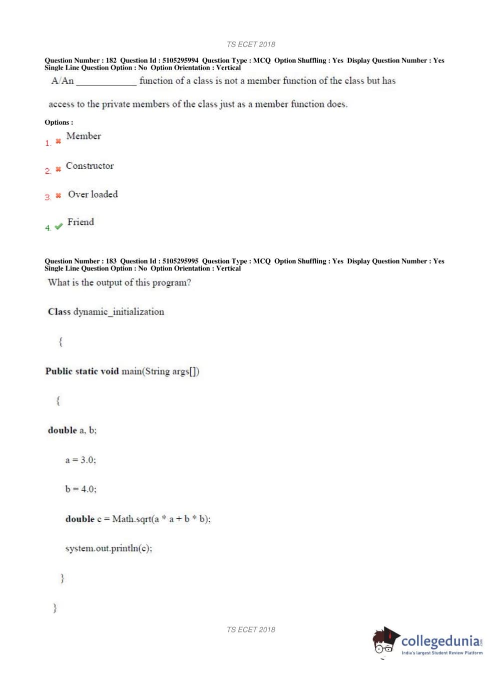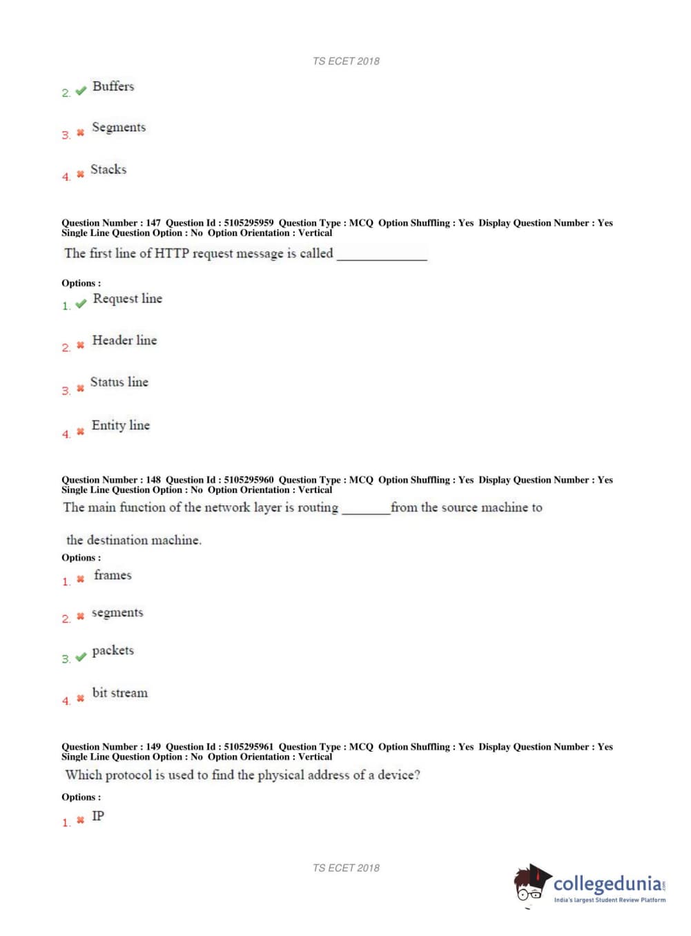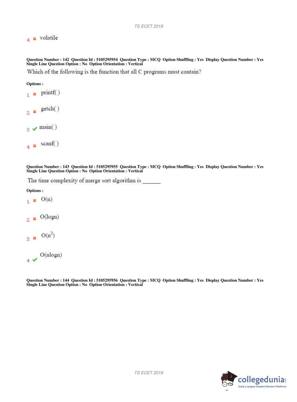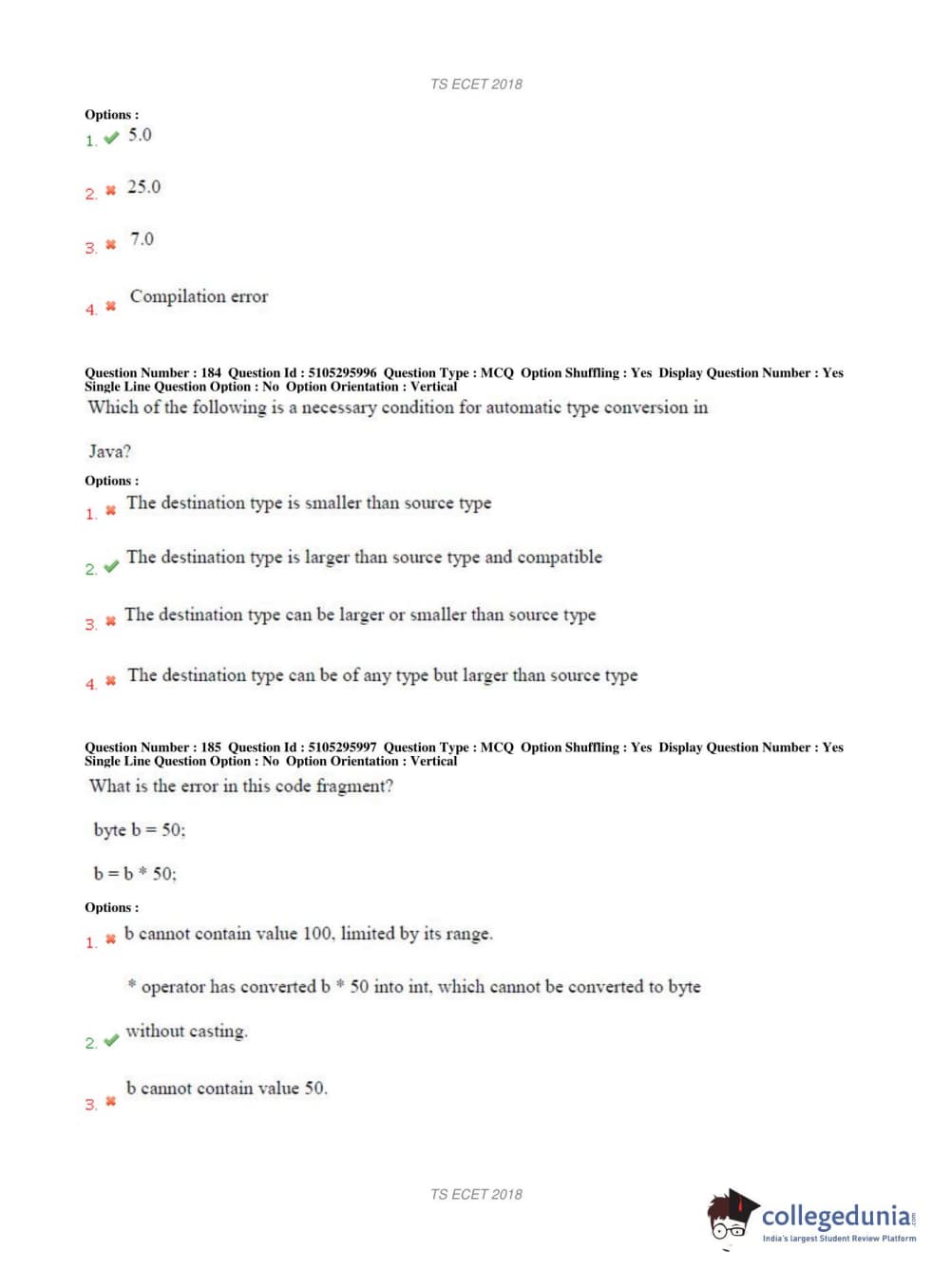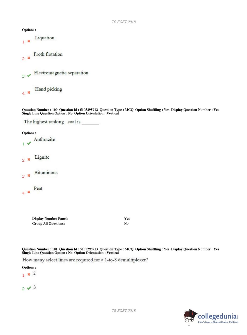 TS ECET 2018 COMPUTER SCIENCE & ENGINEERING Question Paper with Answer Key PDFs Shift 1