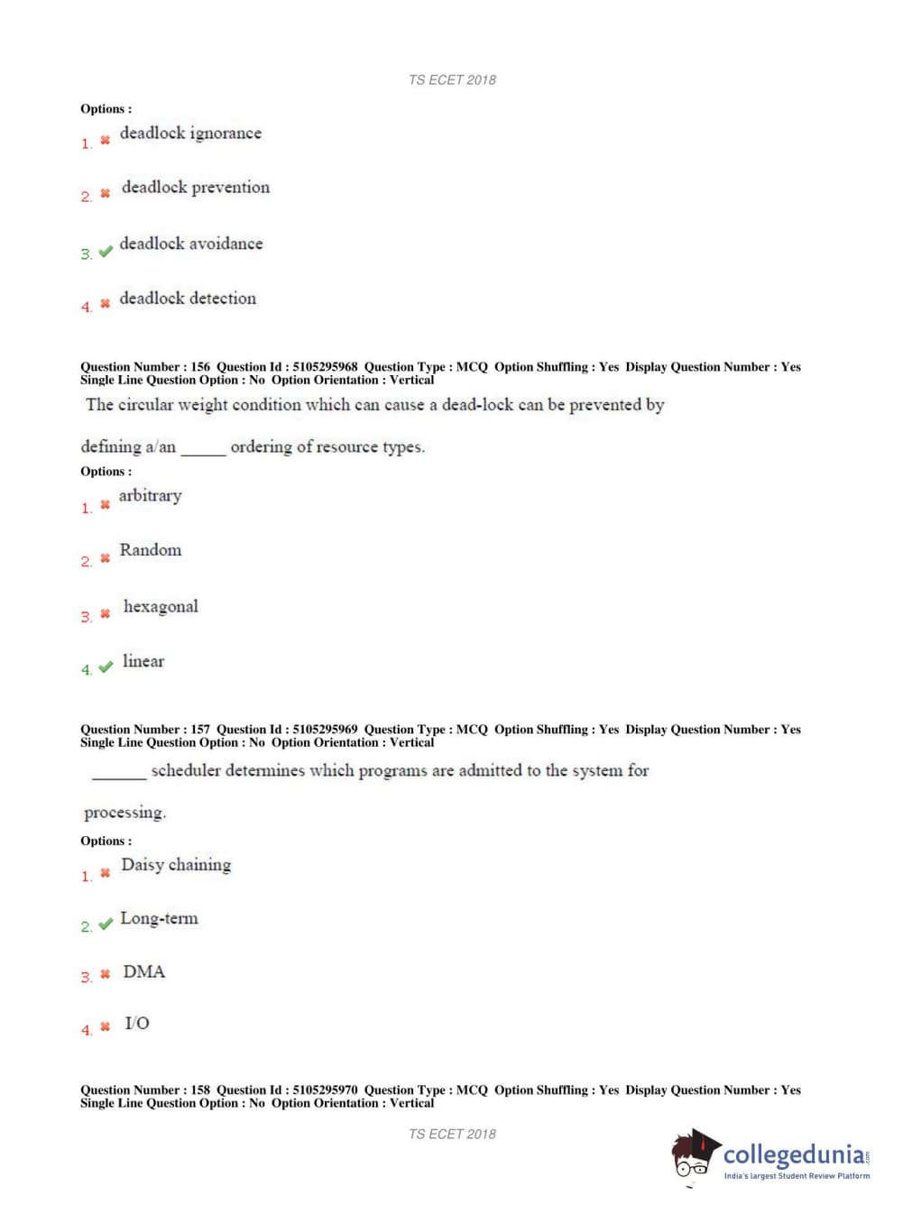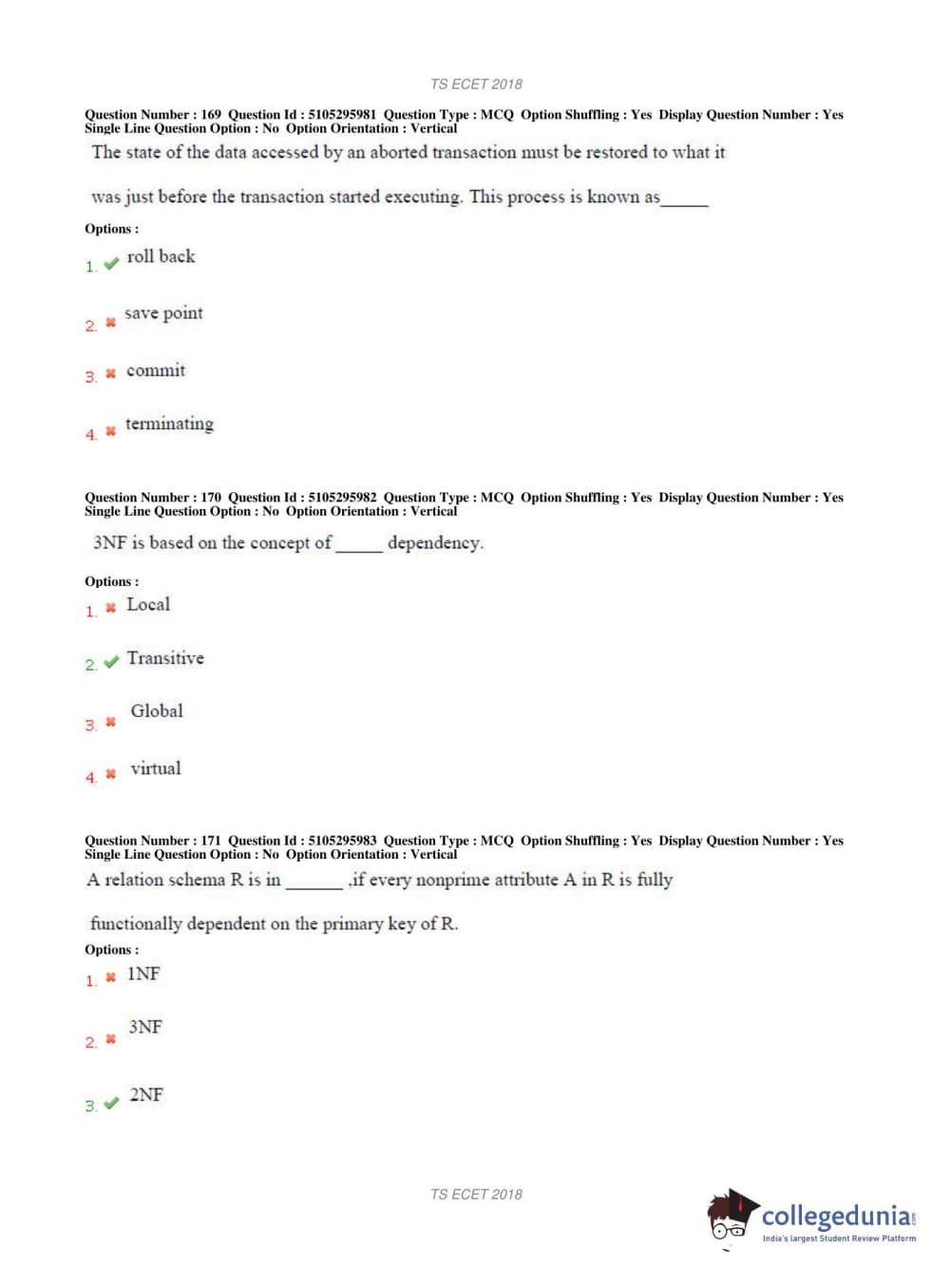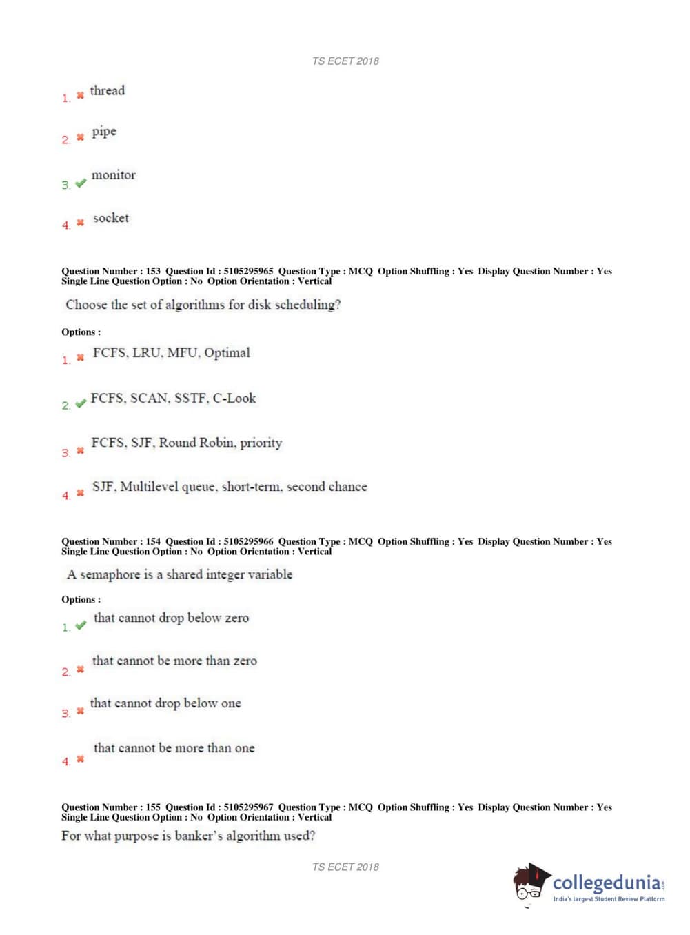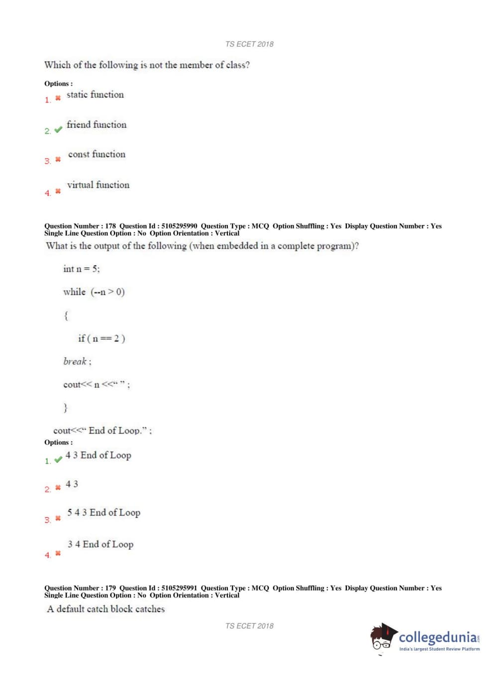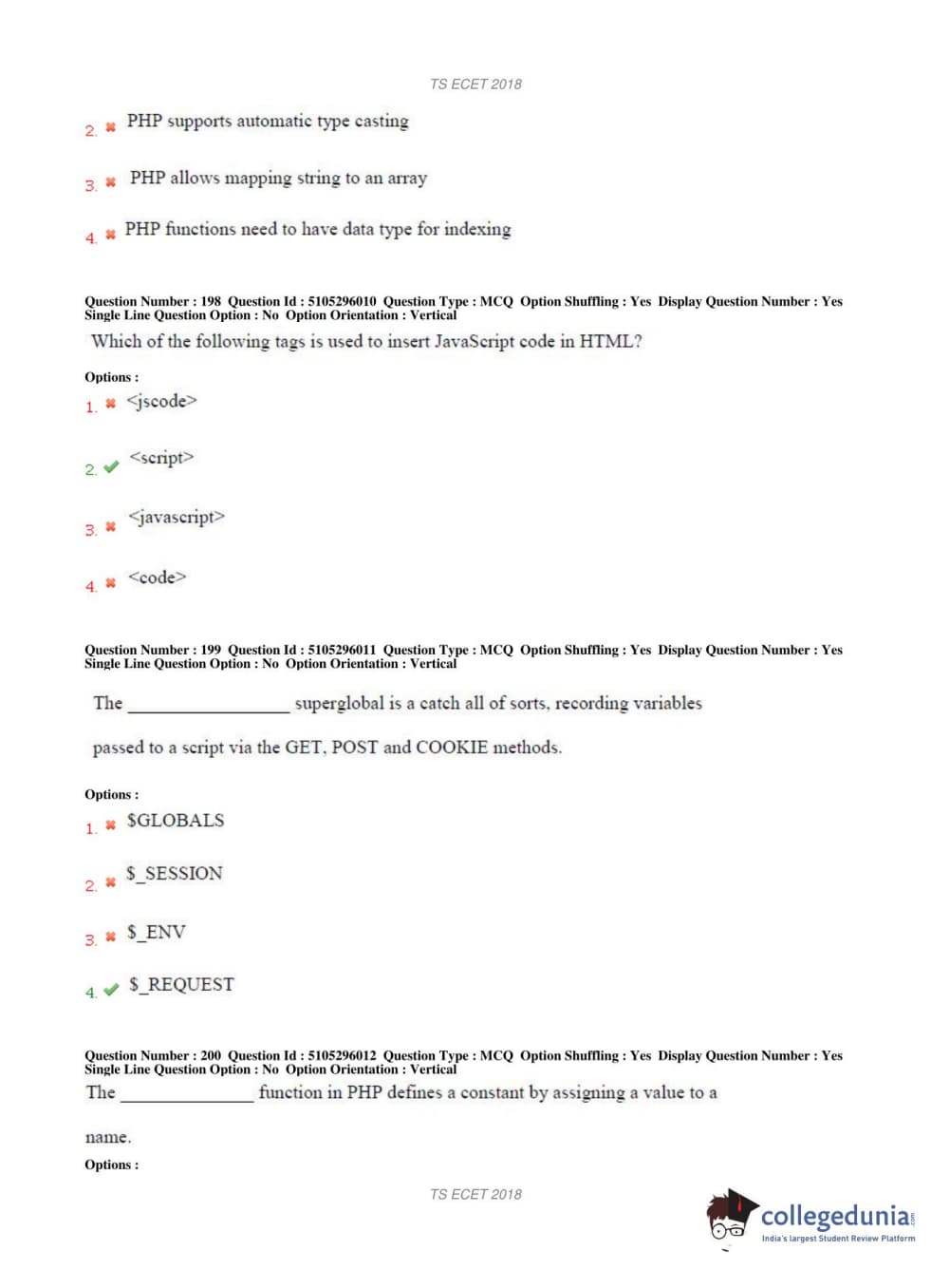 TS ECET 2018 COMPUTER SCIENCE & ENGINEERING Question Paper with Answer Key PDFs Shift 1