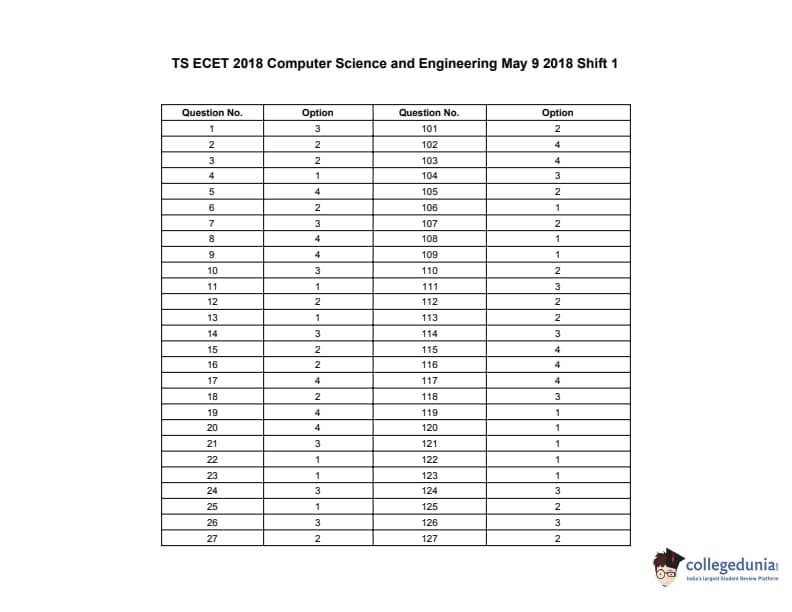 | TS ECET 2018 COMPUTER SCIENCE & ENGINEERING Question Paper PDF | TS ECET 2018 COMPUTER SCIENCE & ENGINEERING Answer Key PDF |